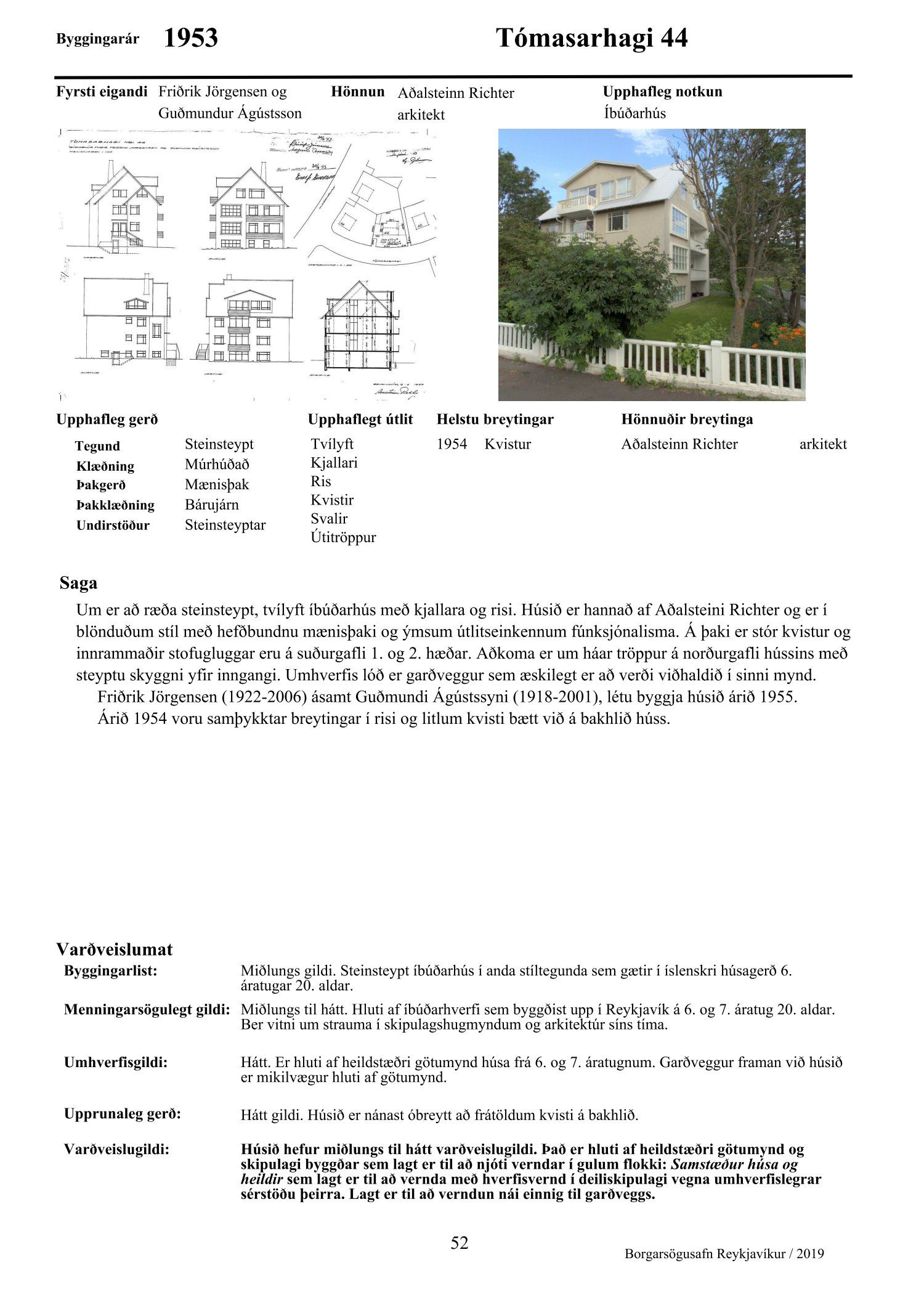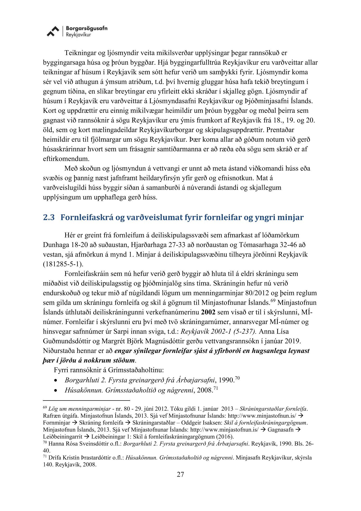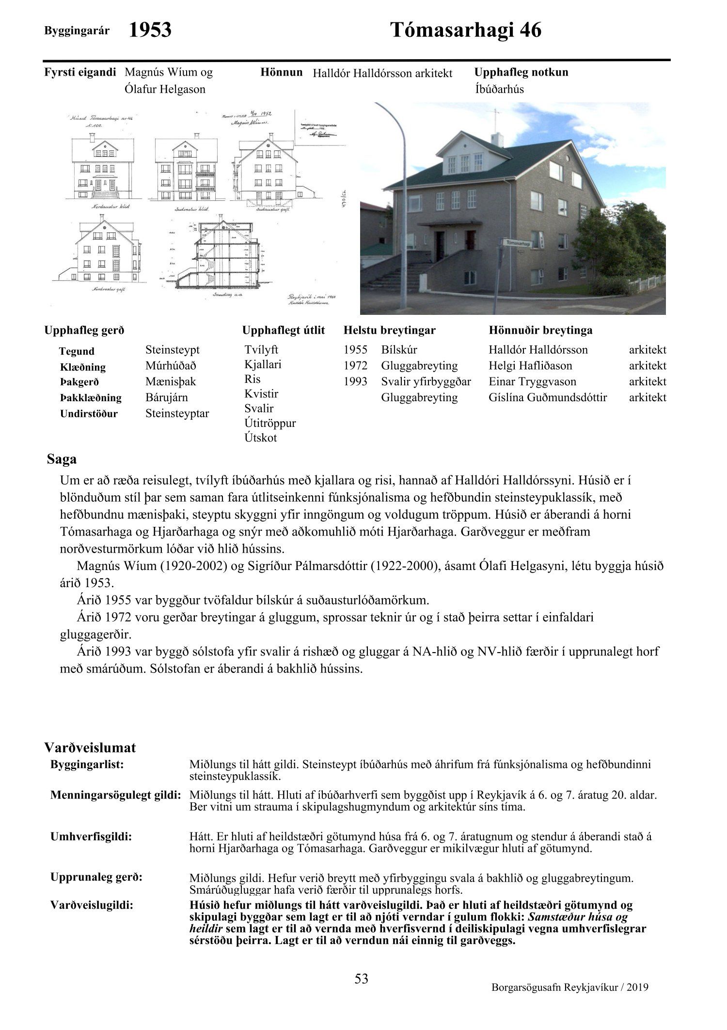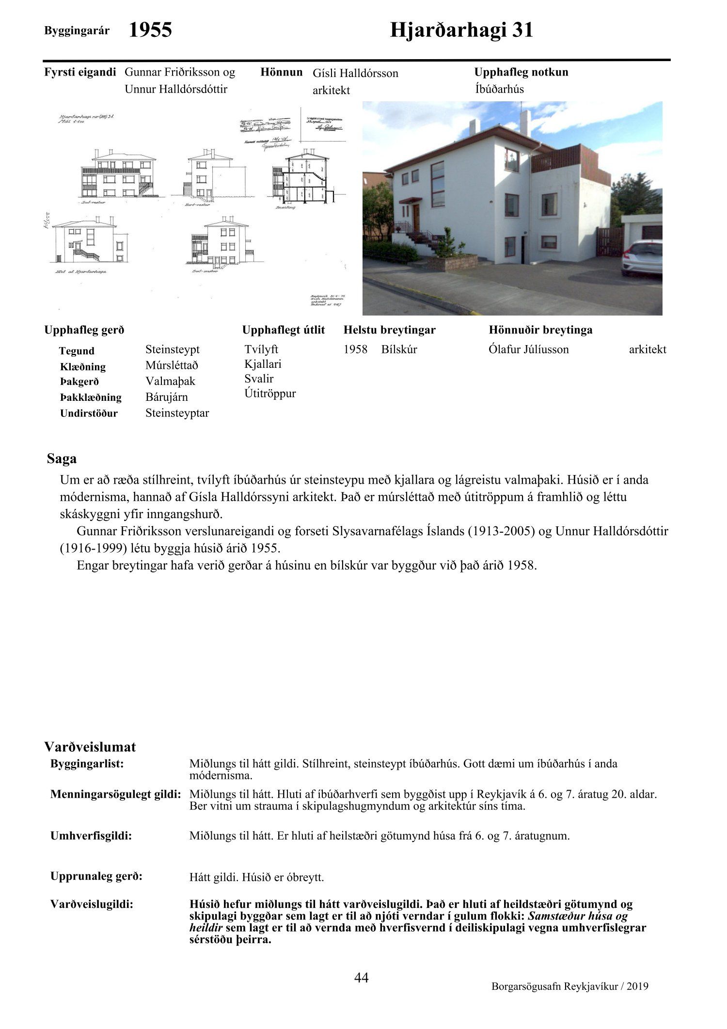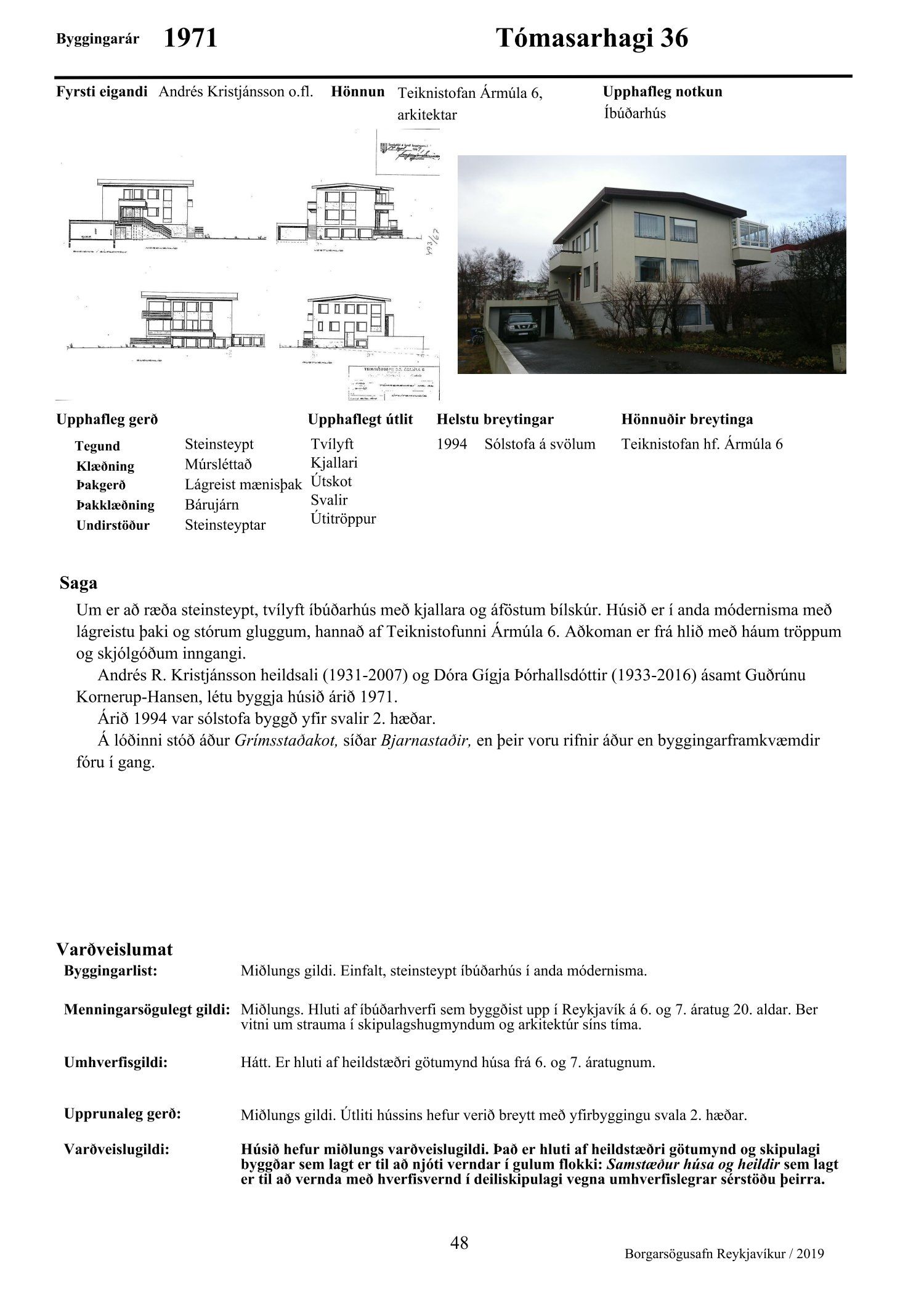 dags. 25. júní 2020. Einnig er lögð fram húsakönnun Borgarsögusafns Reykjavíkur, skýrsla nr. 196 frá 2019. Tillagan var auglýst frá 17. júlí 2020 til og með 31. ágúst 2020. Eftirtaldir sendu athugasemdir: Anna Guðmundsdóttir dags. 20. ágúst 2020, Sigríður Anna Ásgeirsdóttir, Salvör Jónsdóttir, Jón Atli Árnason og Jóhann Friðriksson dags. 28. ágúst 2020, Sólveig Jónsdóttir, Sigurður Á. Þráinsson, Halldór Árnason, Anna Björg Eyjólfsdóttir, Friðrik Árni Halldórsson, Marta María Halldórsdóttir og Ingibjörg Jóna Halldórsdóttir dags. 30. ágúst 2020, Eyvindur Árni Sigurðarson dags. 30. ágúst 2020, Snjólaug Árnadóttir dags. 31. ágúst 2020, Soffía Óladóttir dags. 31. ágúst 2020, Einar Ólafsson dags. 31. ágúst 2020 og Bjarki Már Baxter hjá Málþingi lögmannsstofu f.h. sjálf síns, Einars Ólafssonar, Gunnhildar Stefánsdóttur, Arnars Vilmundarsonar og Signýjar Sifjar Sigurðardóttur dags. 31. ágúst 2020. Einnig er lögð fram umsögn skipulagsfulltrúa dags. 18. sept. 2020.