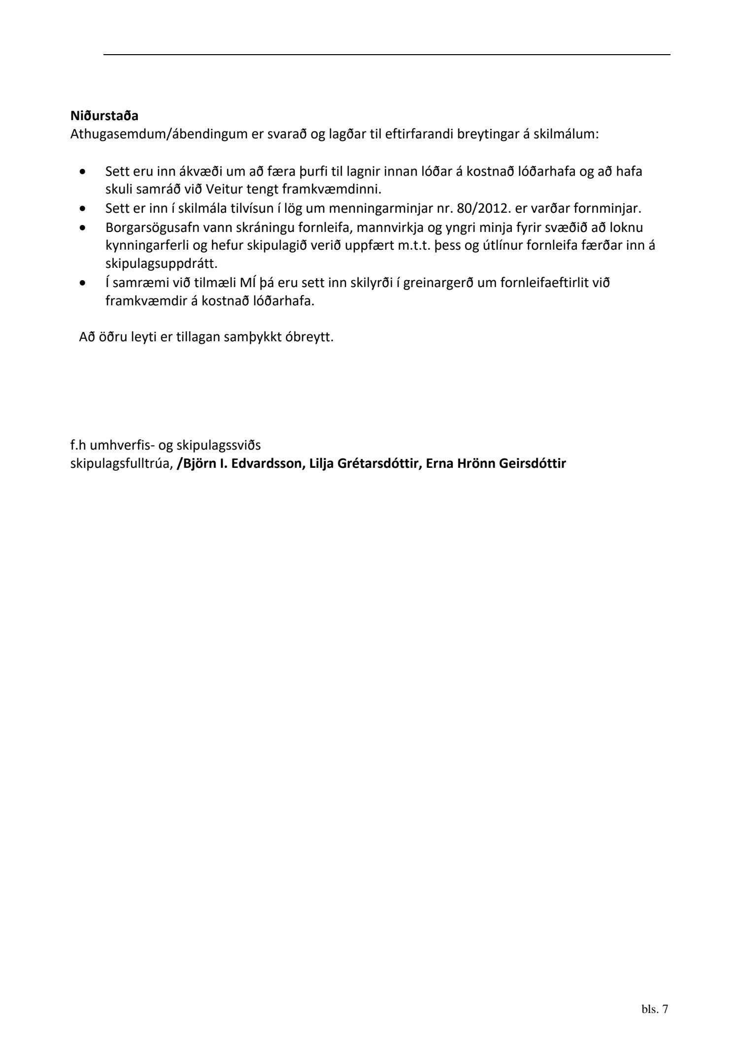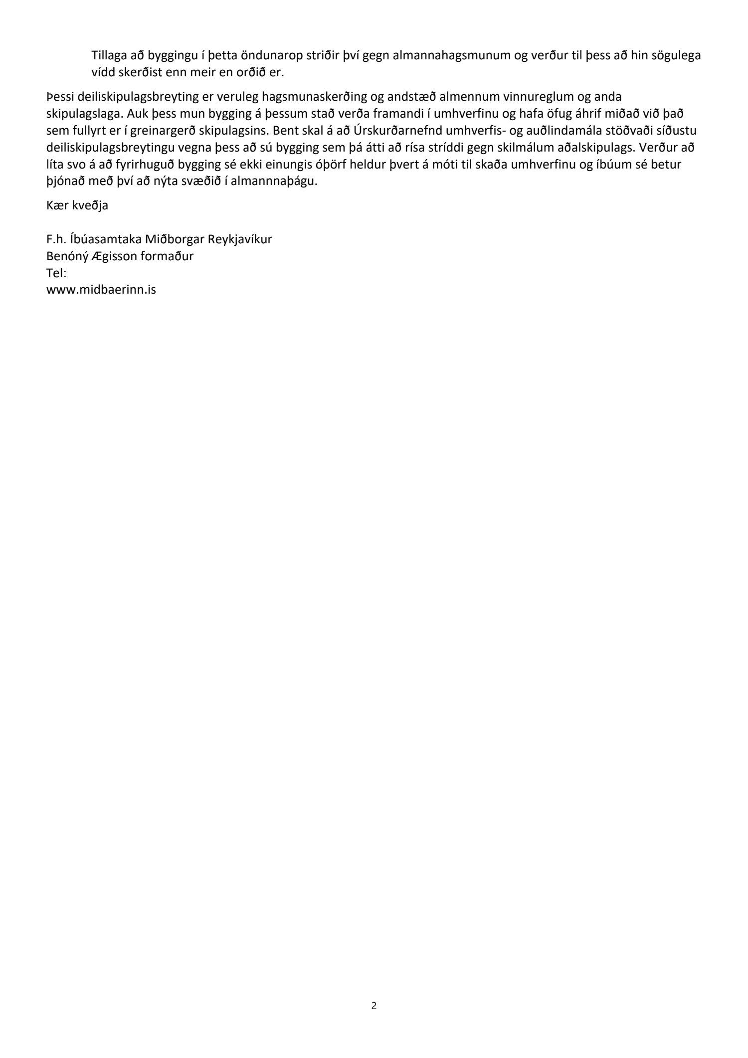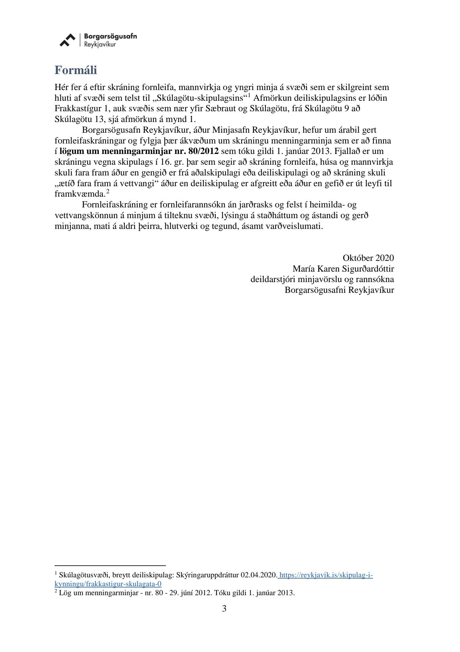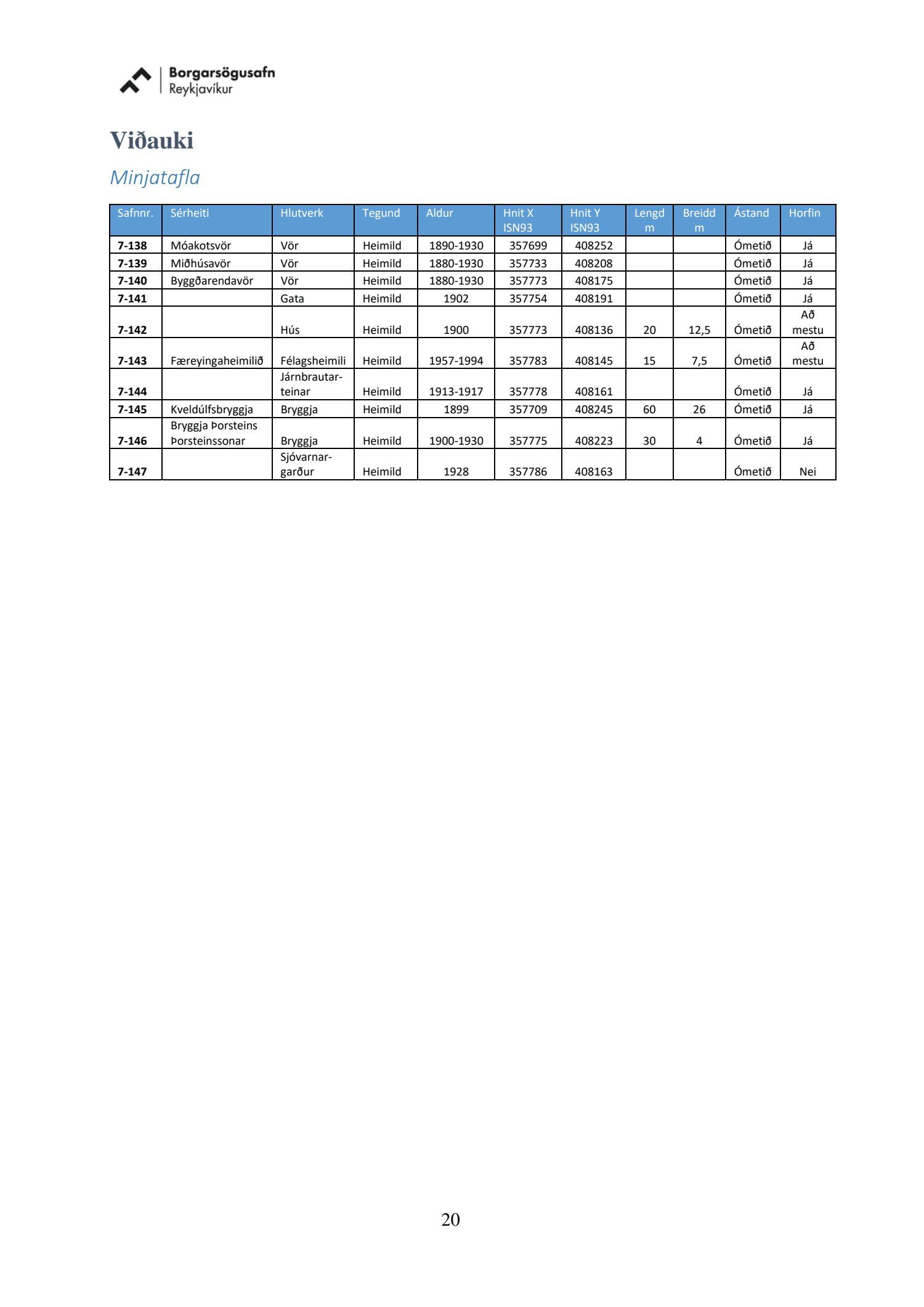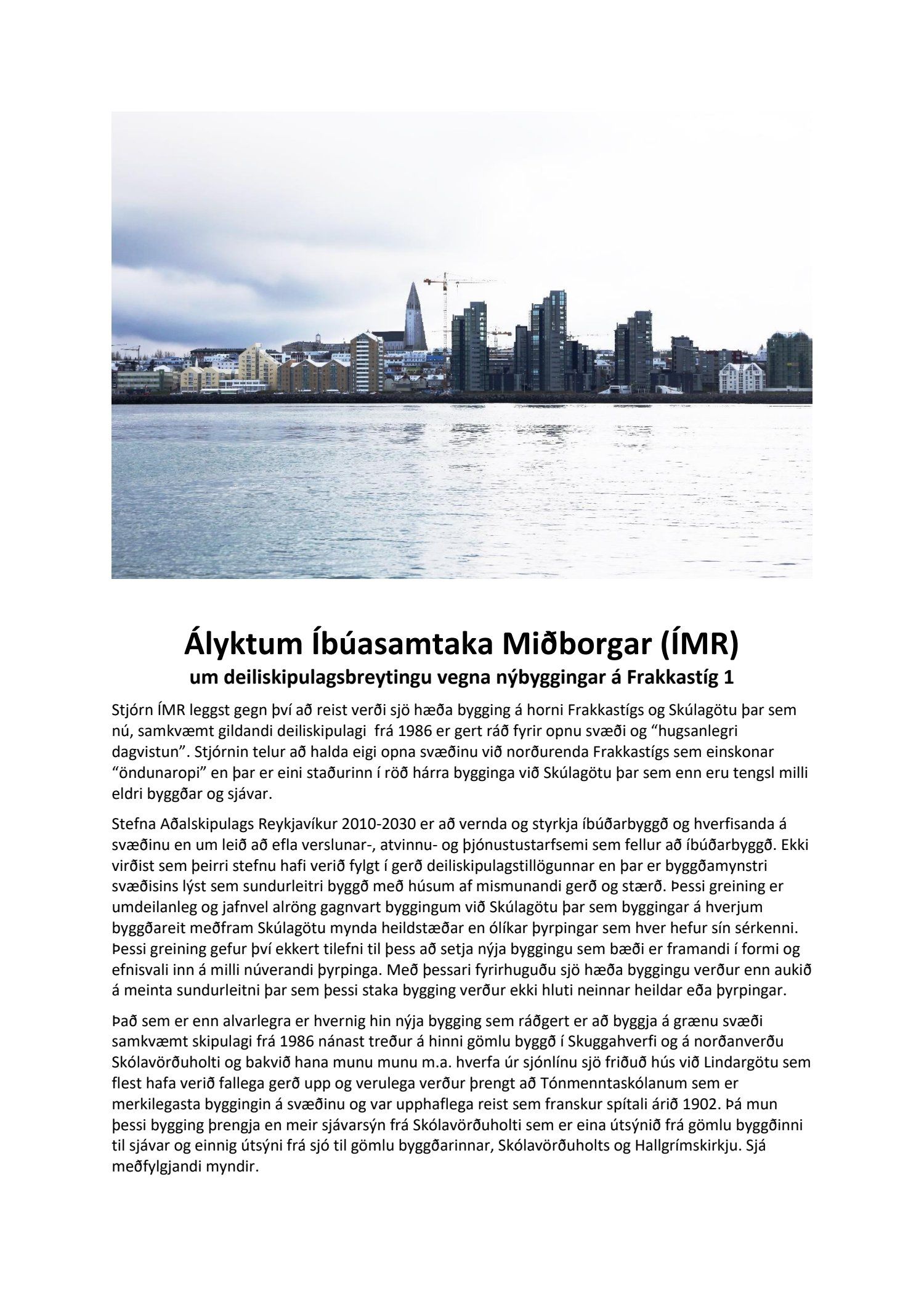 dags. 2. apríl 2020 br. 16. nóvember 2020. Tillagan var auglýst frá 20. maí 2020 til og með 1. júlí 2020. Eftirtaldir sendu athugasemdir/umsögn: Benóný Ægisson f.h. Íbúasamtaka Miðborgar Reykjavíkur dags. 30. júní 2020 og Björgvin Þórðarson hrl. hjá Atlas lögmönnum ehf. f.h. húsfélagsins að Skúlagötu 20, dags. 30. júní 2020. Einnig er lögð fram umsögn Veitna dags. 1. júní 2020, umsögn Minjastofnunar Íslands dags. 2. júlí 2020 og 10. nóvember 2020 og fornleifaskrá Borgarsögusafns Reykjavíkur, skýrsla nr. 206, dags. 2020. Einnig er lögð fram umsögn skipulagsfulltrúa, dags. 13. nóvember 2020.