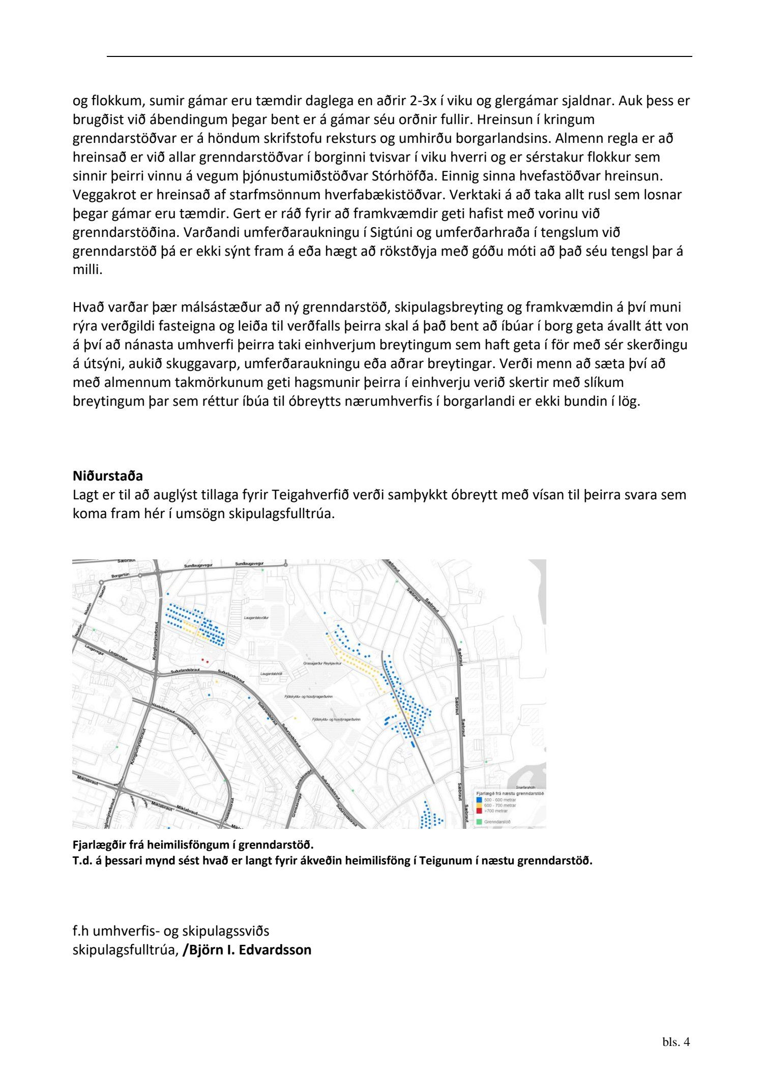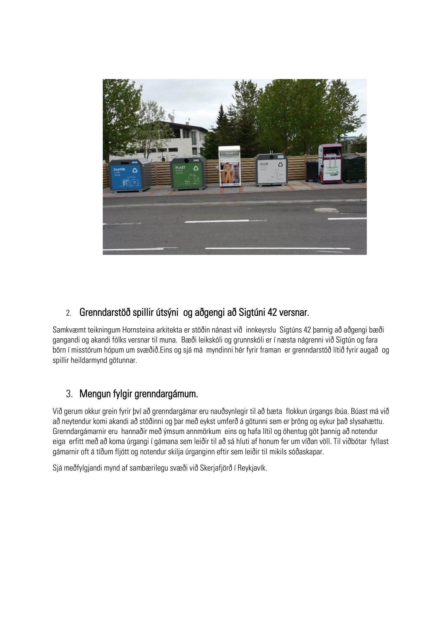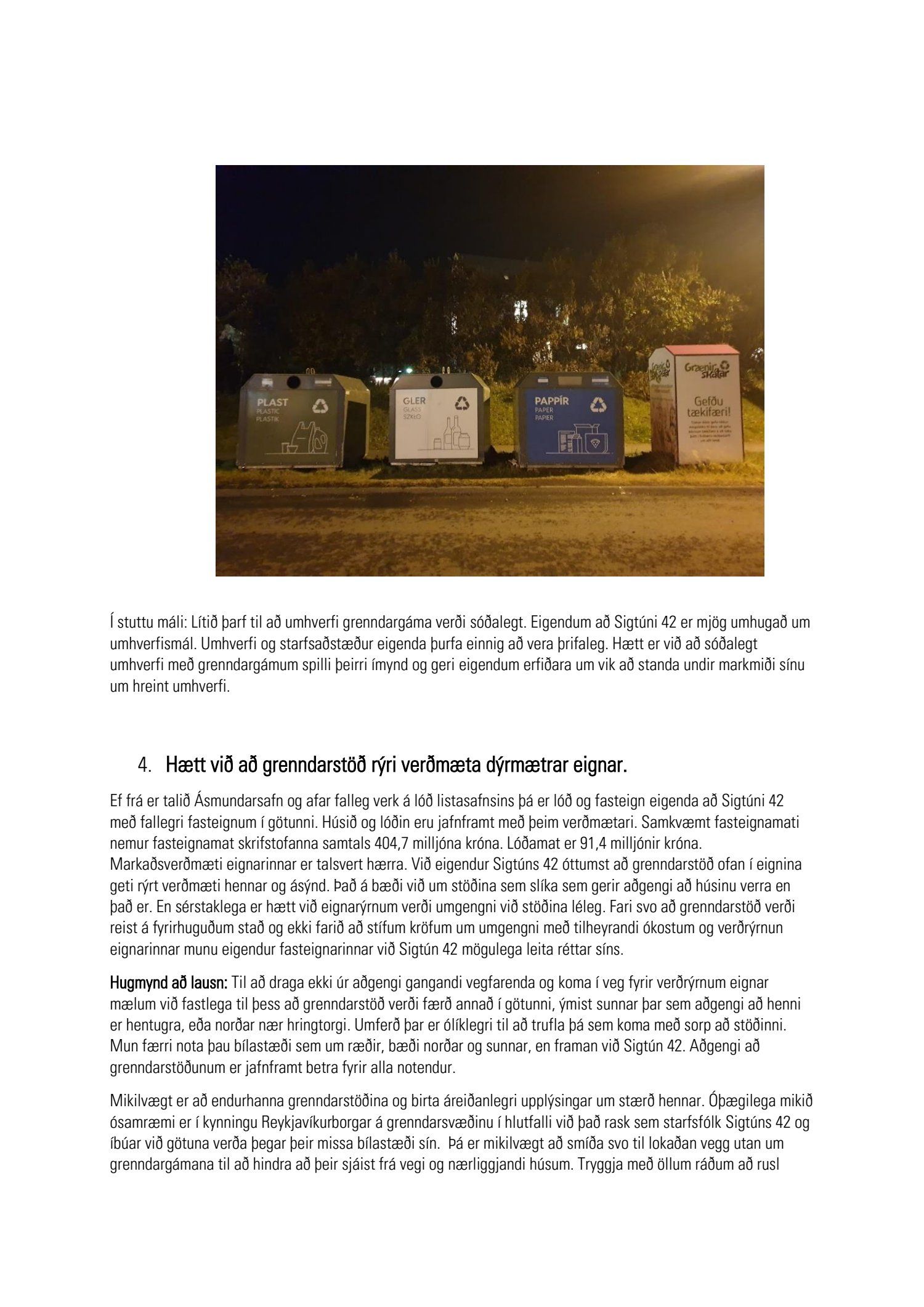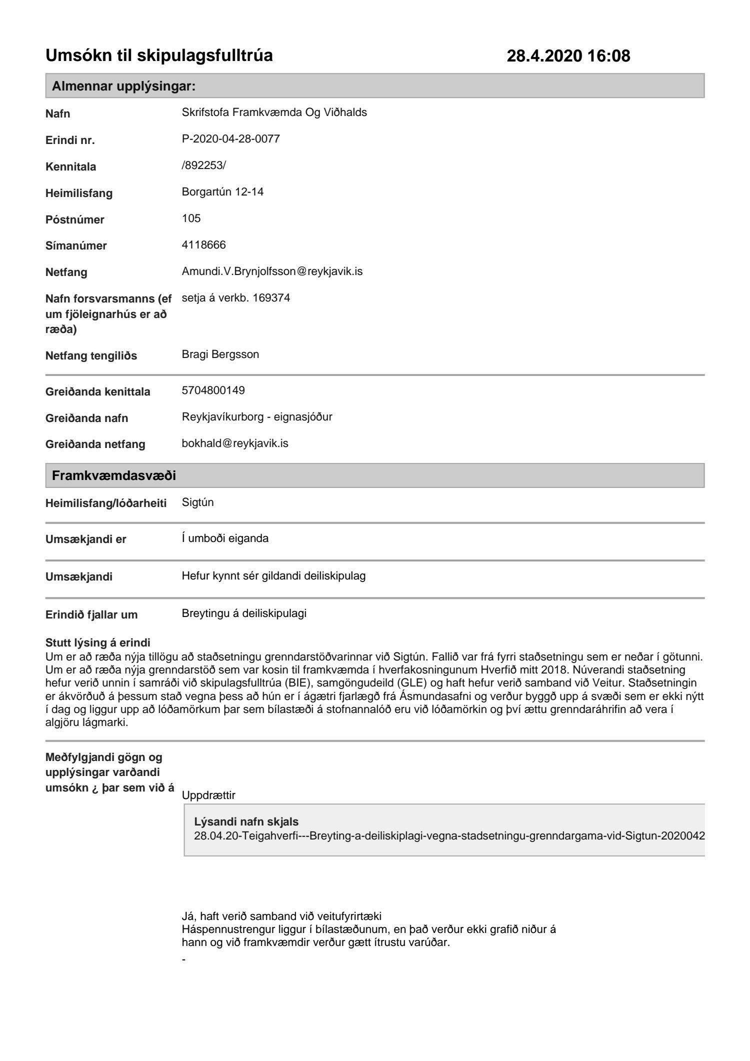 dags. 28. apríl 2020, br. 12. mars 2021. Tillagan var grenndarkynnt frá 21. september 2020 til og með 19. október 2020. Eftirtaldir sendu athugasemdir: Lilja Þorgeirsdóttir, Gerður Guðjónsdóttir og Auður Inga Þorsteinsdóttir f.h. eigenda að Sigtúni 42 dags. 15. október 2020, Ólafur Örn Ólafsson og Þórunn Margrét Gunnarsdóttir dags. 18. október 2020, Kristinn Einarsson dags. 19. október 2020, Hákon Þór Sindrason, dags. 19. október 2020 og Guðrún Einarsdóttir dags. 19. október 2020. Einnig er lögð fram umsögn skipulagsfulltrúa dags. 22. janúar 2021.