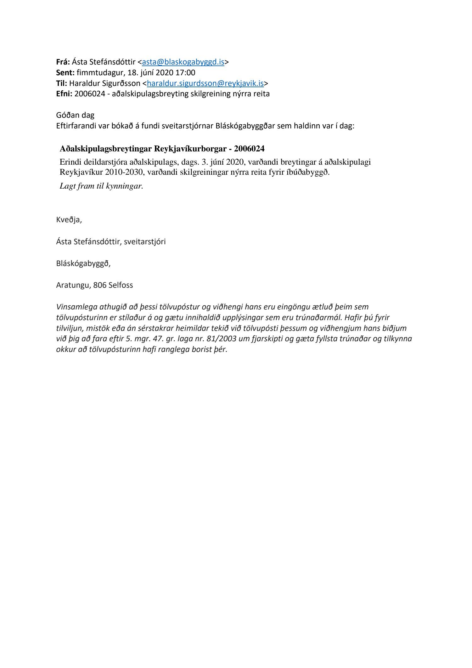 Einnig er lögð fram uppfærð tillaga umhverfis- og skipulagssviðs dags. í júní 2020 að breytingu á Aðalskipulagi Reykjavíkur 2010-2030 er varðar stefnu um íbúðabyggð.