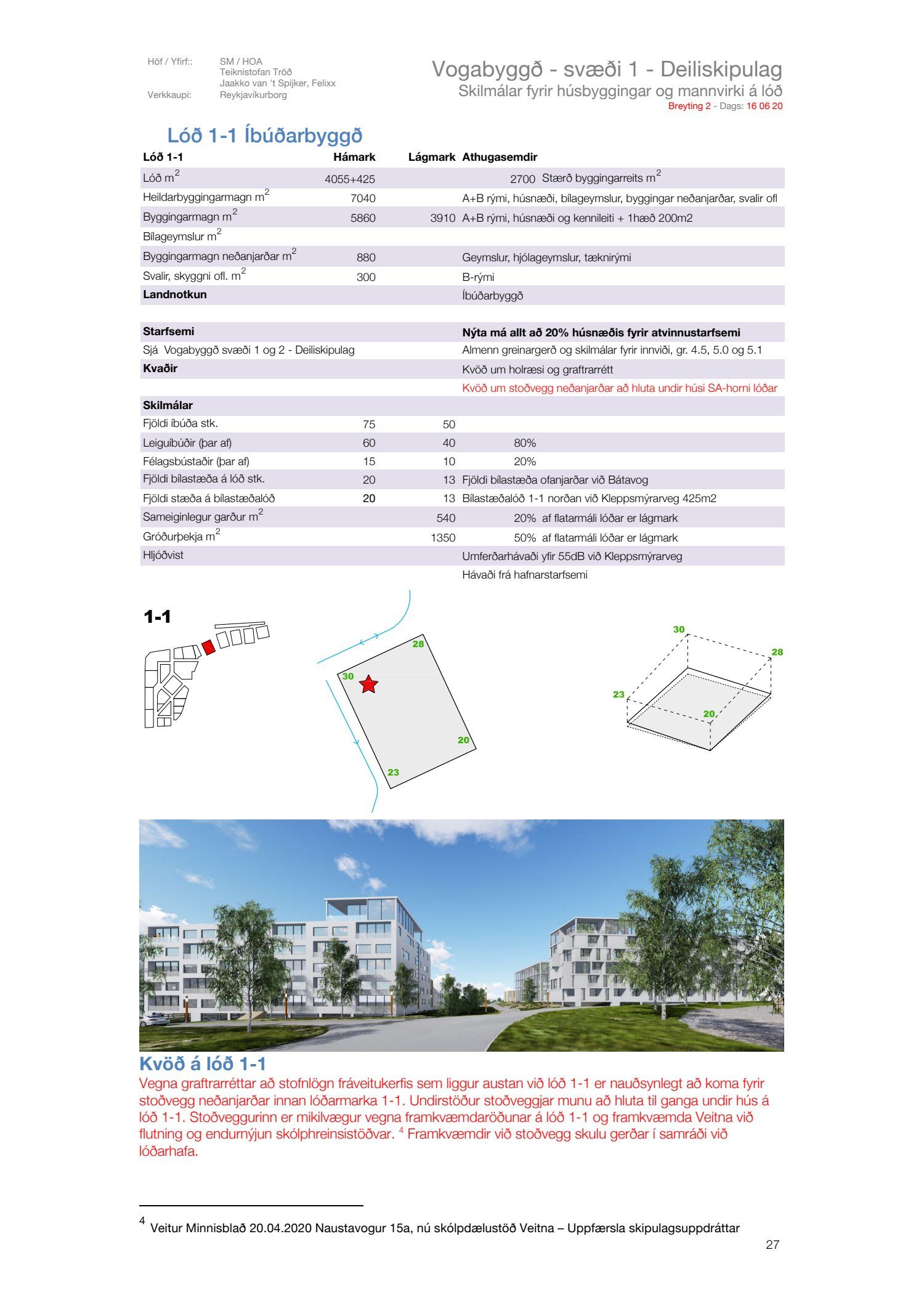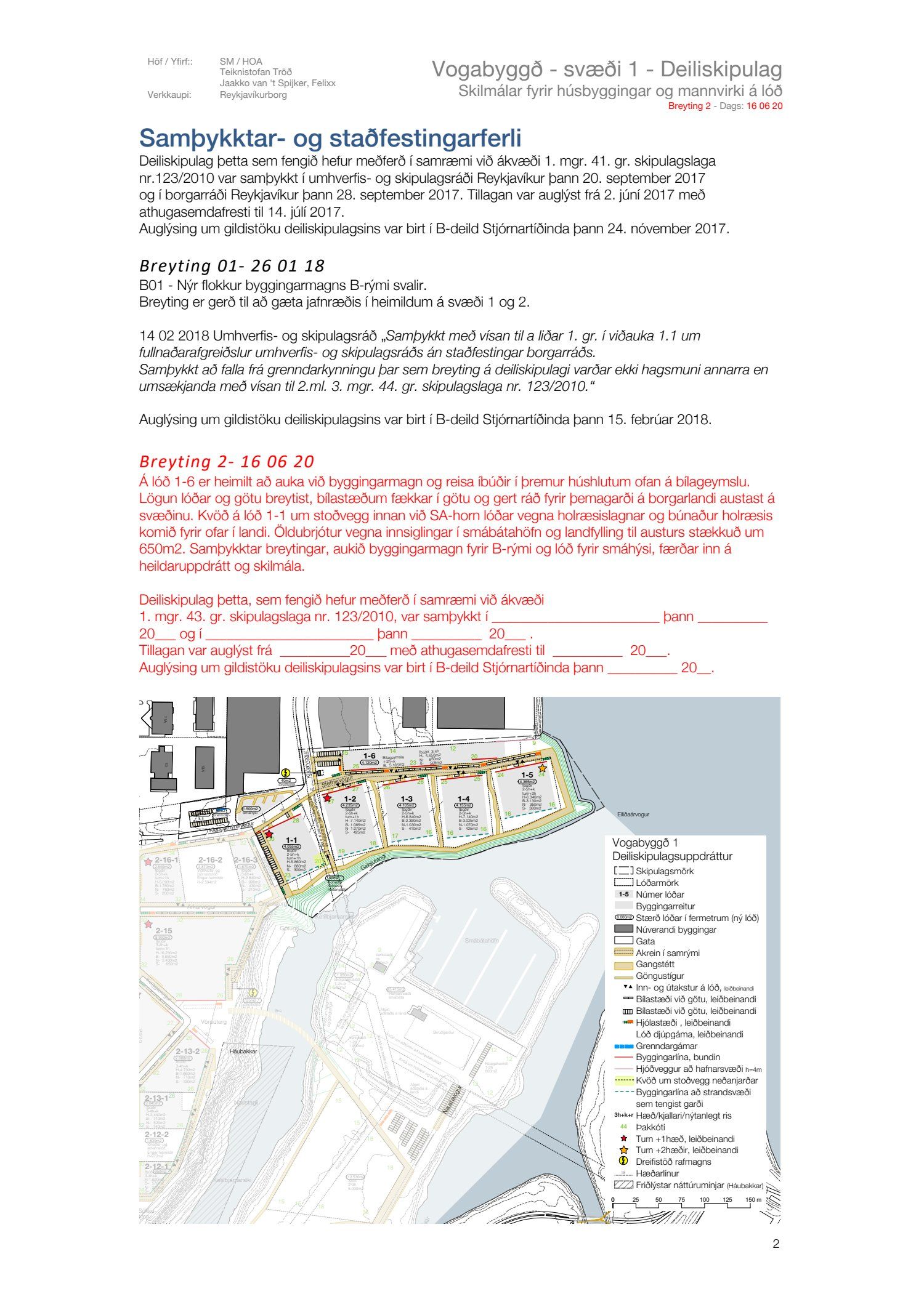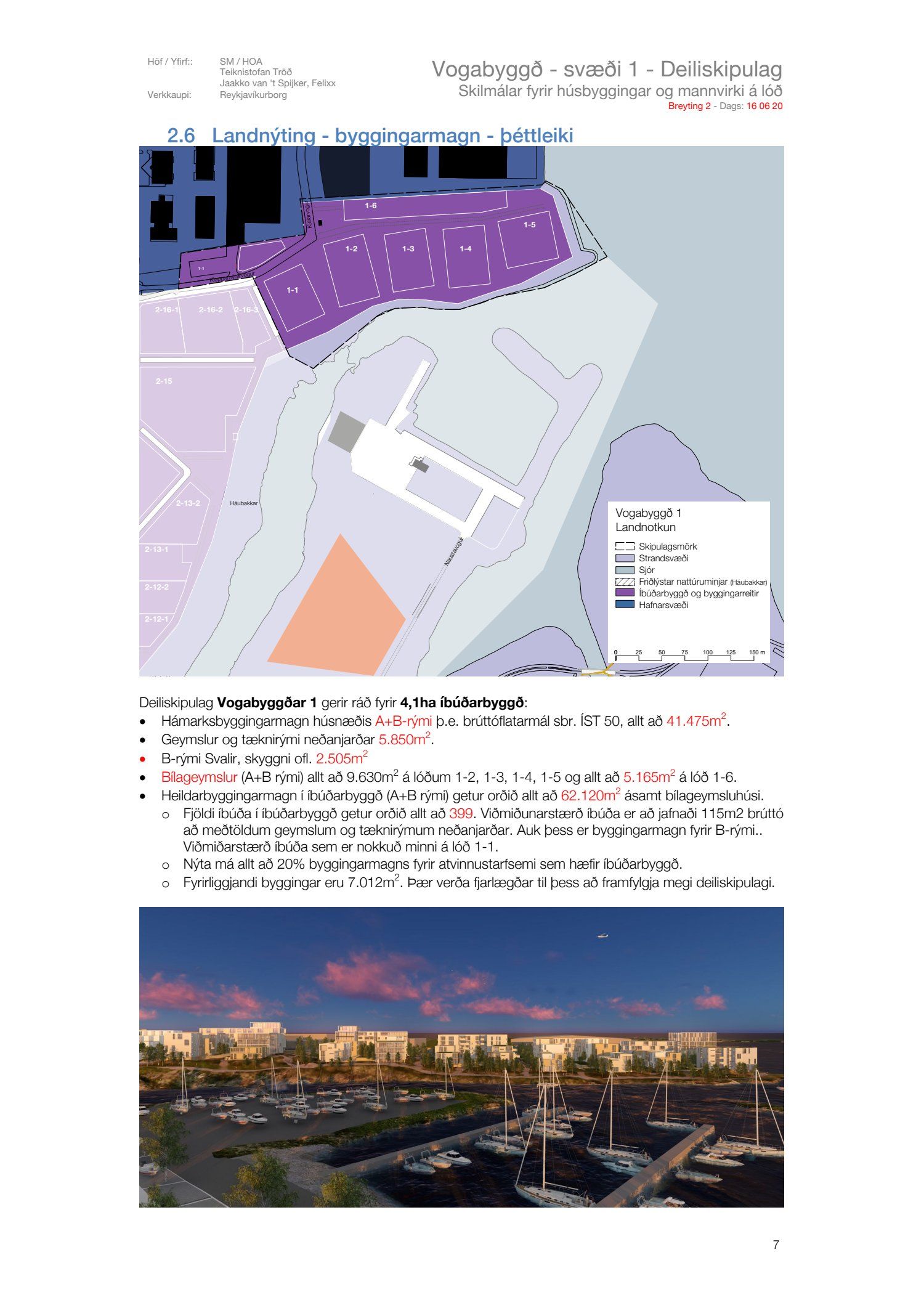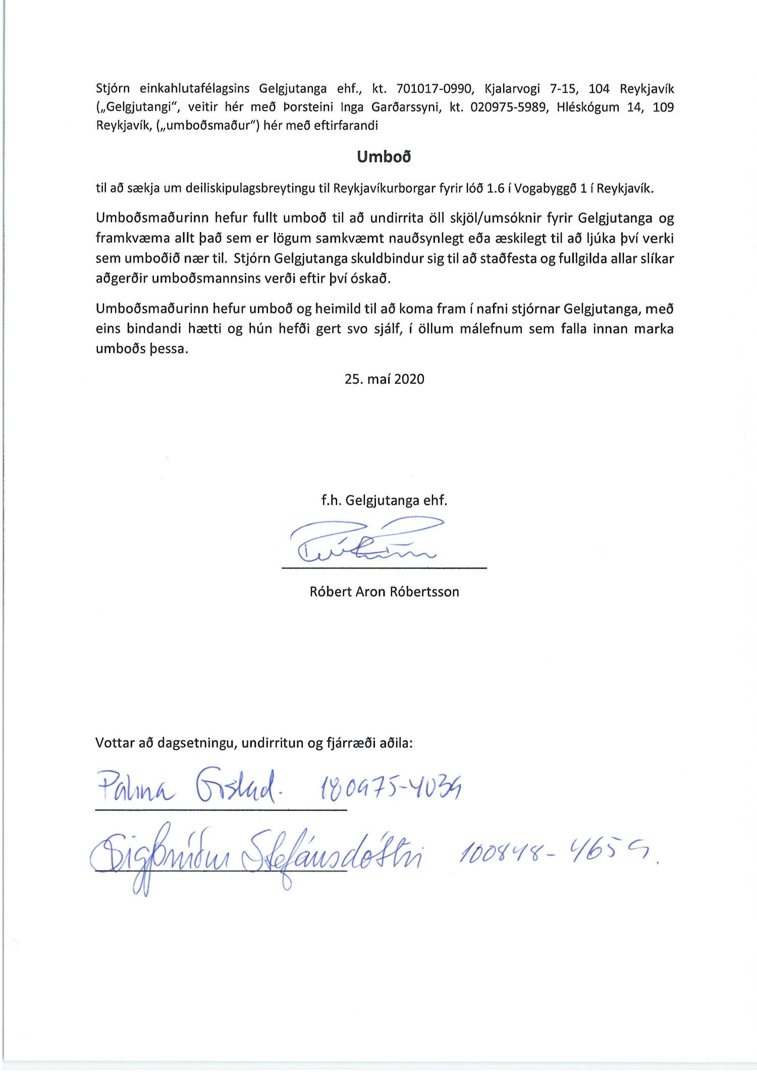 Á embættisafgreiðslufundi skipulagsfulltrúa 5. júní 2020 var lögð fram umsókn Þorsteins Inga Garðarssonar dags. 29. maí 2020 varðandi breytingu á deiliskipulagi Vogabyggðar svæði 1 vegna lóðar nr. 1.6. Í breytingunni felst m.a. að heimila aukið byggingarmagn og reisa íbúðir í þremur húshlutum ofan á bílgeymslu, fækka bílastæðum í götu, gera þemagarð á borgarlandi austast á svæðinu ásamt því að breyta lögun lóðar og götu, samkvæmt deiliskipulagsuppdrætti Jvantspijker og Teiknistofunnar Traðar dags. 16. júní 2020. Einnig eru lagðir fram skilmálar fyrir húsbyggingar og mannvirki á lóð dags. 26. janúar 2018 br. 16. júní 2020, minnisblað Eflu dags. 12. mars 2019 um hljóðmælingar og umboð Gelgjutanga ehf. dags. 25. maí 2020. Erindinu var vísað til meðferðar hjá verkefnisstjóra og er nú lagt fram að nýju.