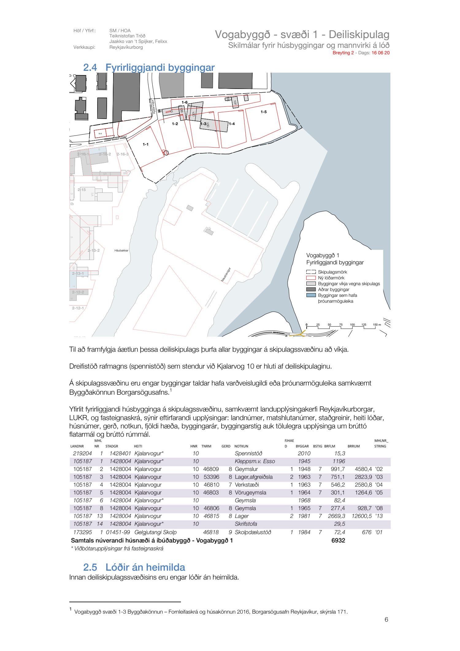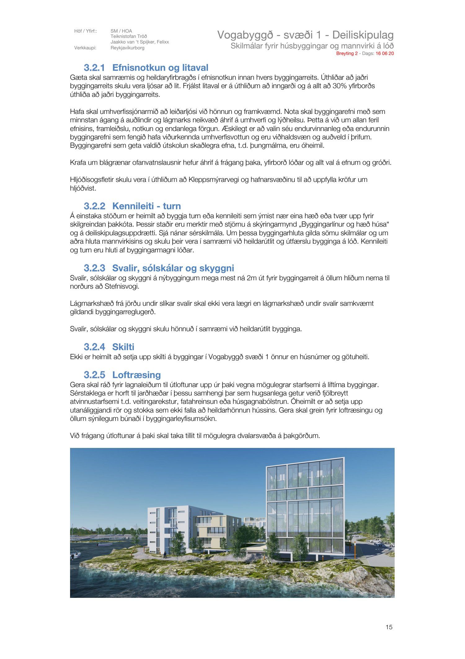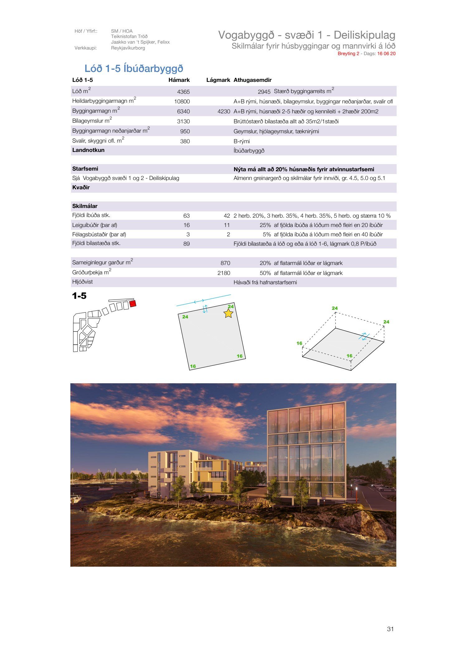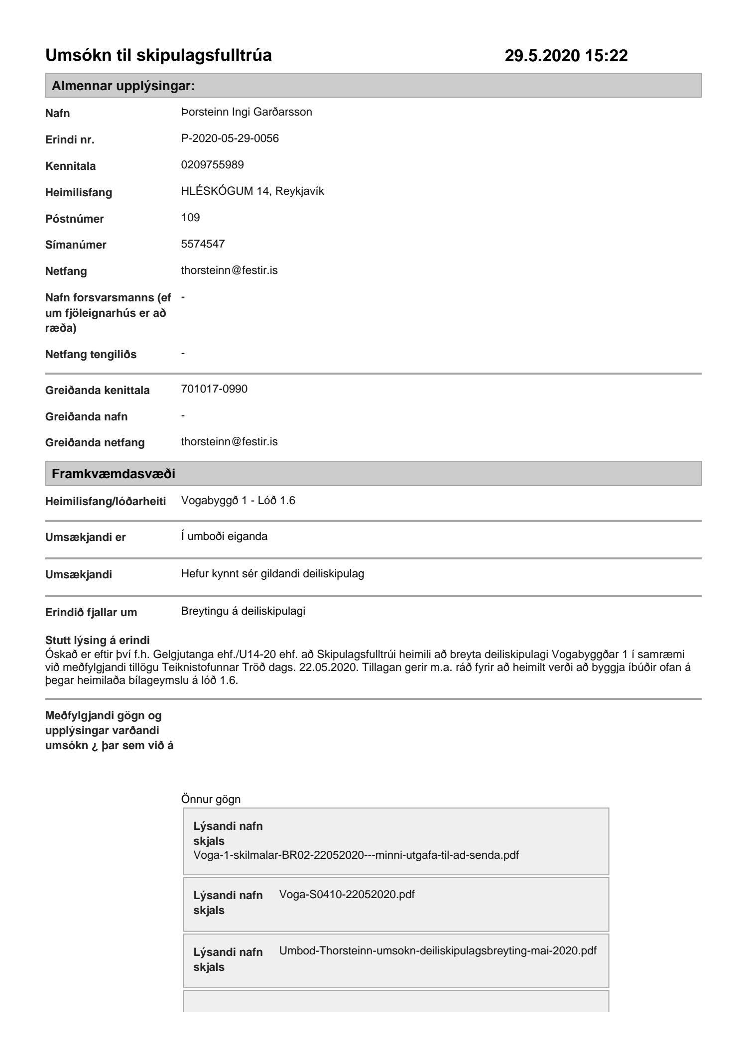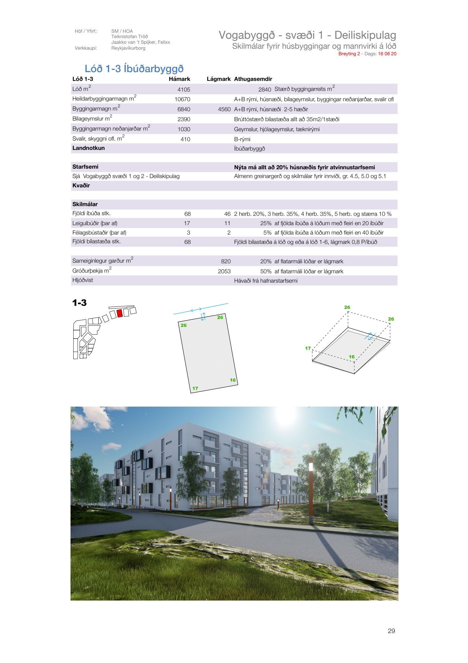 Á embættisafgreiðslufundi skipulagsfulltrúa 5. júní 2020 var lögð fram umsókn Þorsteins Inga Garðarssonar dags. 29. maí 2020 varðandi breytingu á deiliskipulagi Vogabyggðar svæði 1 vegna lóðar nr. 1.6. Í breytingunni felst m.a. að heimila aukið byggingarmagn og reisa íbúðir í þremur húshlutum ofan á bílgeymslu, fækka bílastæðum í götu, gera þemagarð á borgarlandi austast á svæðinu ásamt því að breyta lögun lóðar og götu, samkvæmt deiliskipulagsuppdrætti Jvantspijker og Teiknistofunnar Traðar dags. 16. júní 2020. Einnig eru lagðir fram skilmálar fyrir húsbyggingar og mannvirki á lóð dags. 26. janúar 2018 br. 16. júní 2020, minnisblað Eflu dags. 12. mars 2019 um hljóðmælingar og umboð Gelgjutanga ehf. dags. 25. maí 2020. Erindinu var vísað til meðferðar hjá verkefnisstjóra og er nú lagt fram að nýju.