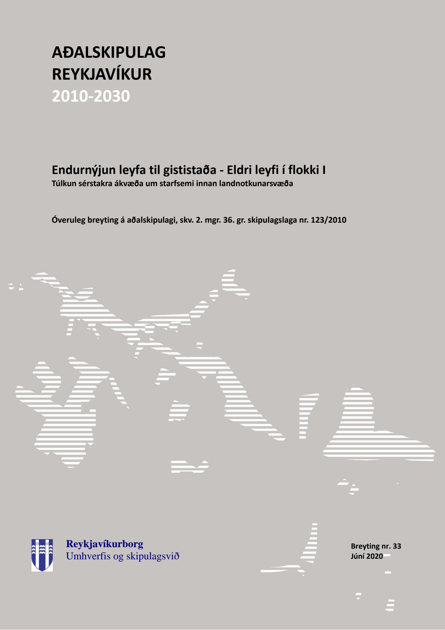 Lögð fram tillaga umhverfis- og skipulagssviðs dags. í júní 2020 að breytingu á Aðalskipulagi Reykjavíkur 2010-2030 er varðar endurnýjun leyfa til gististaða - eldri leyfi í flokki I. Breytingin nær til kaflans Landnotkun og varðar fyrirvara um túlkun ákvæða um gististaði og afturvirkni settra skipulagsákvæða.