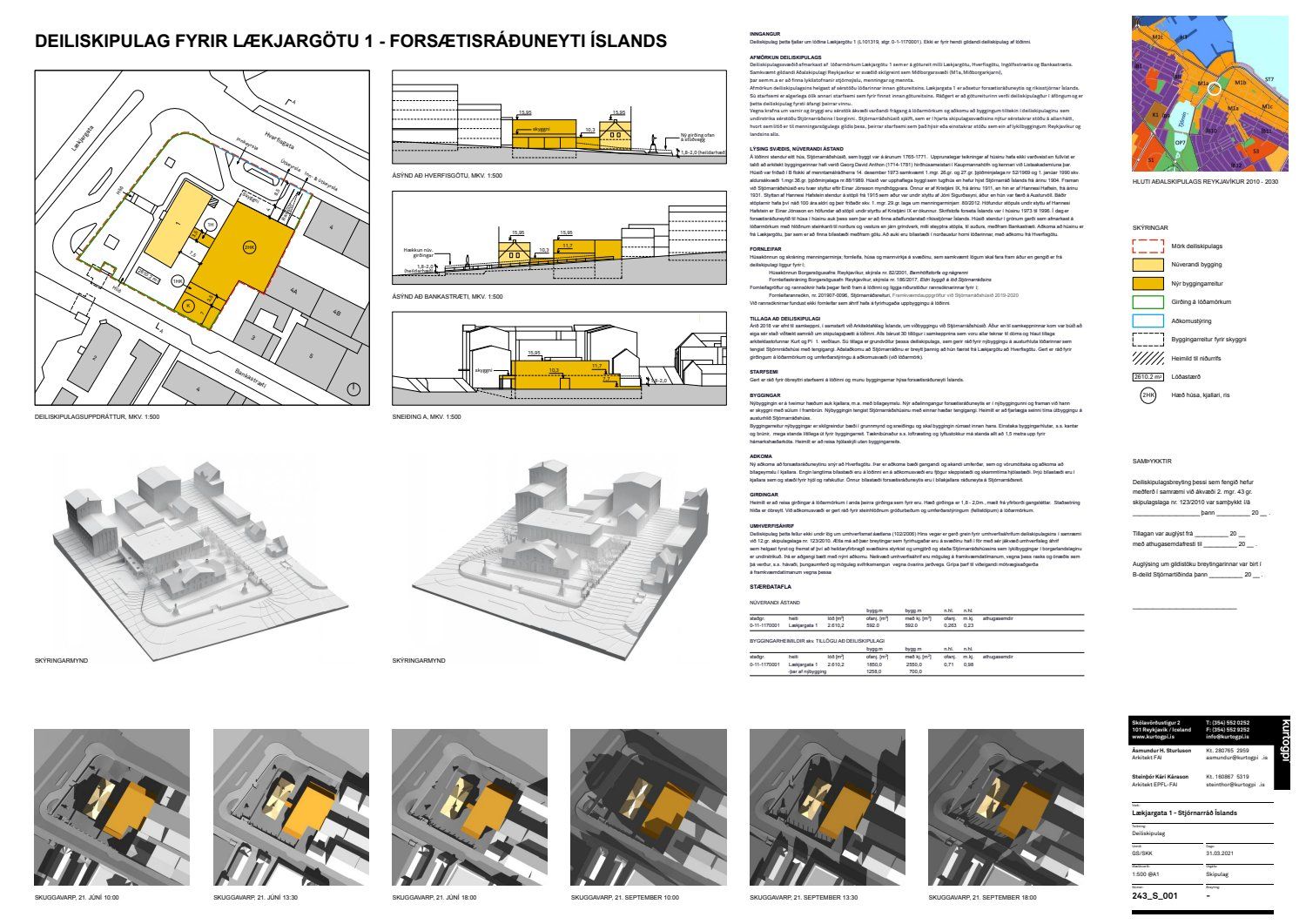 Lögð fram umsókn Framkvæmdasýslu ríkisins dags. 14. október 2020 ásamt bréfi dags. 14. október 2020 um nýtt deiliskipulag fyrir lóðina nr. 1 við Lækjargötu, lóð forsætisráðuneytisins og stjórnarráðshússins, vegna áforma um viðbyggingu við Stjórnarráðshúsið fyrir starfsemi forsætisráðuneytisins, samkvæmt uppdr. Kurt og Pí ehf. dags. 31. mars 2021.