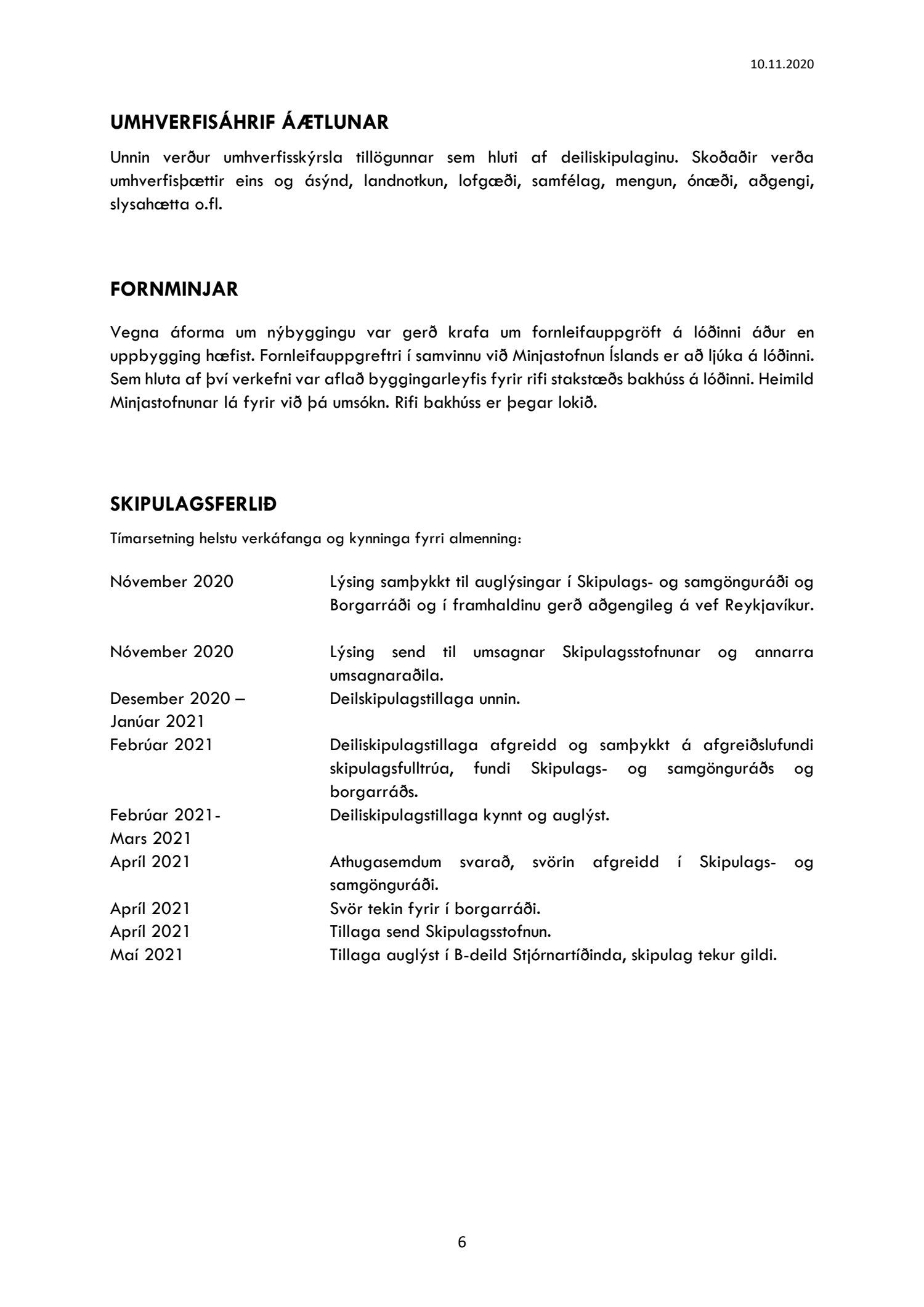 Lögð fram umsókn Framkvæmdasýslu ríkisins dags. 14. október 2020 ásamt bréfi dags. 14. október 2020 um nýtt deiliskipulag fyrir lóðina nr. 1 við Lækjargötu, lóð forsætisráðuneytisins og stjórnarráðshússins, vegna áforma um viðbyggingu við Stjórnarráðshúsið fyrir starfsemi forsætisráðuneytisins. Einnig er lögð fram vinningstillaga Kurt og Pí arkitekta frá árinu 2018 og umboð forsætisráðuneytisins dags. 14. október 2020. Jafnframt er lögð fram skipulagslýsing umhverfis- og skipulagssviðs, skipulagsfulltrúa, dags. 10. nóvember 2020.