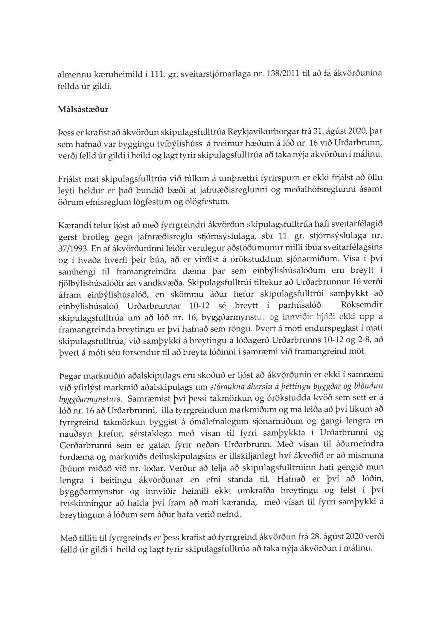 ódags., stjórnsýslukæra dags. 13. október 2020 og umsögn skipulagsfulltrúa dags. 29. mars 2021.