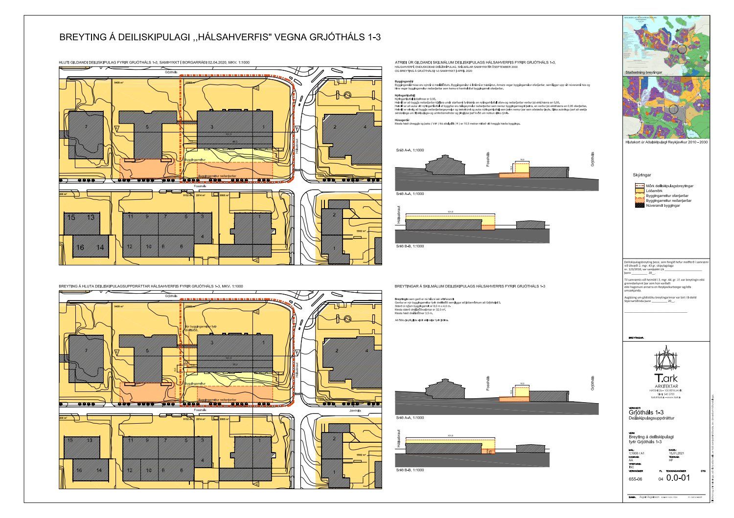 Lögð fram umsókn T. ark Arkitekta ehf. dags. 18. janúar 2021 ásamt bréfi dags. 18. janúar 2021 varðandi breytingu á deiliskipulagi Hálsahverfis vegna lóðarinnar nr. 1-3 við Grjótháls. Í breytingunni felst að gerður er nýr byggingarreitur fyrir dreifistöð sem liggur að vestari lóðamörkum að Grjóthálsi 5, samkvæmt uppdr. T.ark Arkitekta ehf. dags. 15. janúar 2021. Einnig er lagt fram samþykki lóðarhafa að Grjóthálsi 5 mótt. 18. febrúar 2021.
