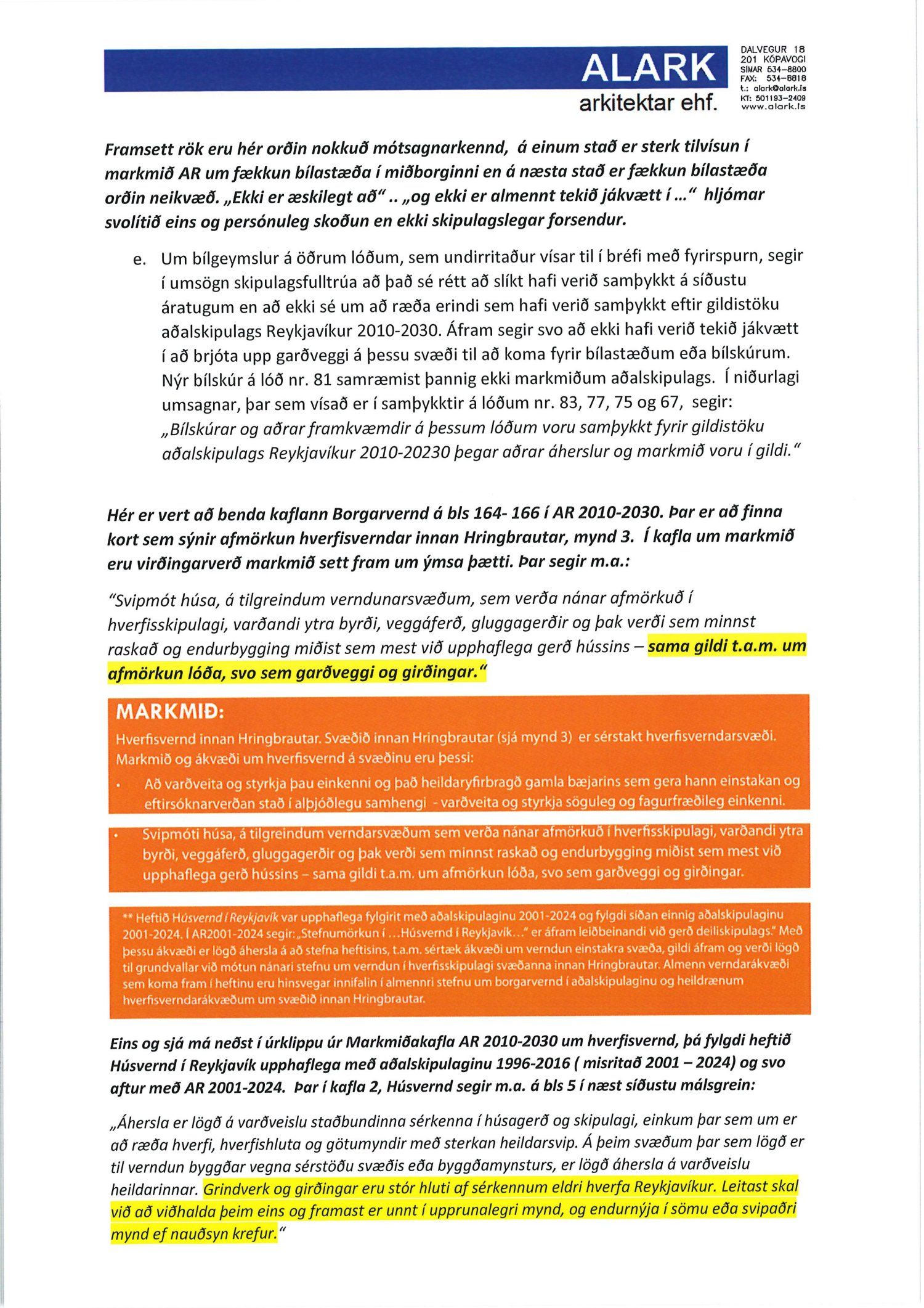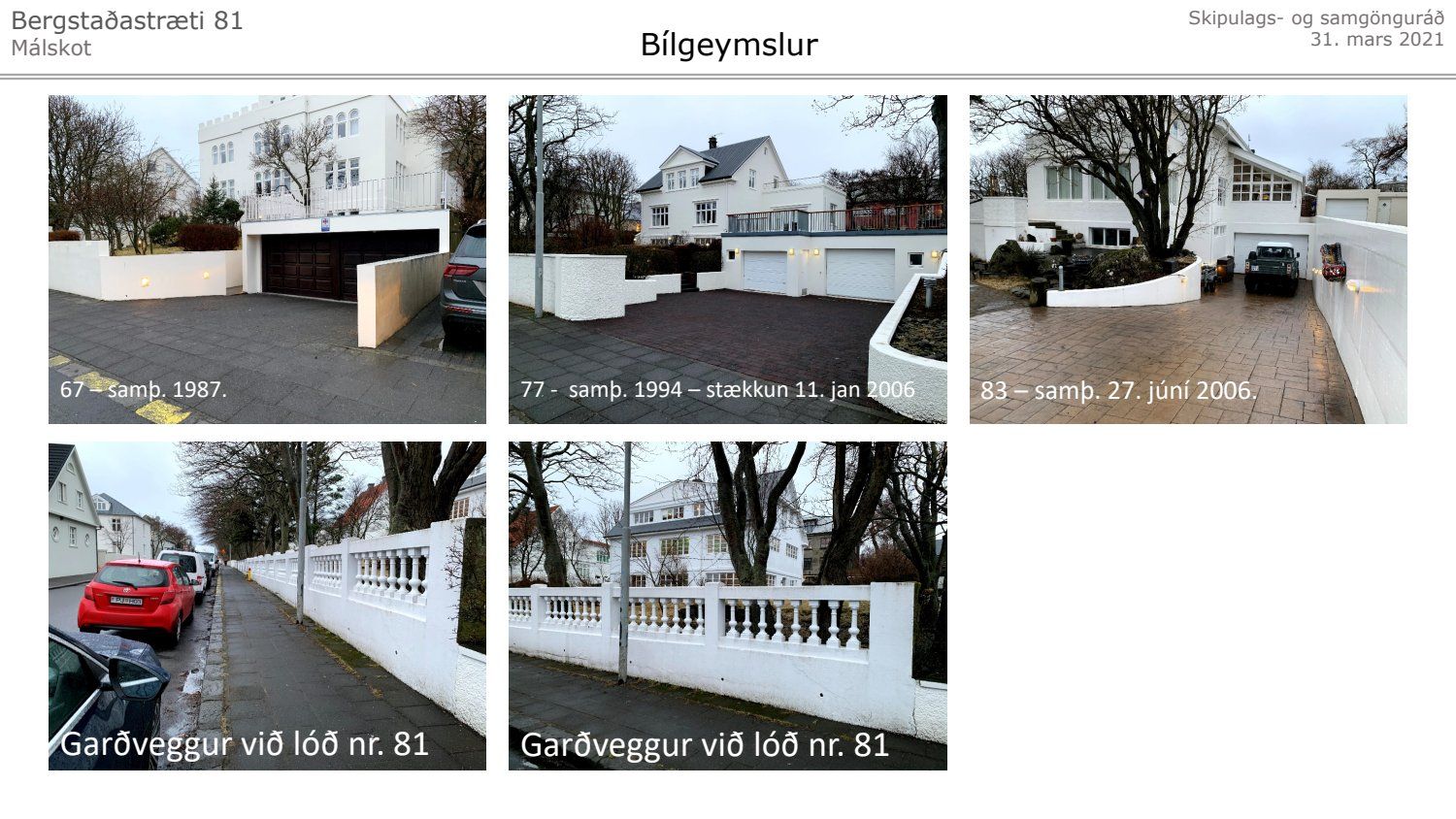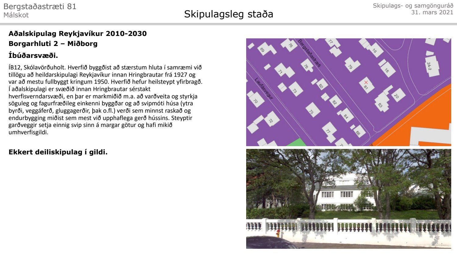 dags. 12. febrúar 2021 vegna neikvæðrar afgreiðslu skipulagsfulltrúa frá 5. febrúar 2020 um að byggja bílgeymslu á austurhluta lóðarinnar nr. 81 við Bergstaðastræti. Einnig er lögð fram umsögn skipulagsfulltrúa dags. 1. febrúar 2021.