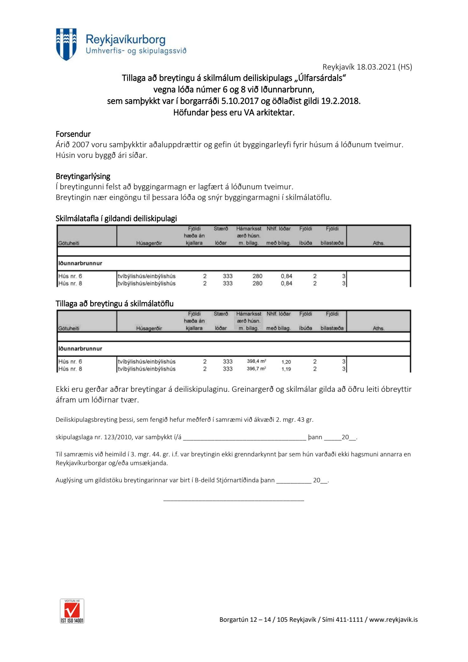 Samþykkt að falla frá kynningu þar sem breyting á deiliskipulagi varðar ekki hagsmuni annarra en lóðarhafa með vísan til 2. ml. 3. mgr. 44. gr. skipulagslaga nr. 123/2010. Samþykkt með vísan til a liðar 1. gr. í viðauka 1.1 um fullnaðarafgreiðslur skipulags- og samgönguráðs án staðfestingar borgarráðs.