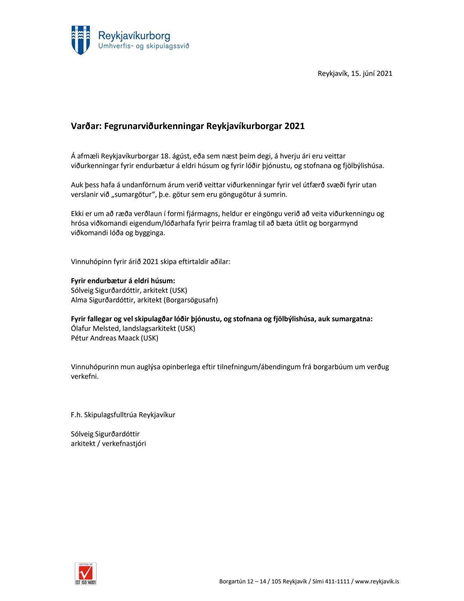 Samþykkt að skipa Sólveigu Sigurðardóttur og Ölmu Sigurðardóttur í vinnuhóp fyrir endurbætur á eldri húsum og Ólaf Melsted og Pétur Andreas Maack í vinnuhóp fyrir fallegar og vel skipulagðar lóðir þjónustu, og stofnana og fjölbýlishúsa, auk sumargatna.