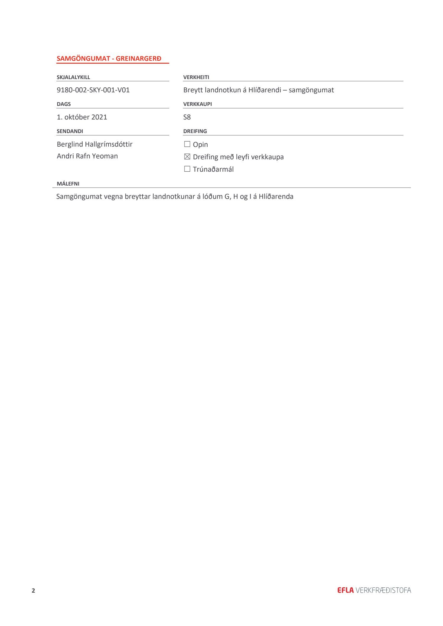 dags. 24. júní 2021. Einnig er lagt fram samgöngumat Eflu dags. 1. október 2021.