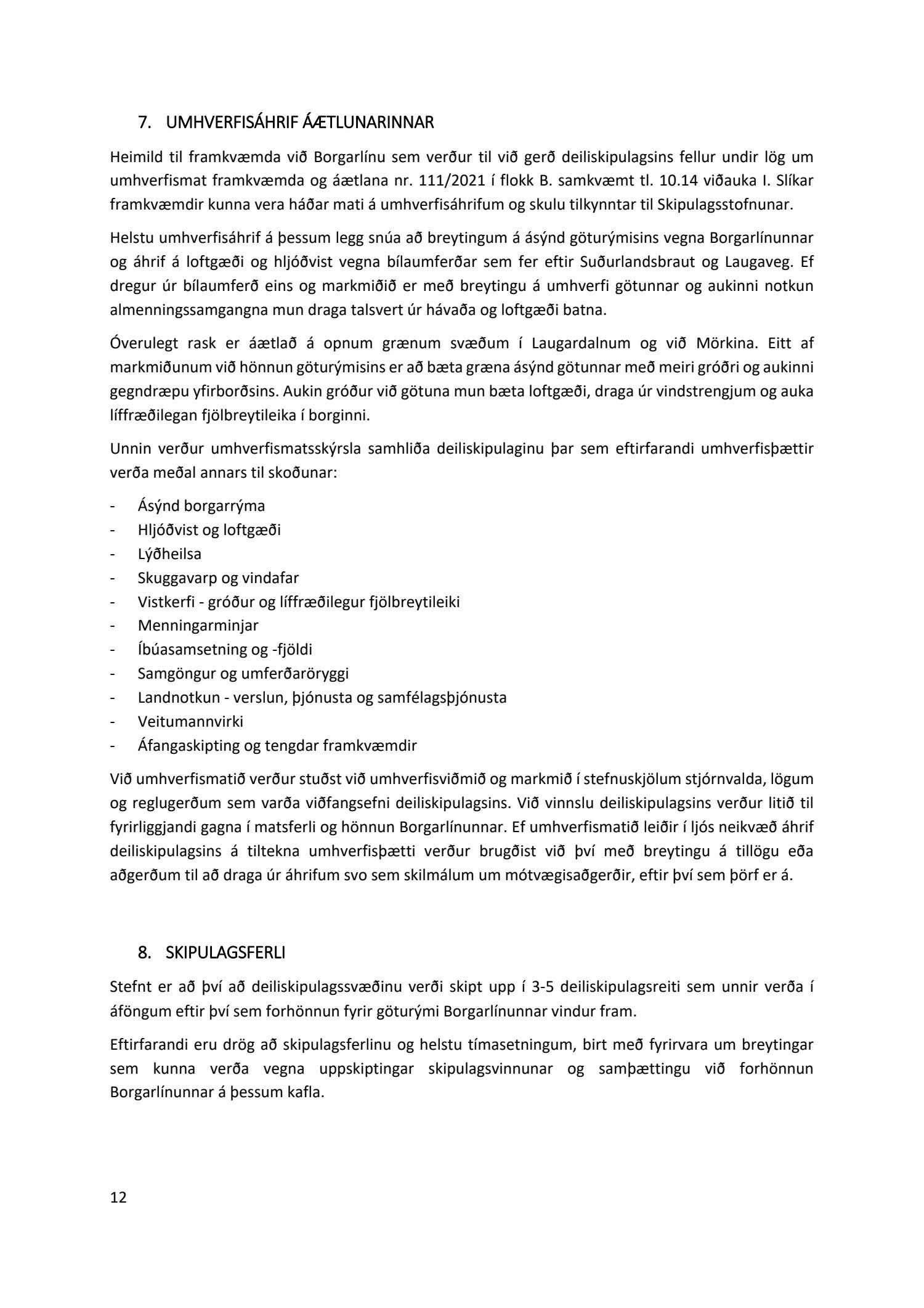 Uppbygging samgöngumannvirkja á ávallt að vera með þeim hætti að öllum ferðamátum sé gert jafn hátt undir höfði. Hér er slíku ekki fyrir að fara. Í tillögunni er gróflega er gengið á rými bíla, hvort heldur um ræðir fjölskyldu-, einka eða atvinnubíla, en þar er um að ræða valkosti sem langflestir landsmenn kjósa. Bíllinn er í dag lífsgæði. Lífsgæði sem hartnær 90% landsmanna kjósa að njóta. Borgarlína í þeirri mynd sem hér getur að líta er ekki framþróun heldur skerðing á valfrelsi almennings. Lagt er til að mál tengd Borgarlínu og stórar ákvarðanir hennar tengdar verði settar á ís fram yfir komandi sveitastjórnarkosningar. Þannig fær almenningur tækifæri til að koma sínum vilja á framfæri með afgerandi hætti. Þannig virðum við lýðræðið.