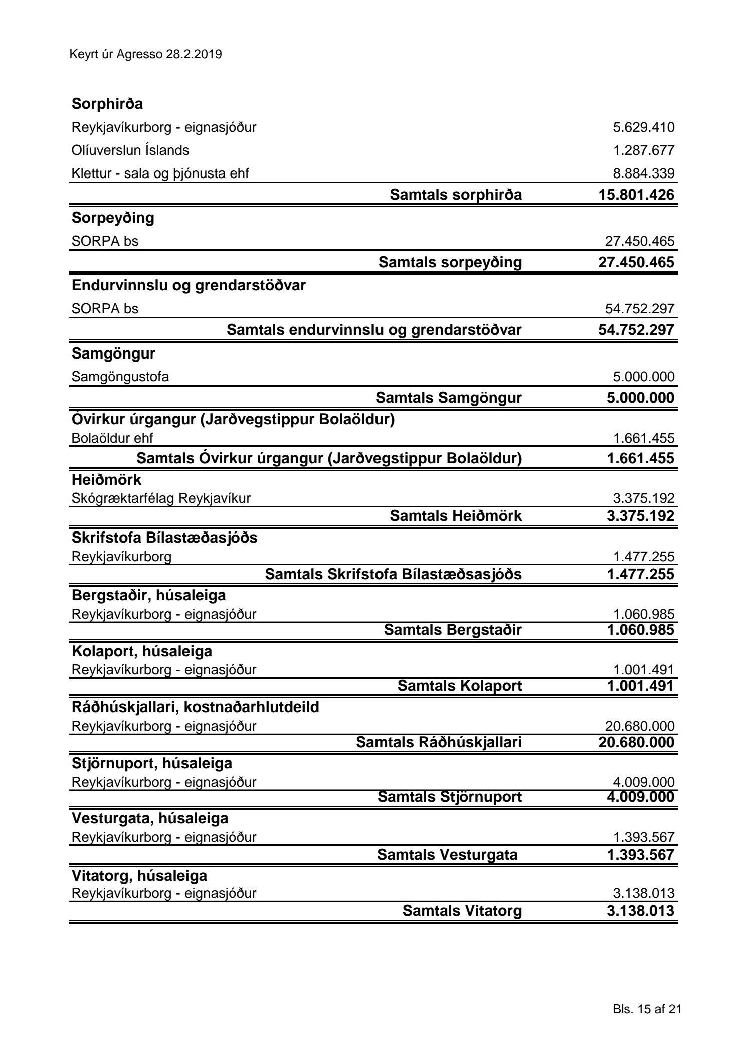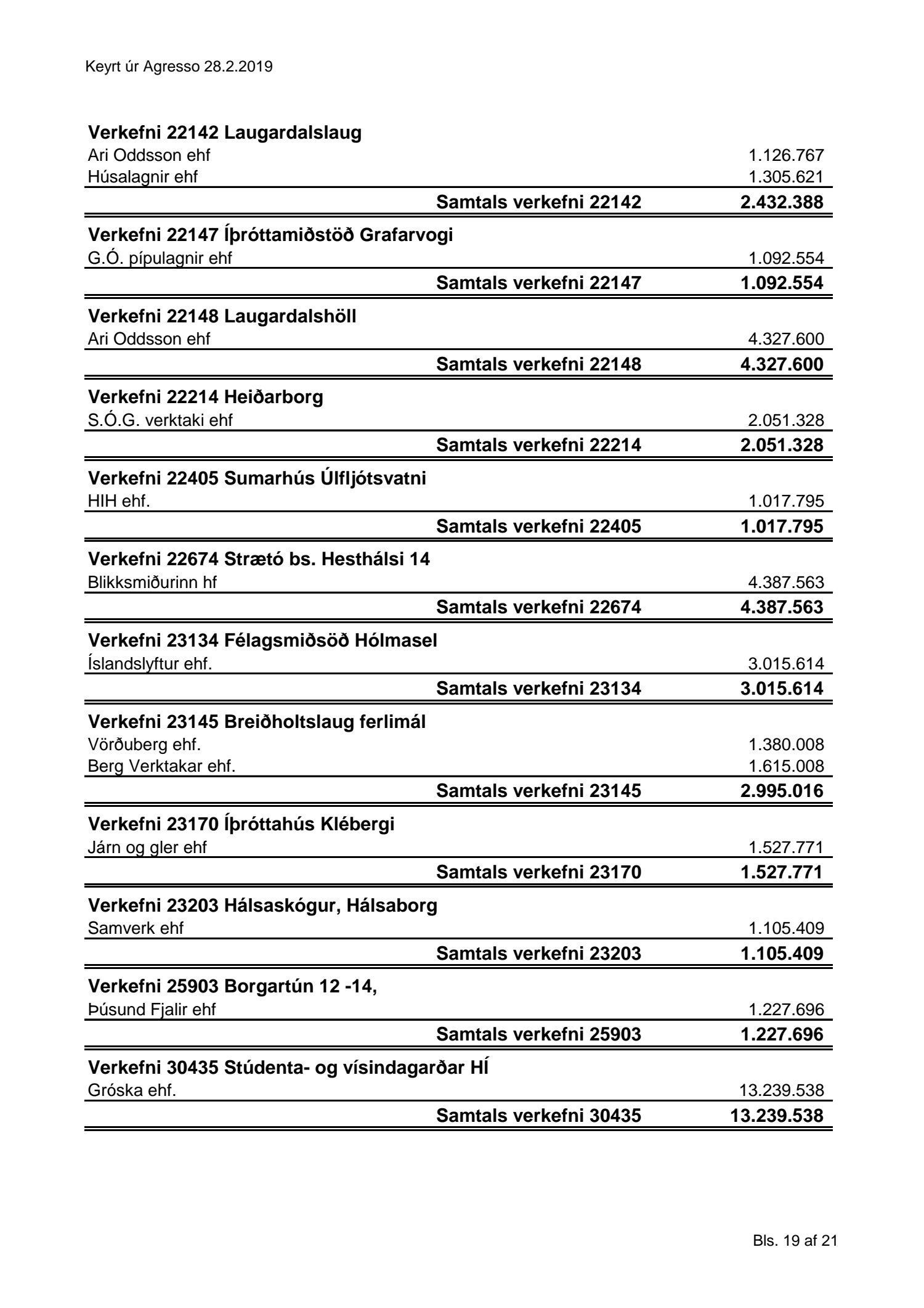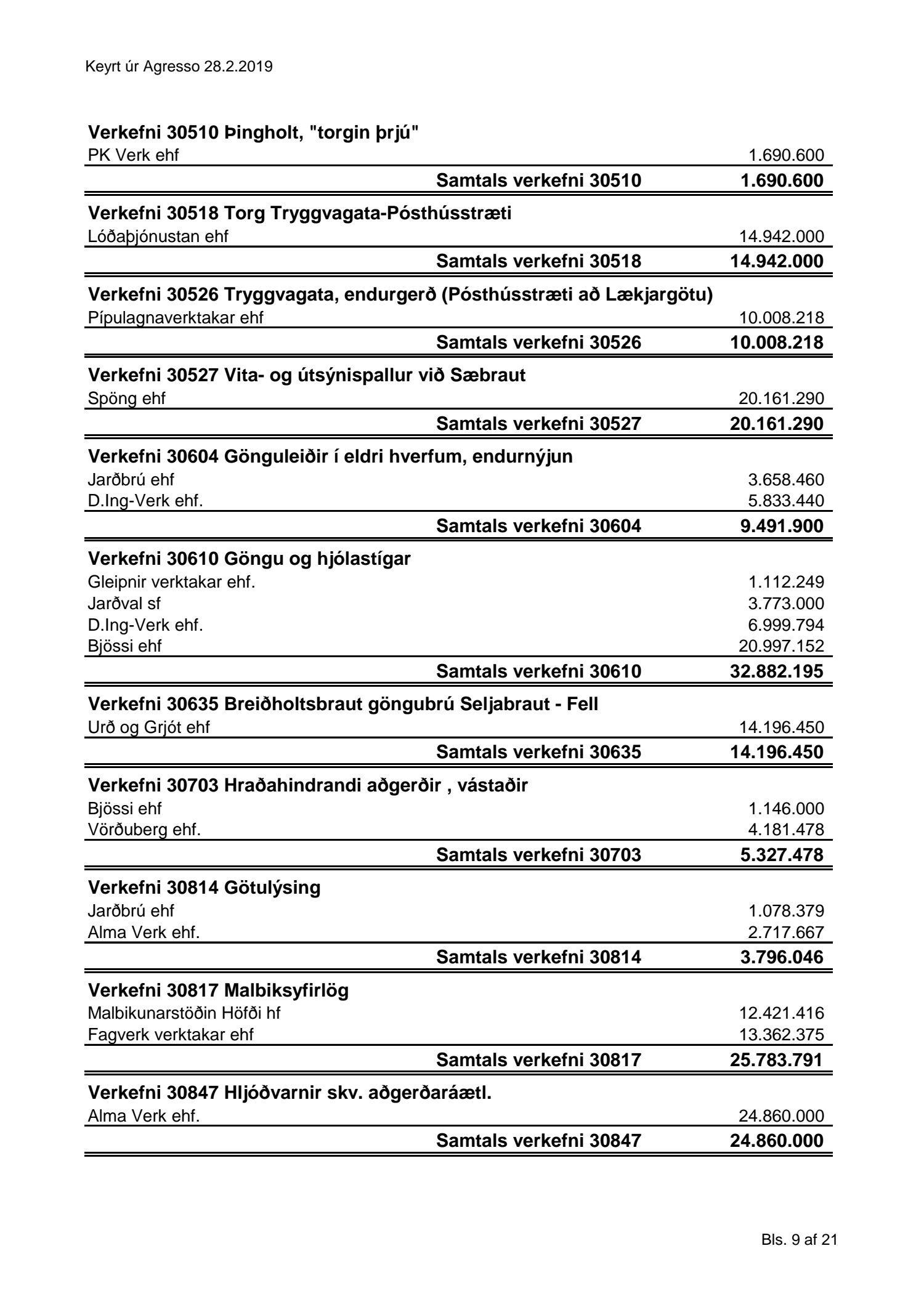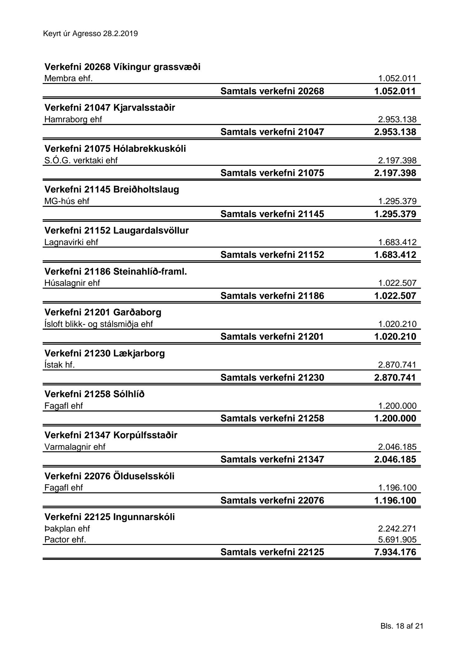 Umhverfis- og skipulagssvið, yfirlit yfir innkaup