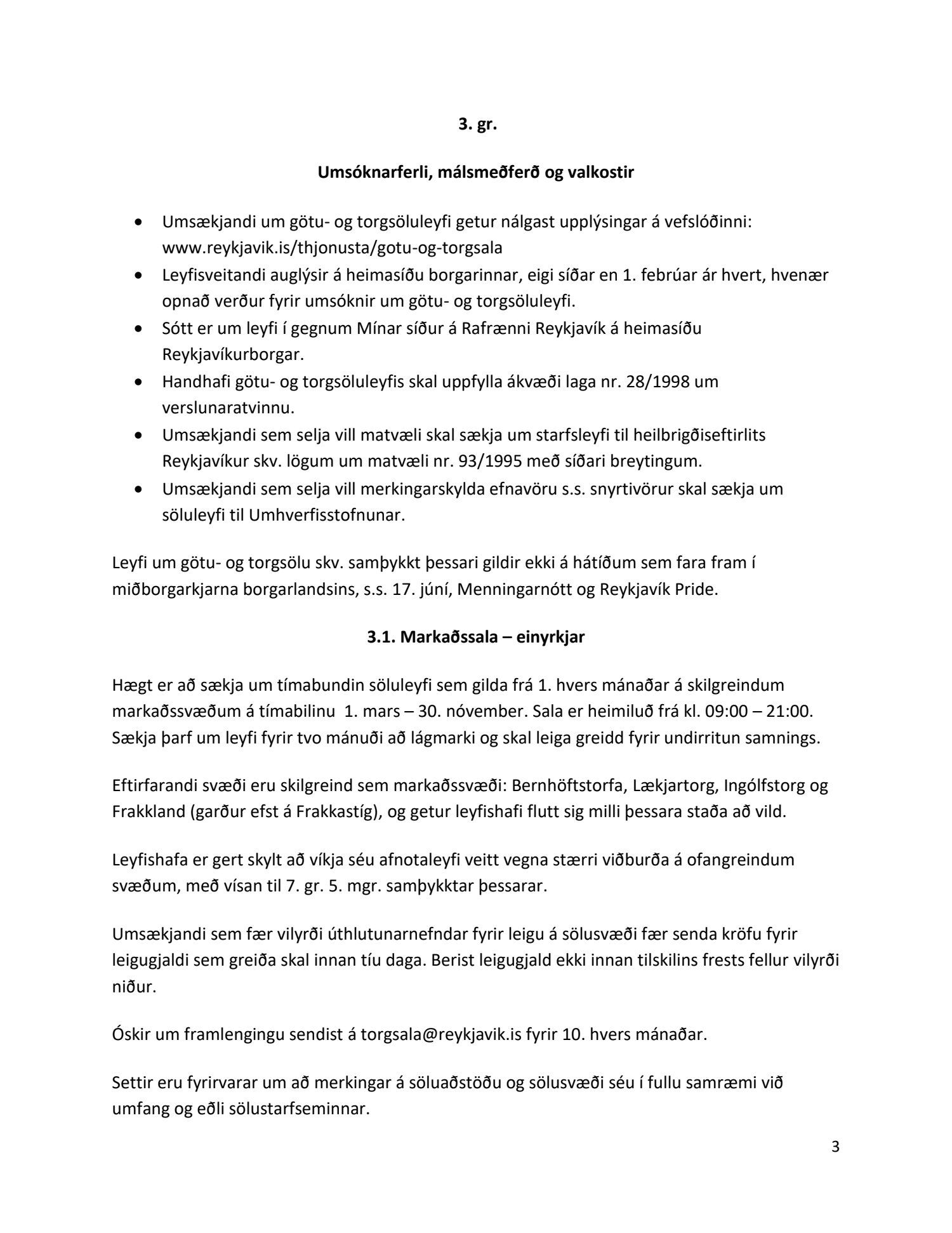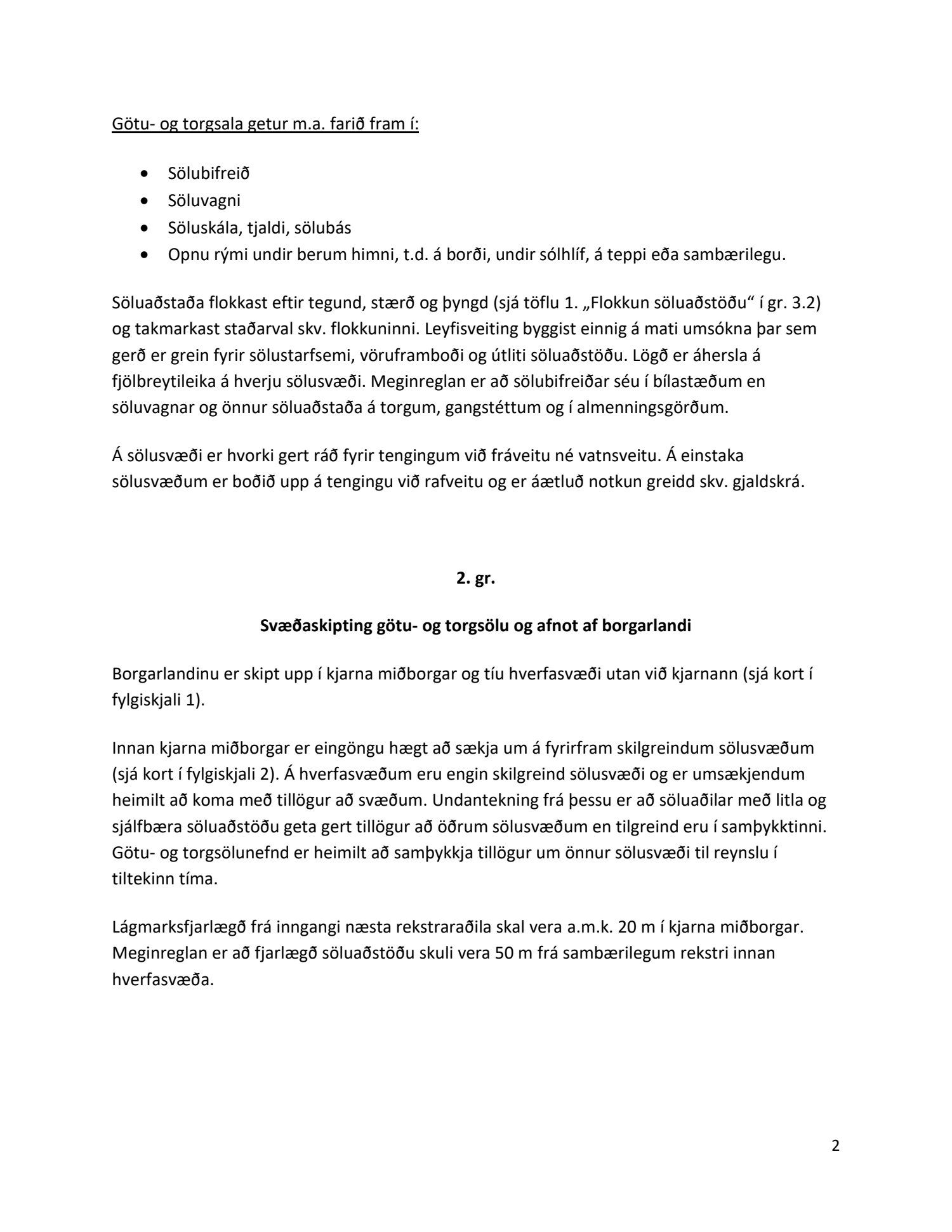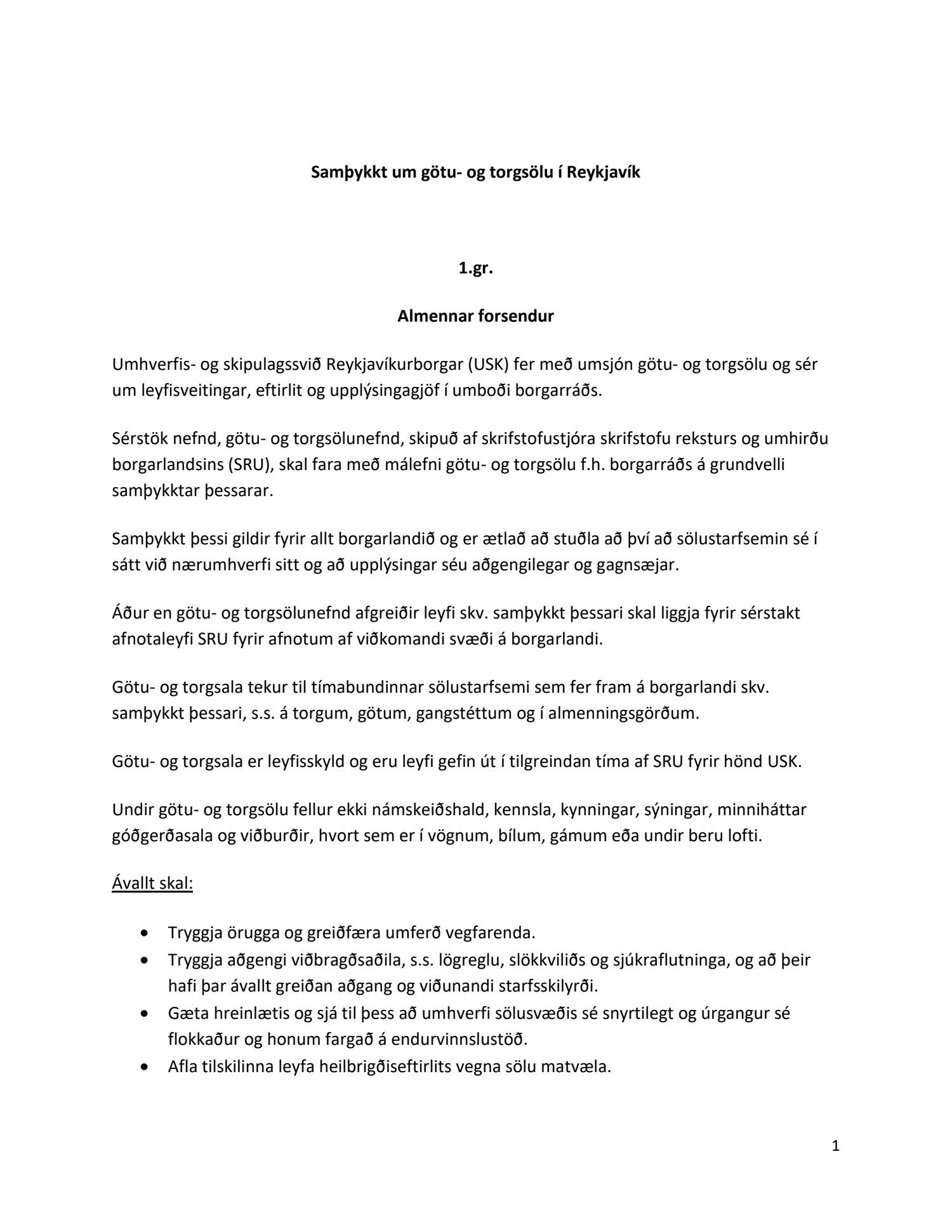Endurskoðuð samþykkt um götu- og torgsölu