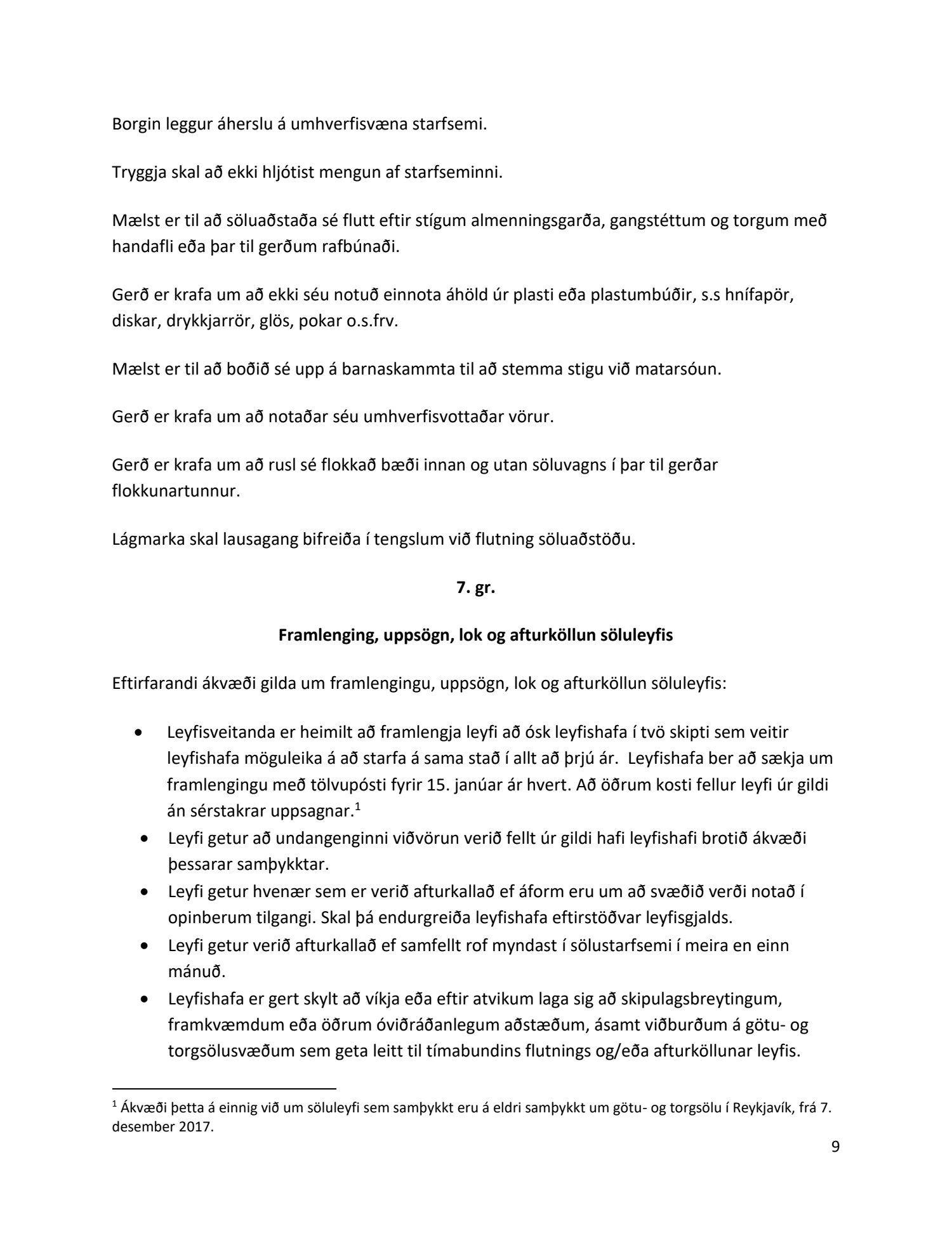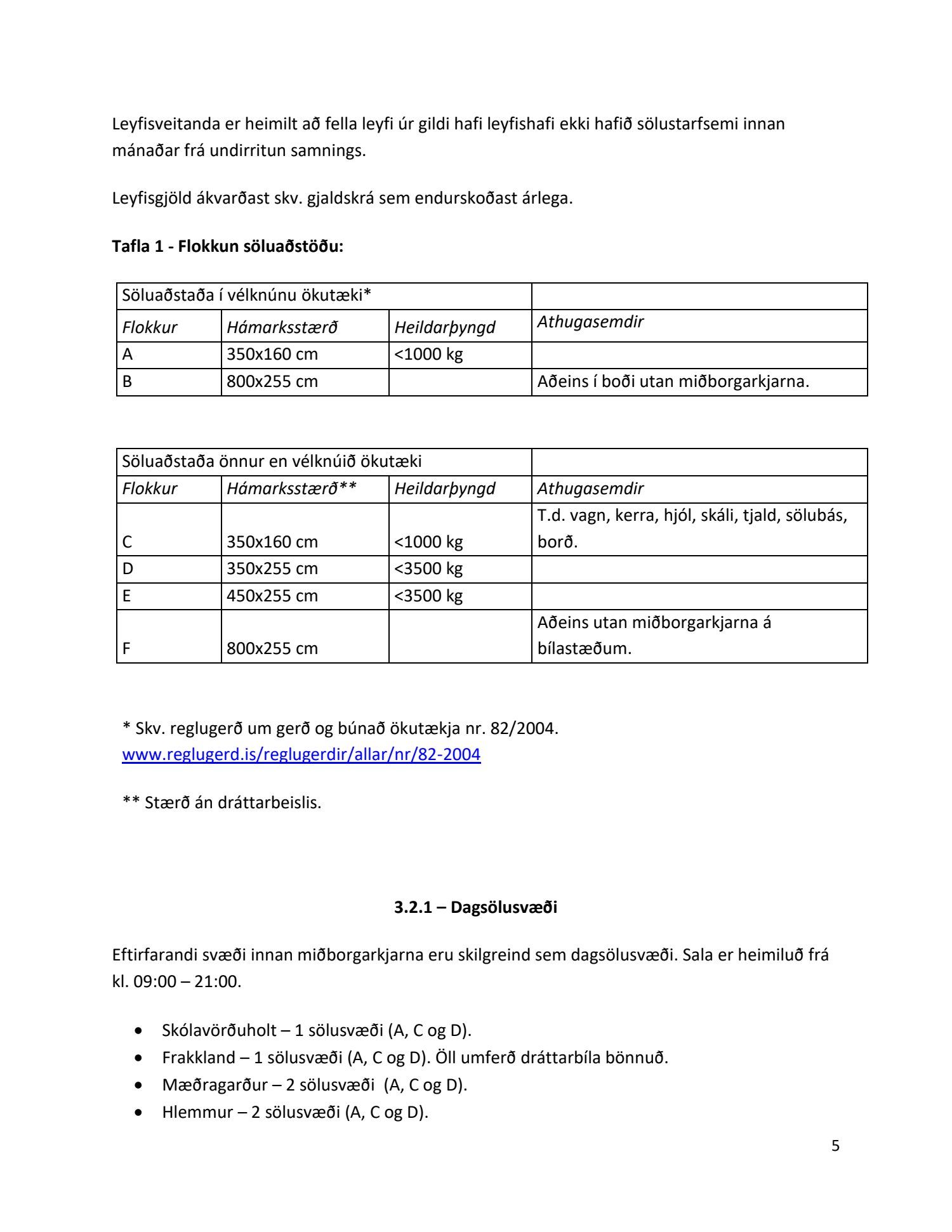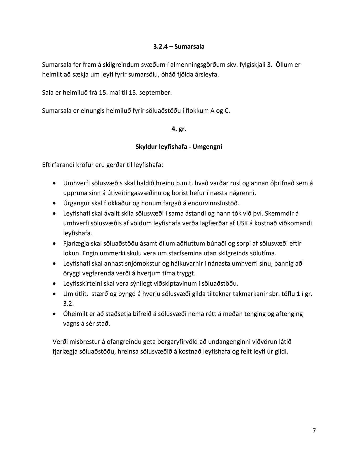 Endurskoðuð samþykkt um götu- og torgsölu