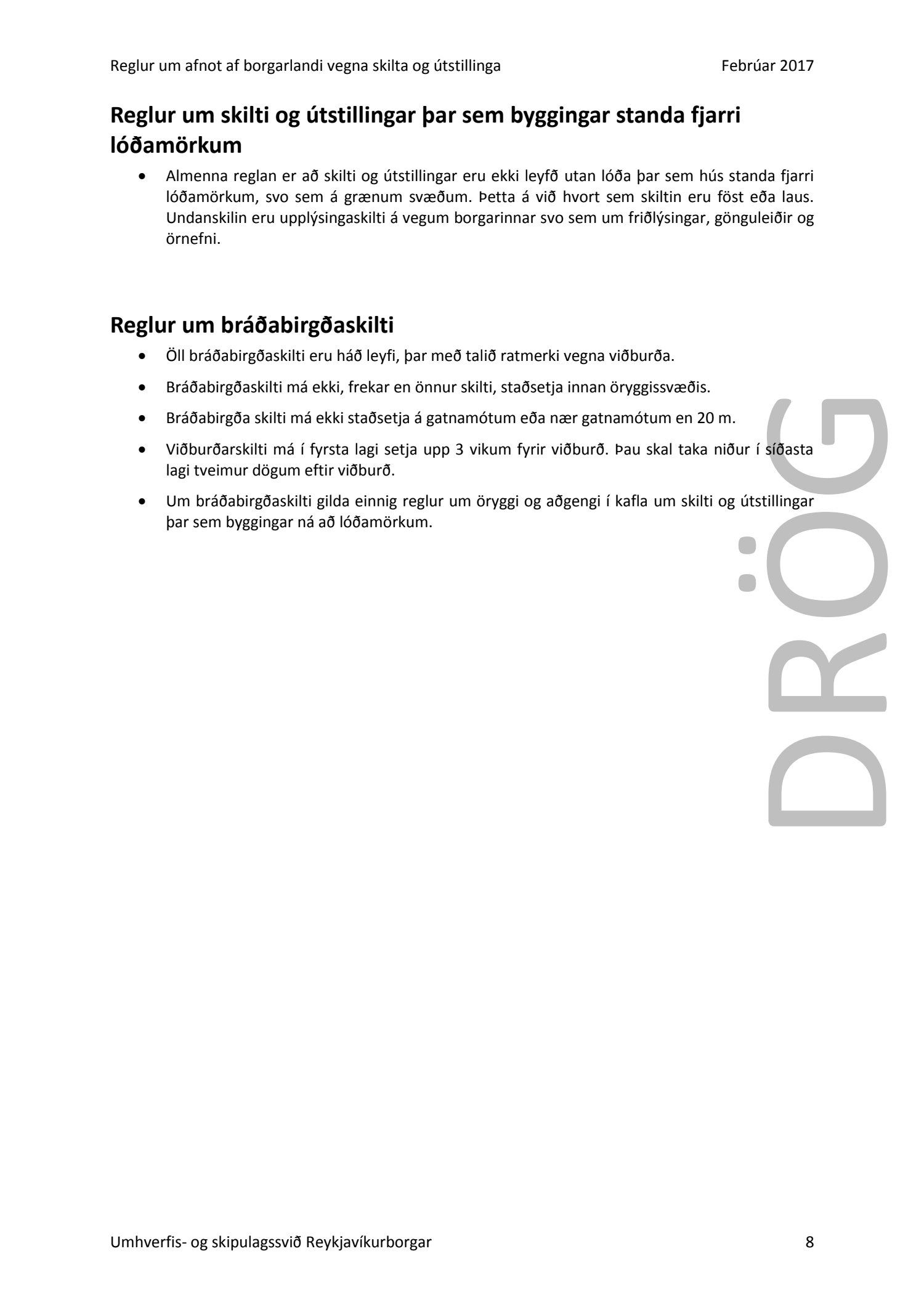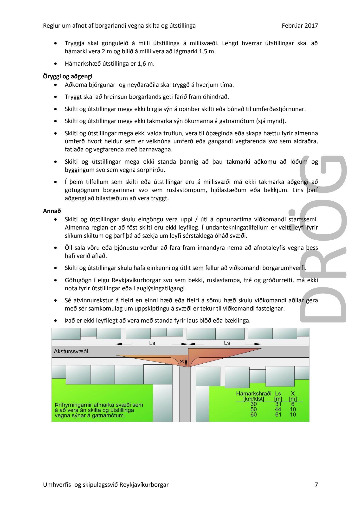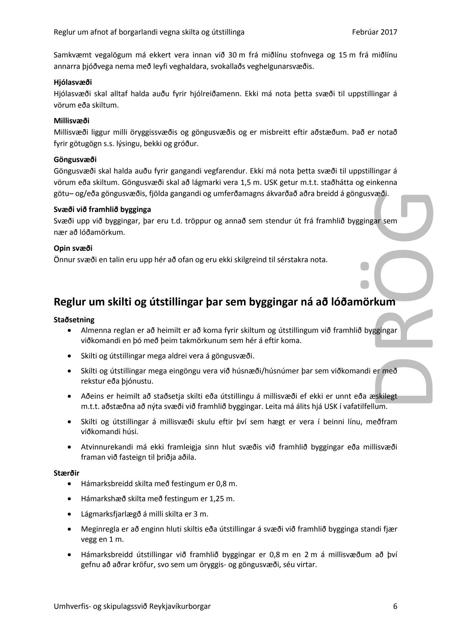 Afnot af borgarlandi, Reglur vegna skilta og útstillinga.