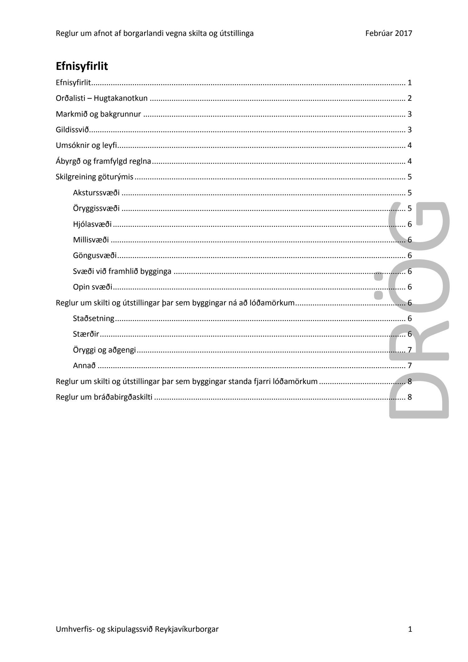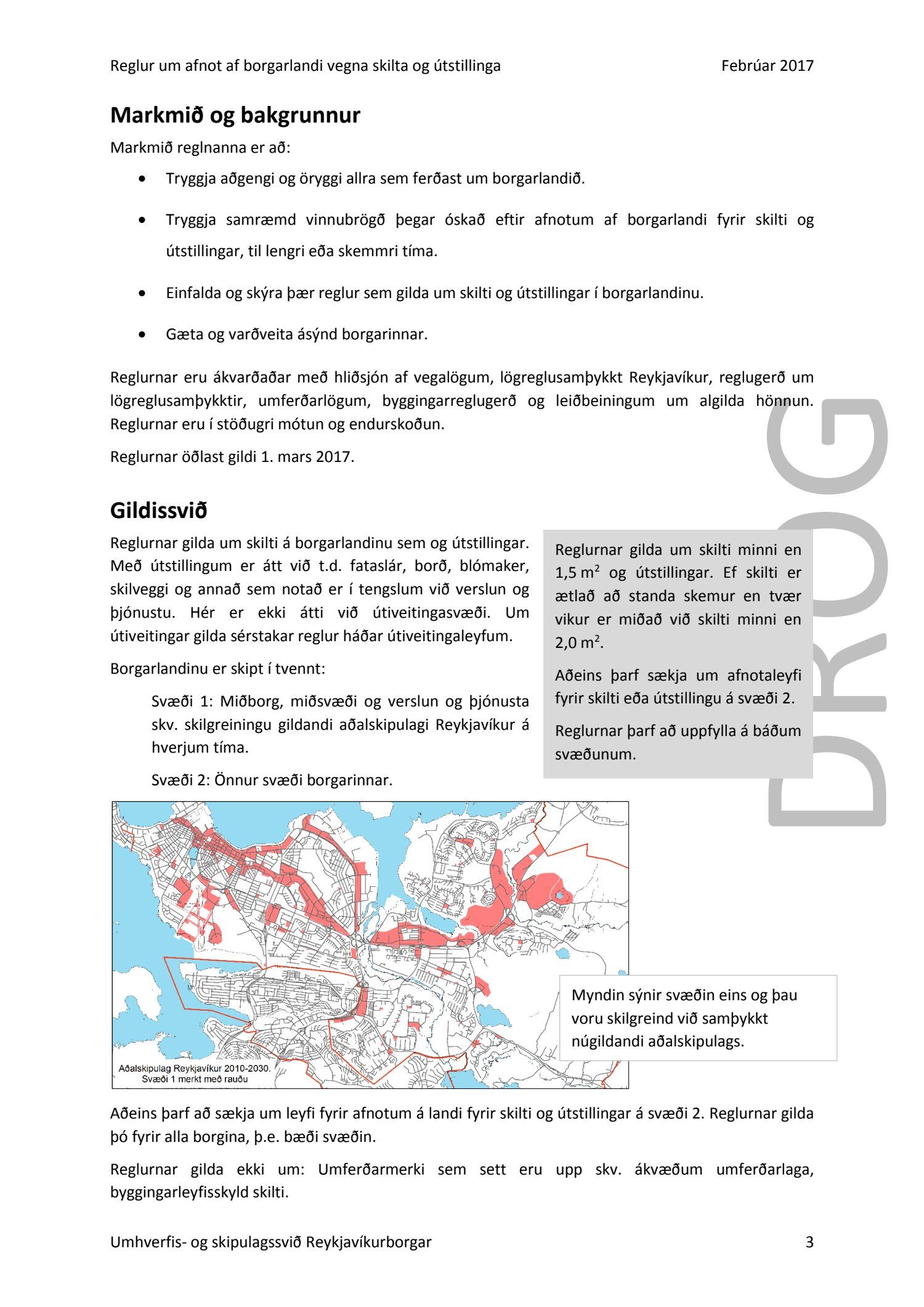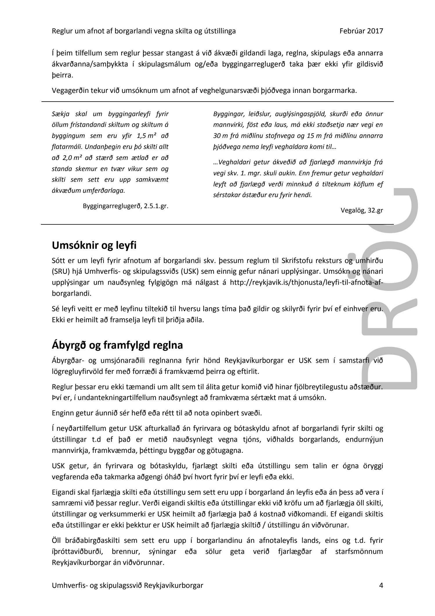 Afnot af borgarlandi, Reglur vegna skilta og útstillinga.