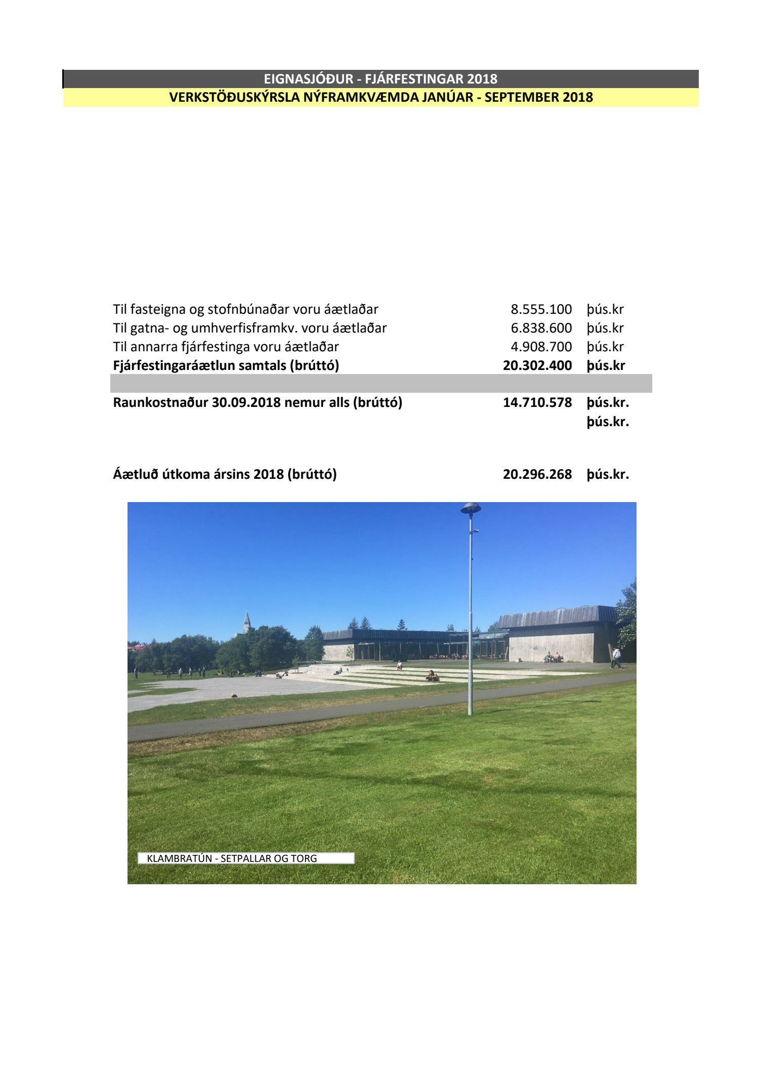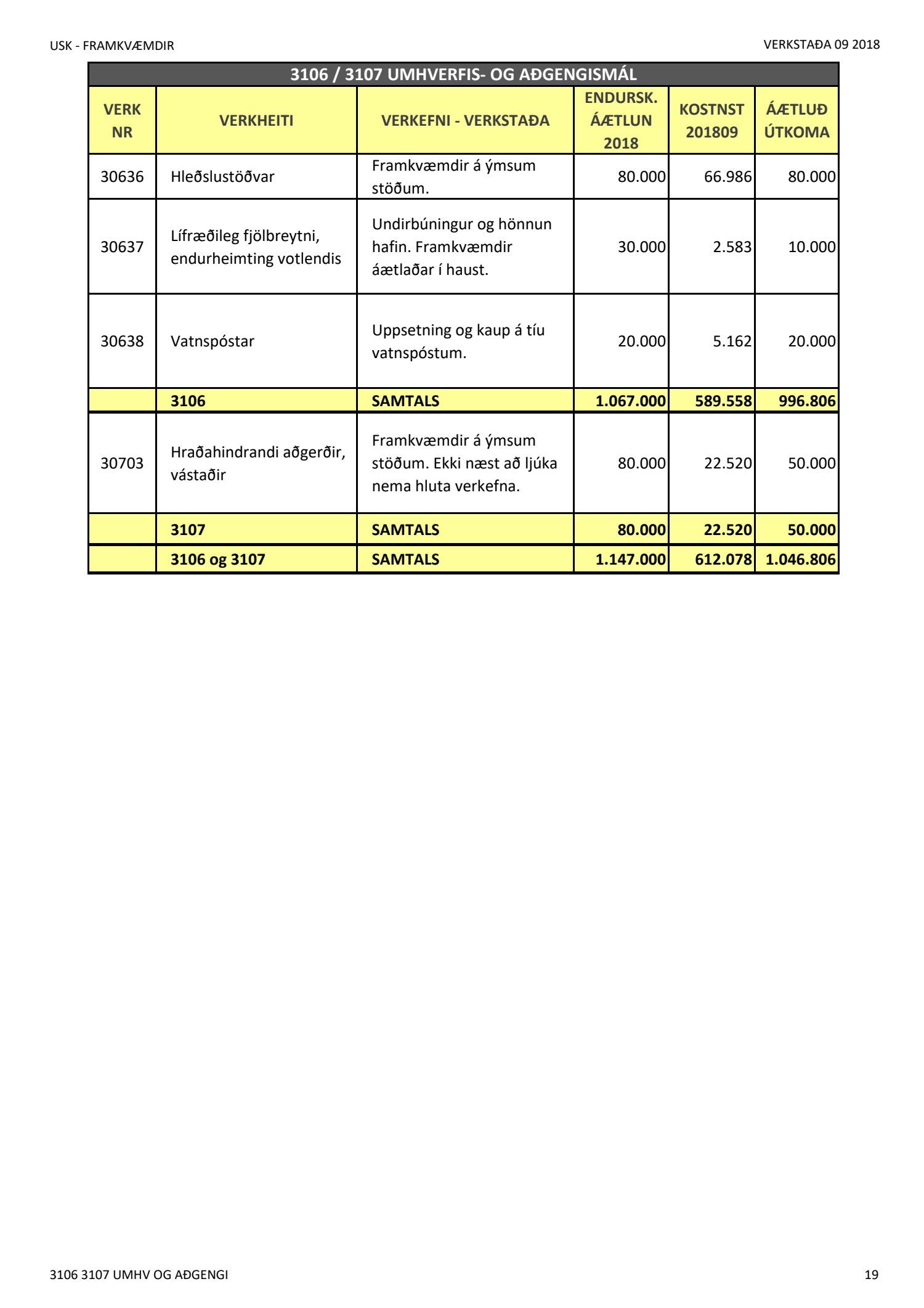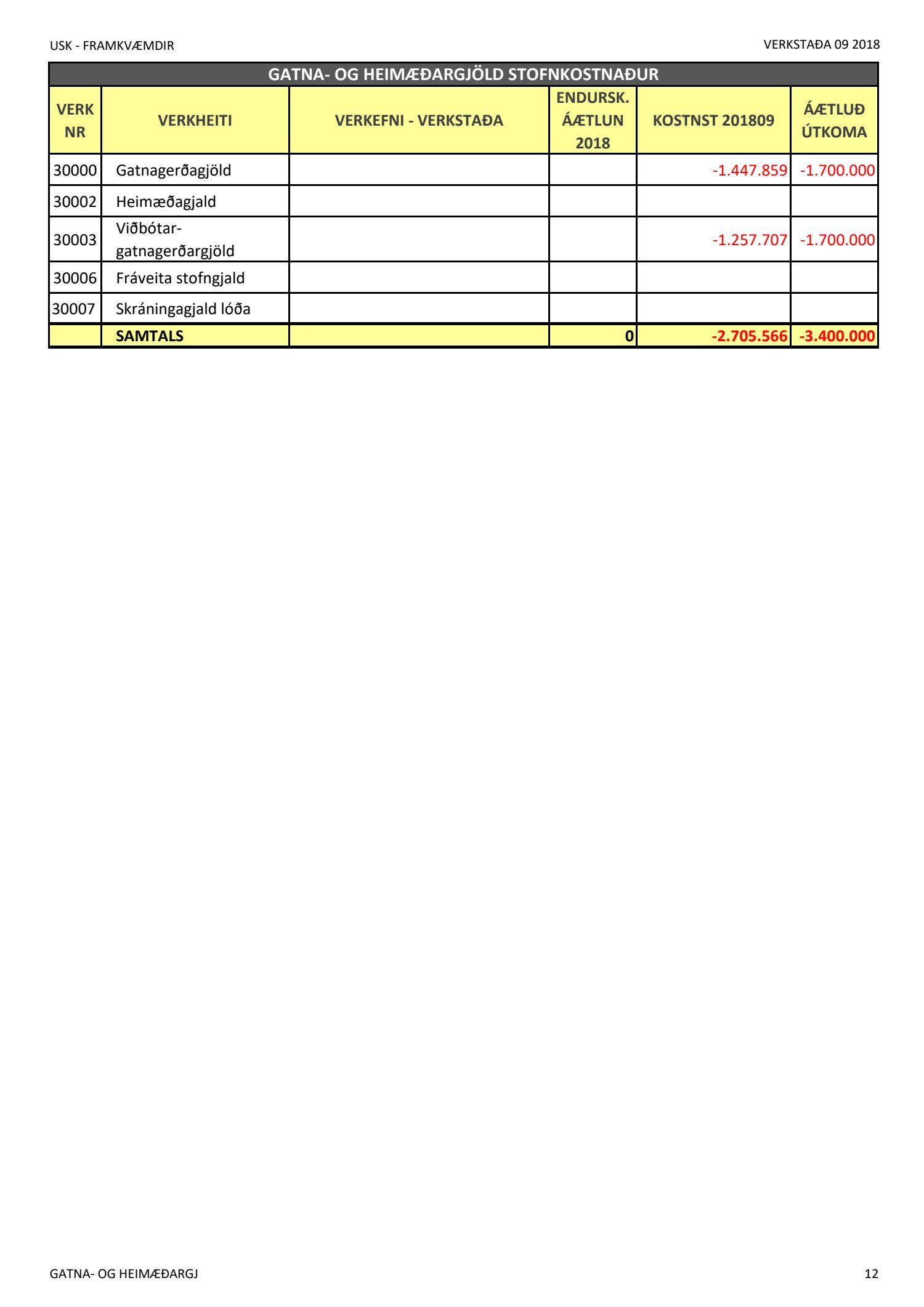 Níu mánaða verkstöðuskýrsla janúar til september 2018