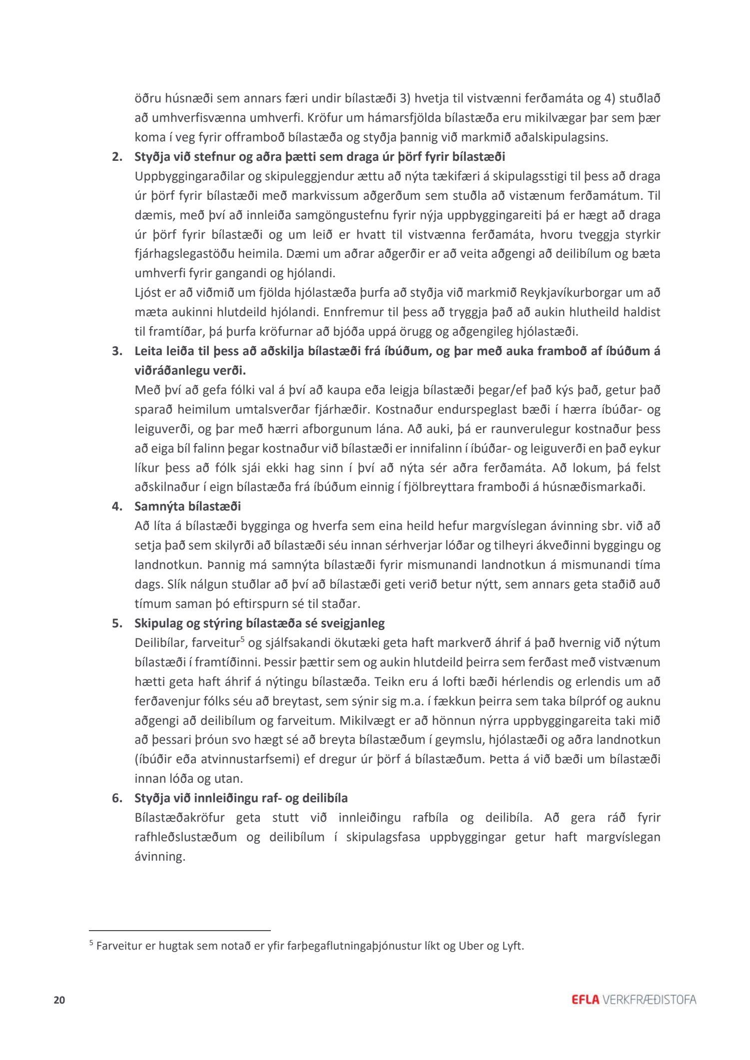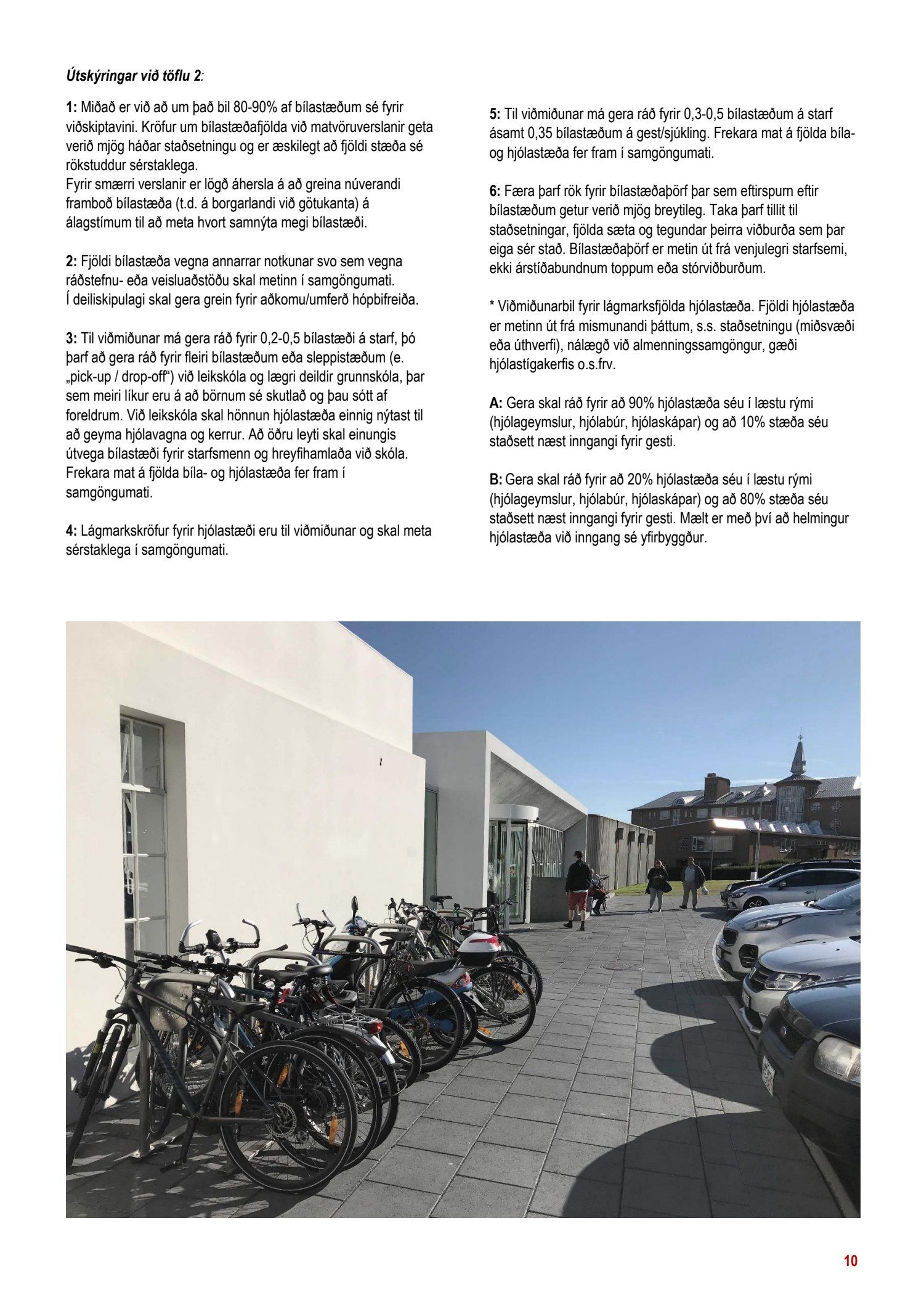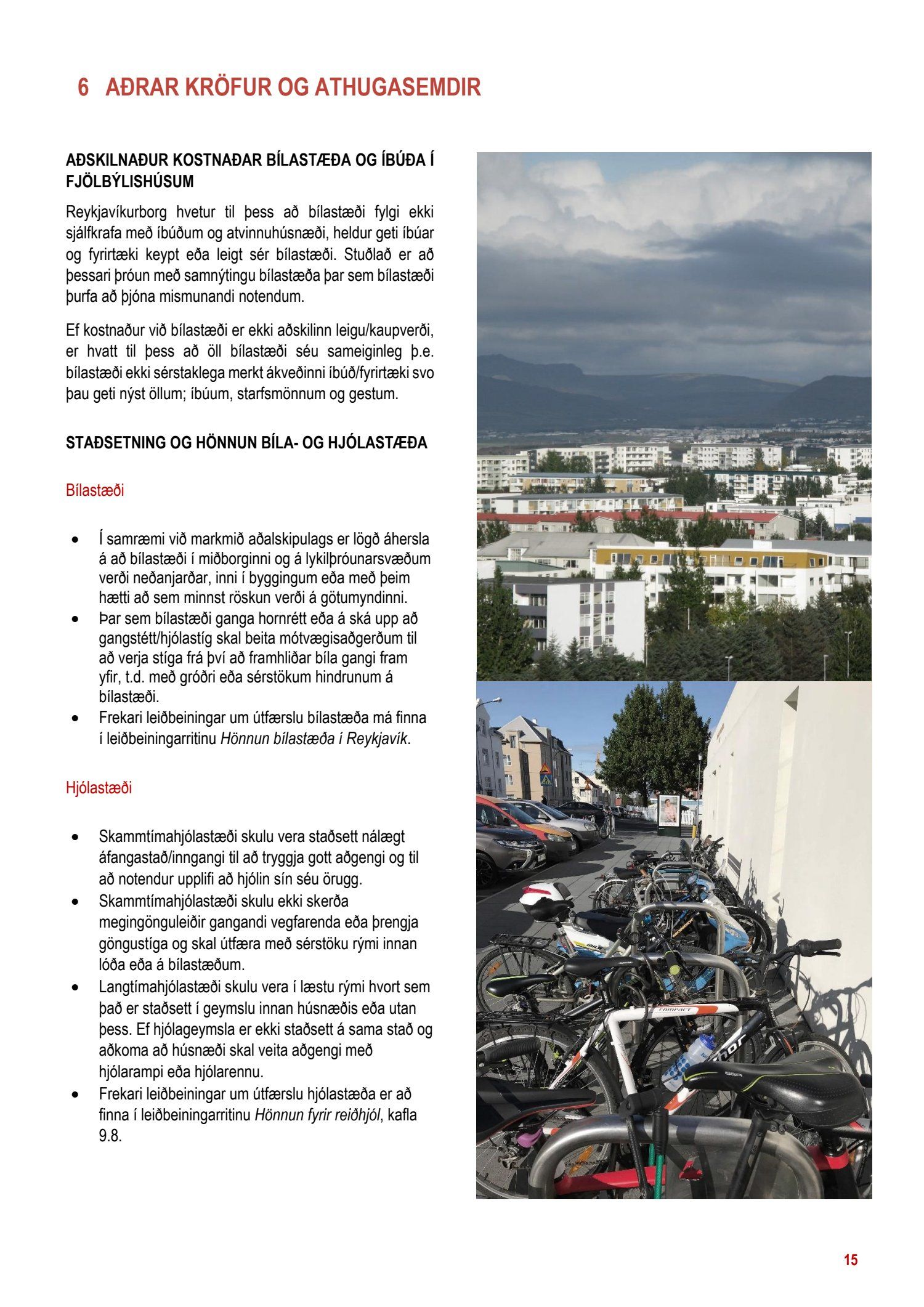 Fulltrúar Sjálfstæðisflokksins Katrín Atladóttir, Ólafur Kr. Guðmundsson og Valgerður Sigurðardóttir bóka: „Fulltrúi Sjálfstæðisflokks í stýrihóp um bíla- og hjólastæðastefnu telur að það hefði verið heppilegra að afgreiða bílastæðastefnu Reykjavíkurborgar með þeim hætti að tekin væri afstaða til stefnunnar í heild sinni. Afgreiðsla málsins er þannig háttað nú að ekki hefur verið tekin afstaða til m.a. bílastæðasjóðs eða íbúakorta. Fulltrúar Sjálfstæðisflokks munu því sitja hjá við afgreiðslu málsins þar til stefnan hefur verið kláruð í heild sinni.“