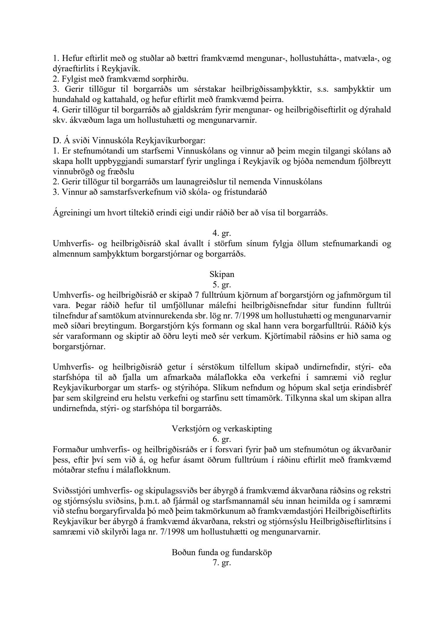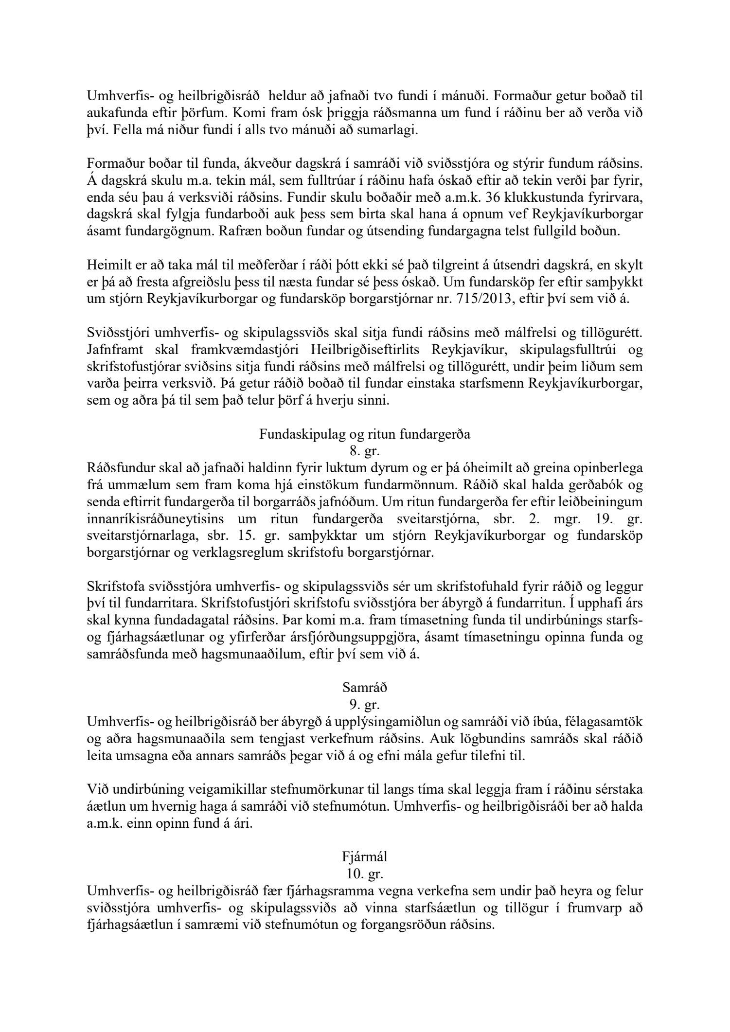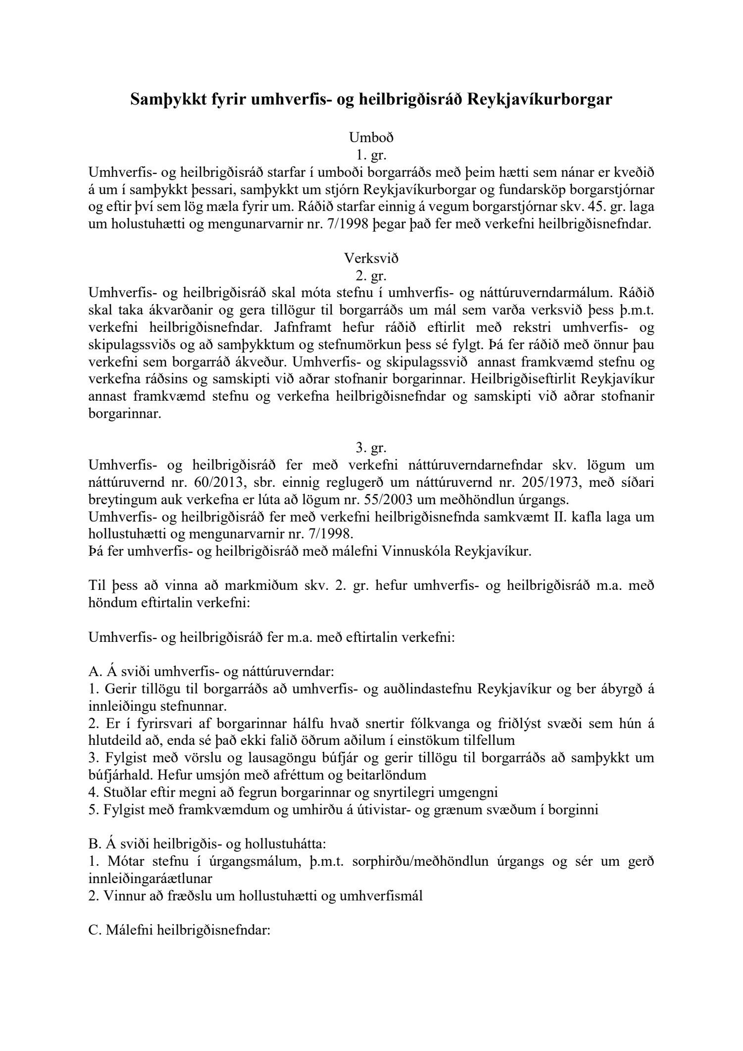 Lagðar fram nýjar samþykktir fyrir umhverfis- og heilbrigðisráð.