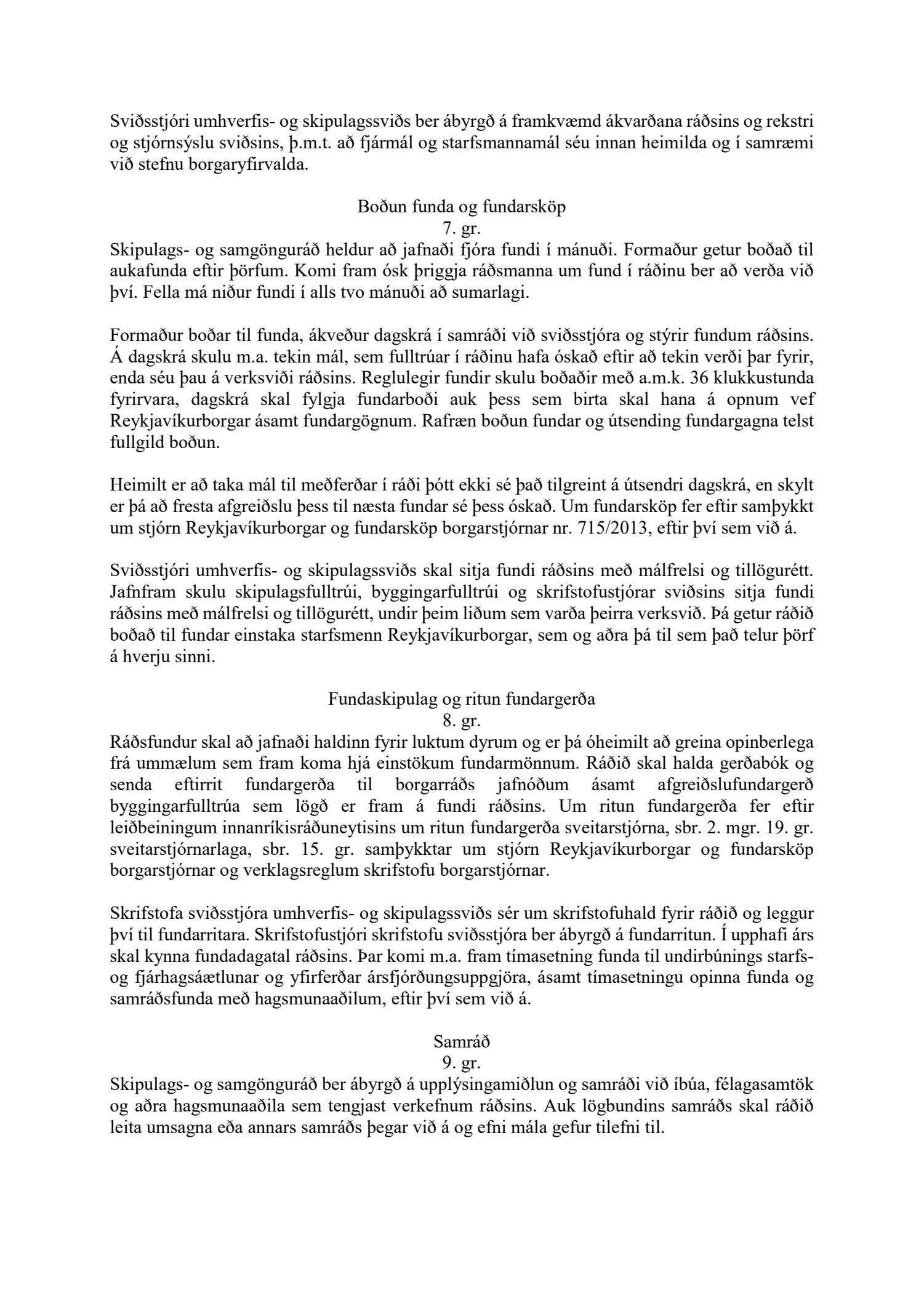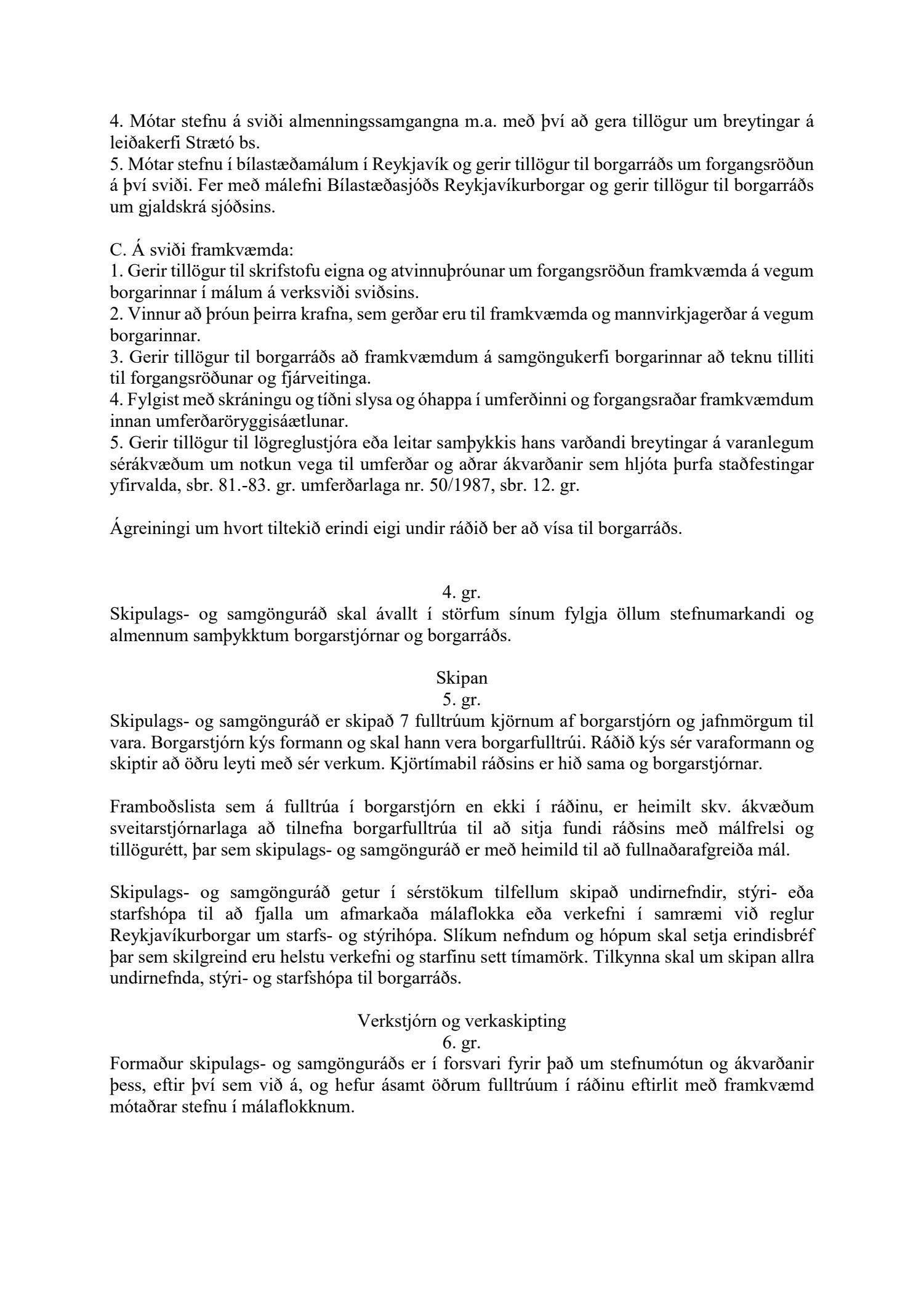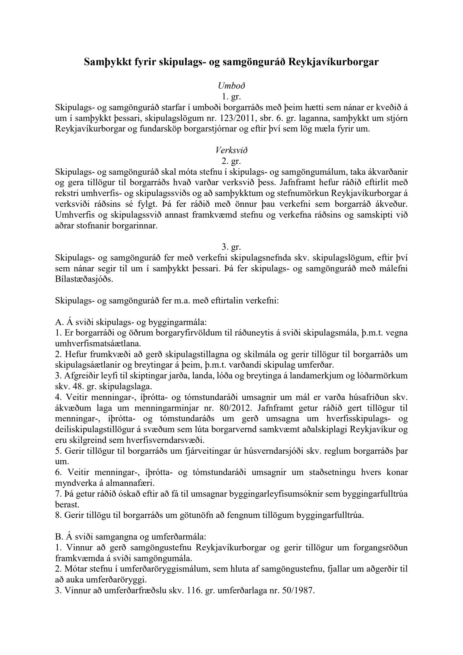 Lagðar fram nýjar samþykktir fyrir skipulags- og samgönguráð Reykjavíkur.