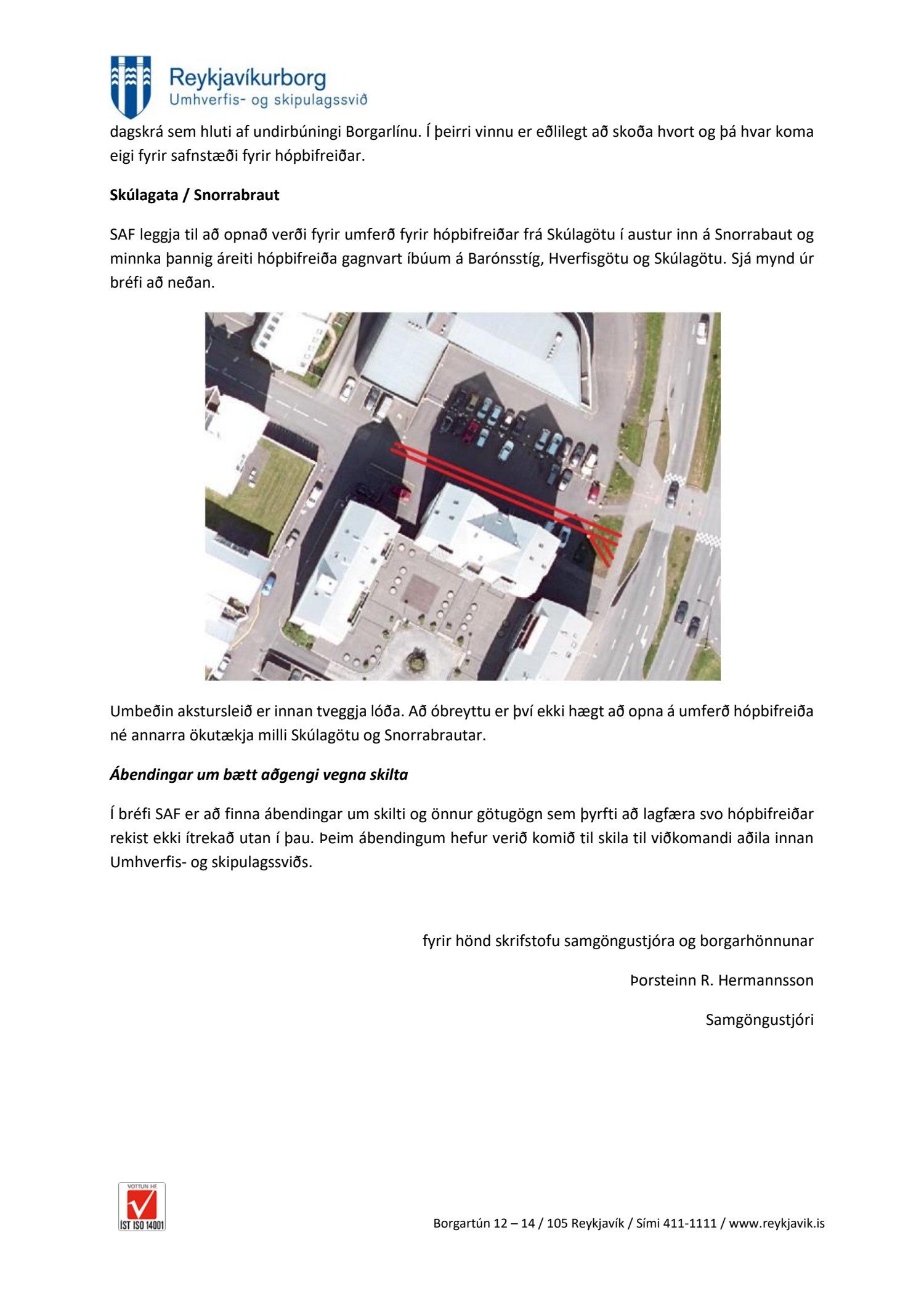 Umsögn umhverfis- og skipulagssviðs, samgöngustjóra dags. 14. mars 2019 samþykkt.