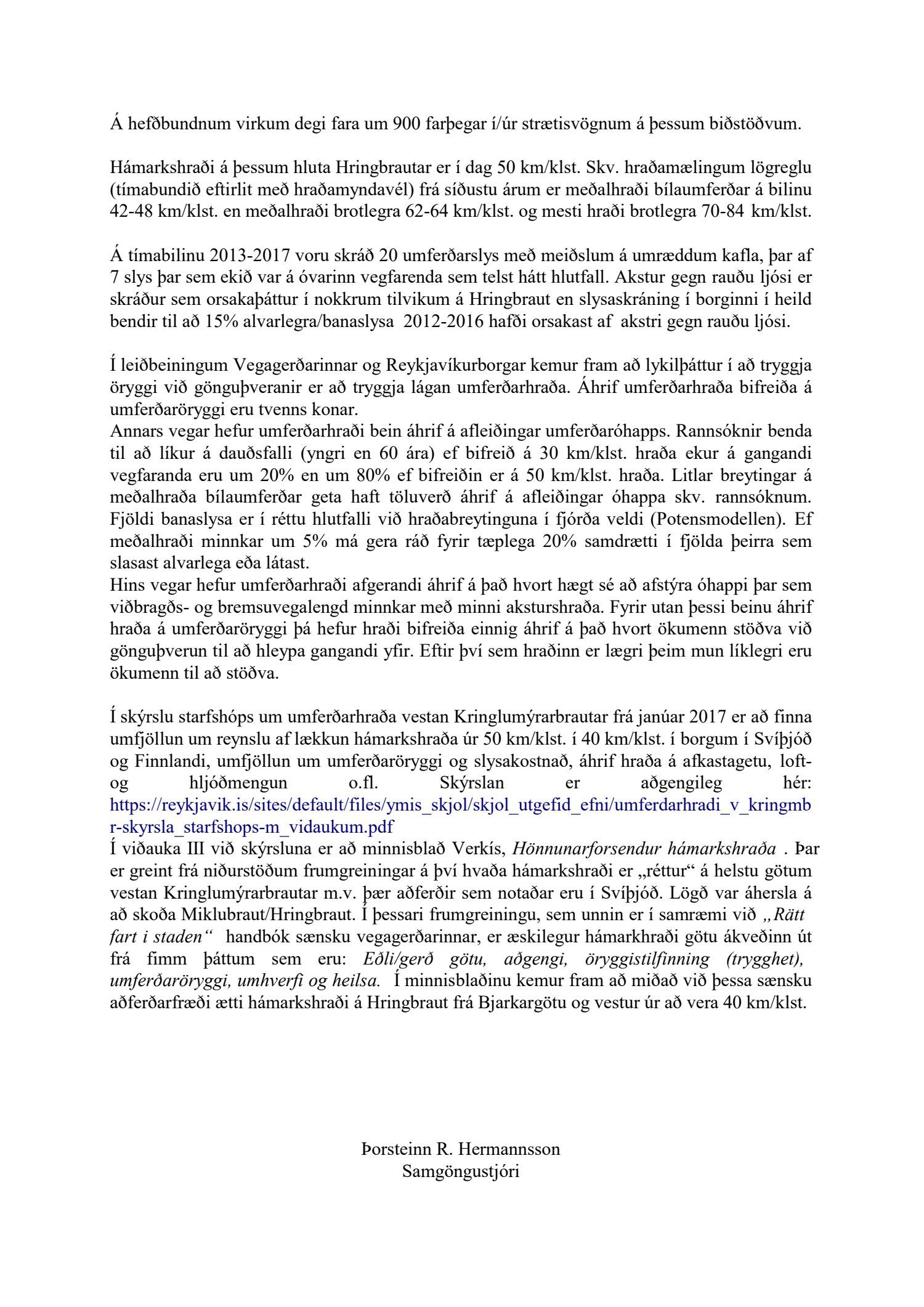 „Borgarfulltrúar Sjálfstæðisflokksins leggja ríka áherslu á bætt umferðaröryggismál í hverfum borgarinnar. Ennfremur að borgin framfylgi ákvörðunum sínum með markvissum hætti.