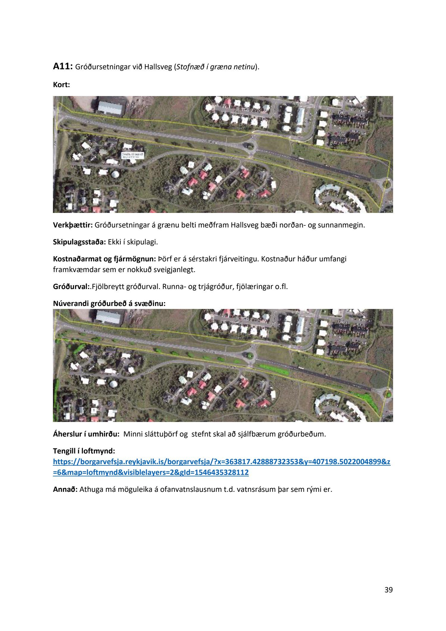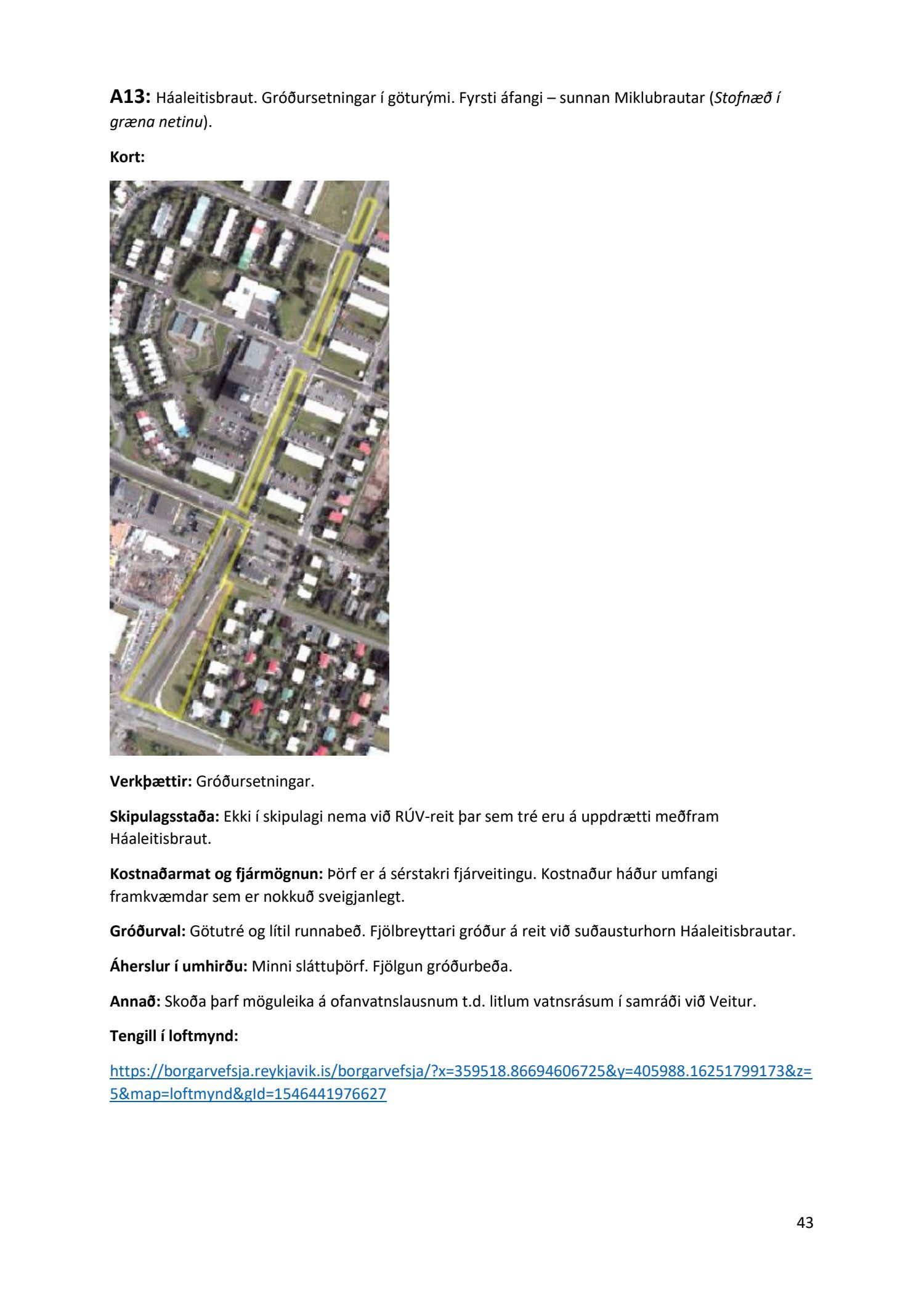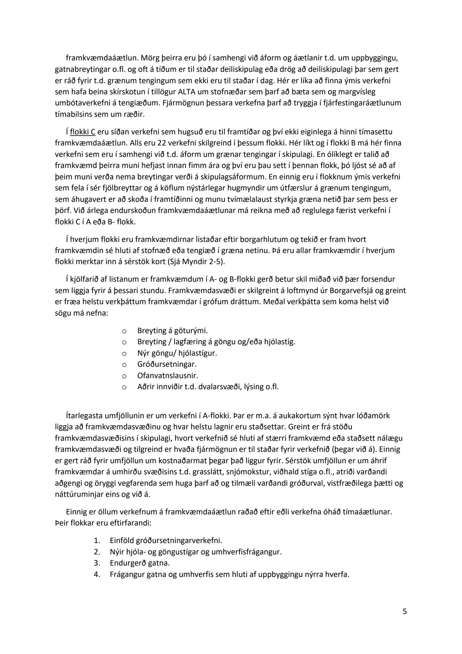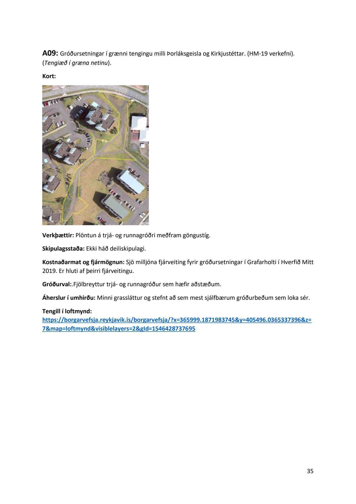 Lykilatriði í innleiðingu stefnu Aðalskipulags Reykjavíkur um hágæða Grænt net, er að farið sé í nauðsynlegar framkvæmdir til að styrkja netið með áherslu á að fjölga og bæta grænar tengingar. Það eru í sjálfu sér ágætis markmið ef ekki er á sama tíma byggt á hverjum einasta græna bletti sem fyrirfinnst í borginni og gengið freklega á náttúruperlur í borgarlandinu með byggingum eins og til stendur að reisa í Elliðaárdalnum. Þær framkvæmdir sem fyrirhugaðar eru þar, sýna svo ekki verður um villst, nauðsyn þess að friðlýsa Elliðaárdalinn. Þá hefur sú þéttingarstefna sem unnið hefur verið eftir á undanförnum árum, þar sem mesta þéttingin á sér stað miðsvæðis, komið niður á opnum grænum svæðum og einna verst vestan Snorrabrautar þar sem fá græn svæði eru eftir til útivistar, eins og Hljómskálagarðurinn og strandlengjan frá Skerjafirði að Ægisíðu. Það verður þó að teljast jákvætt að framkvæmdaáætlun Græna netsins mun fela í sér fjölgun á skilgreindum framkvæmdum á þeim opnu svæðum sem þó eru enn til staðar í borginni. Græna verkefnið felur í sér umhverfisfrágang á 17 nýjum göngu- og hjólastígum. Mikilvægt er að litið verði til umhverfisvænni lausna til að ryðja stígana á veturna, svo sem með upphitun svo ekki þurfi að ryðja, sanda og salta þá.