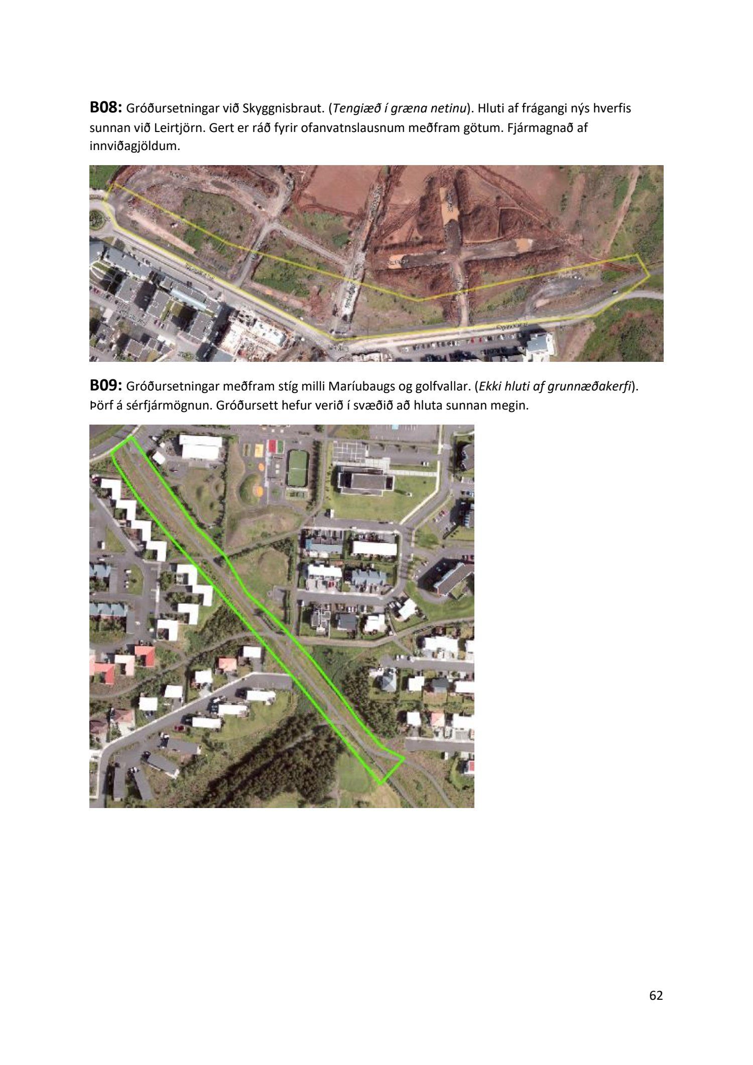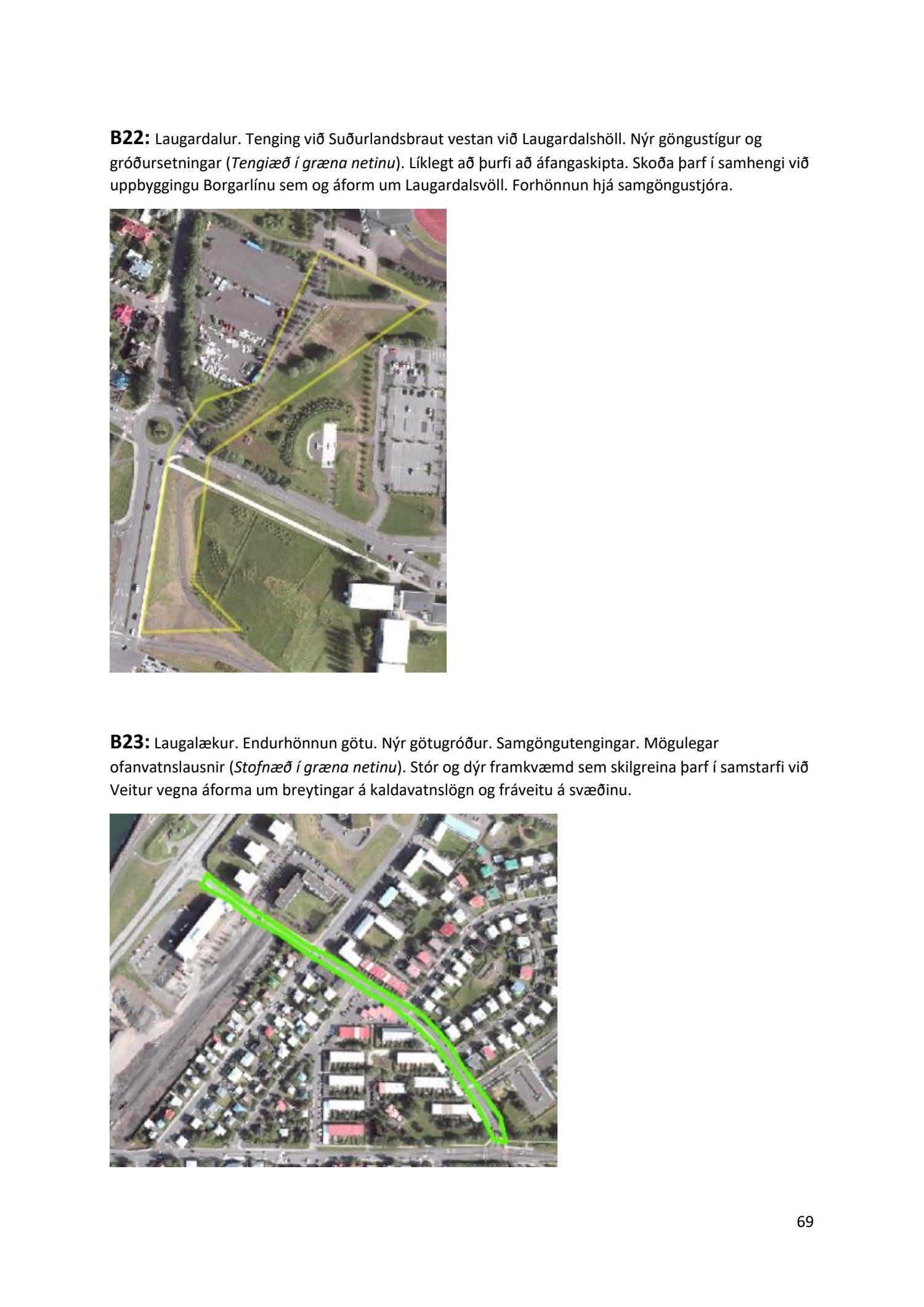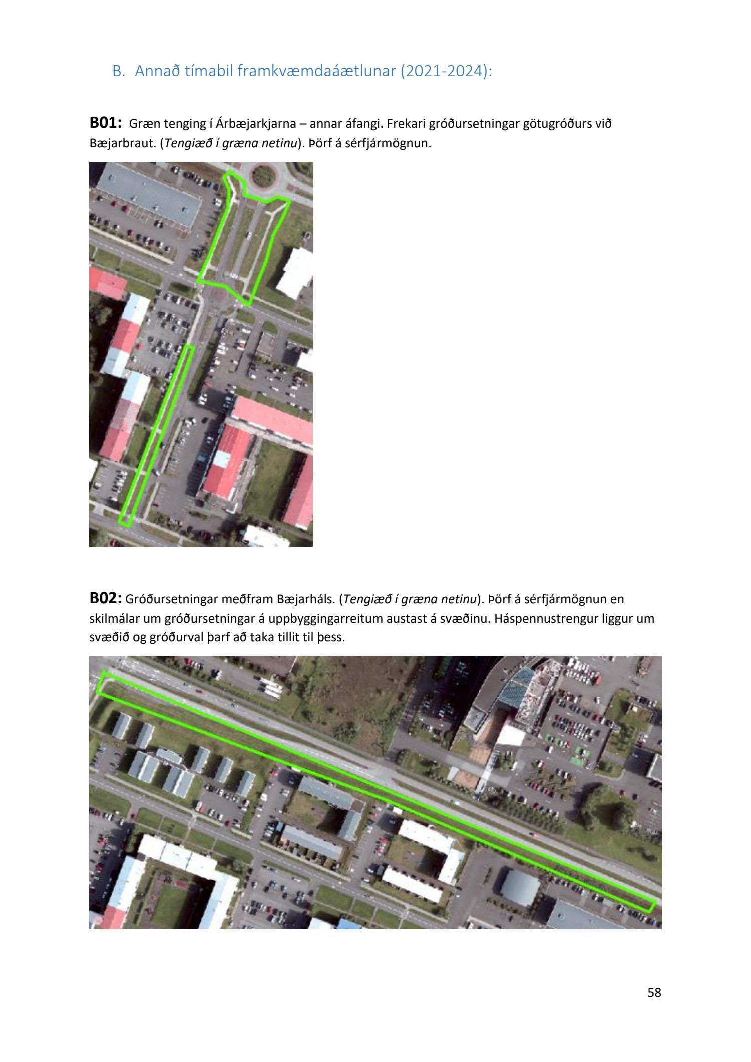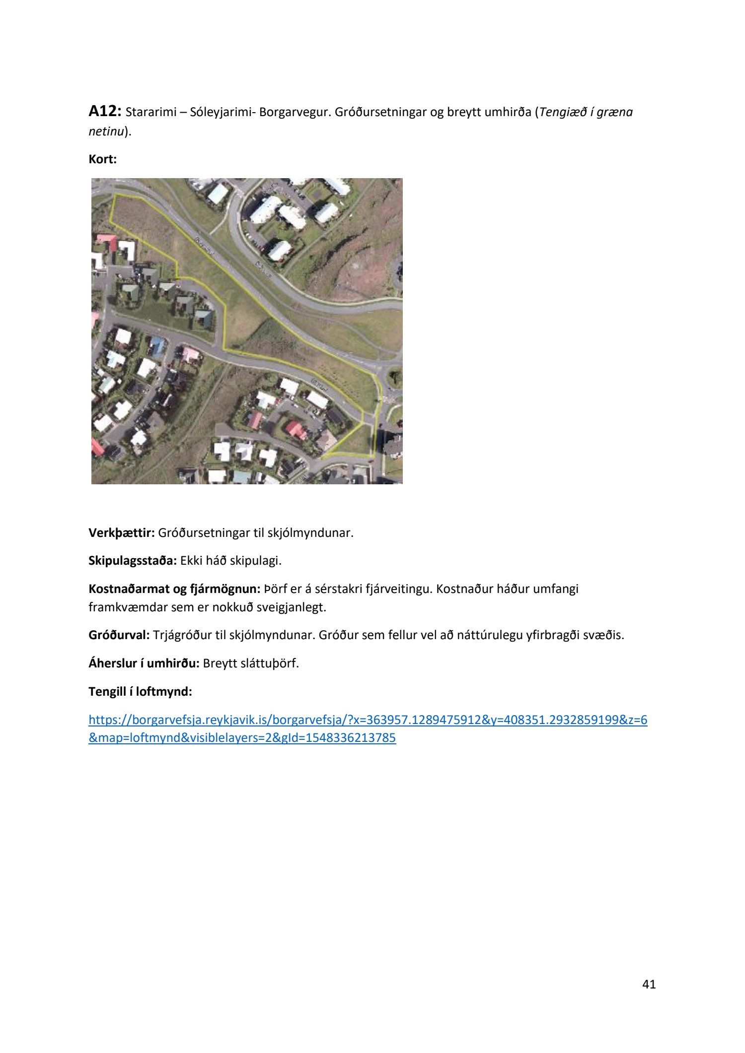 Lykilatriði í innleiðingu stefnu Aðalskipulags Reykjavíkur um hágæða Grænt net, er að farið sé í nauðsynlegar framkvæmdir til að styrkja netið með áherslu á að fjölga og bæta grænar tengingar. Það eru í sjálfu sér ágætis markmið ef ekki er á sama tíma byggt á hverjum einasta græna bletti sem fyrirfinnst í borginni og gengið freklega á náttúruperlur í borgarlandinu með byggingum eins og til stendur að reisa í Elliðaárdalnum. Þær framkvæmdir sem fyrirhugaðar eru þar, sýna svo ekki verður um villst, nauðsyn þess að friðlýsa Elliðaárdalinn. Þá hefur sú þéttingarstefna sem unnið hefur verið eftir á undanförnum árum, þar sem mesta þéttingin á sér stað miðsvæðis, komið niður á opnum grænum svæðum og einna verst vestan Snorrabrautar þar sem fá græn svæði eru eftir til útivistar, eins og Hljómskálagarðurinn og strandlengjan frá Skerjafirði að Ægisíðu. Það verður þó að teljast jákvætt að framkvæmdaáætlun Græna netsins mun fela í sér fjölgun á skilgreindum framkvæmdum á þeim opnu svæðum sem þó eru enn til staðar í borginni. Græna verkefnið felur í sér umhverfisfrágang á 17 nýjum göngu- og hjólastígum. Mikilvægt er að litið verði til umhverfisvænni lausna til að ryðja stígana á veturna, svo sem með upphitun svo ekki þurfi að ryðja, sanda og salta þá.
