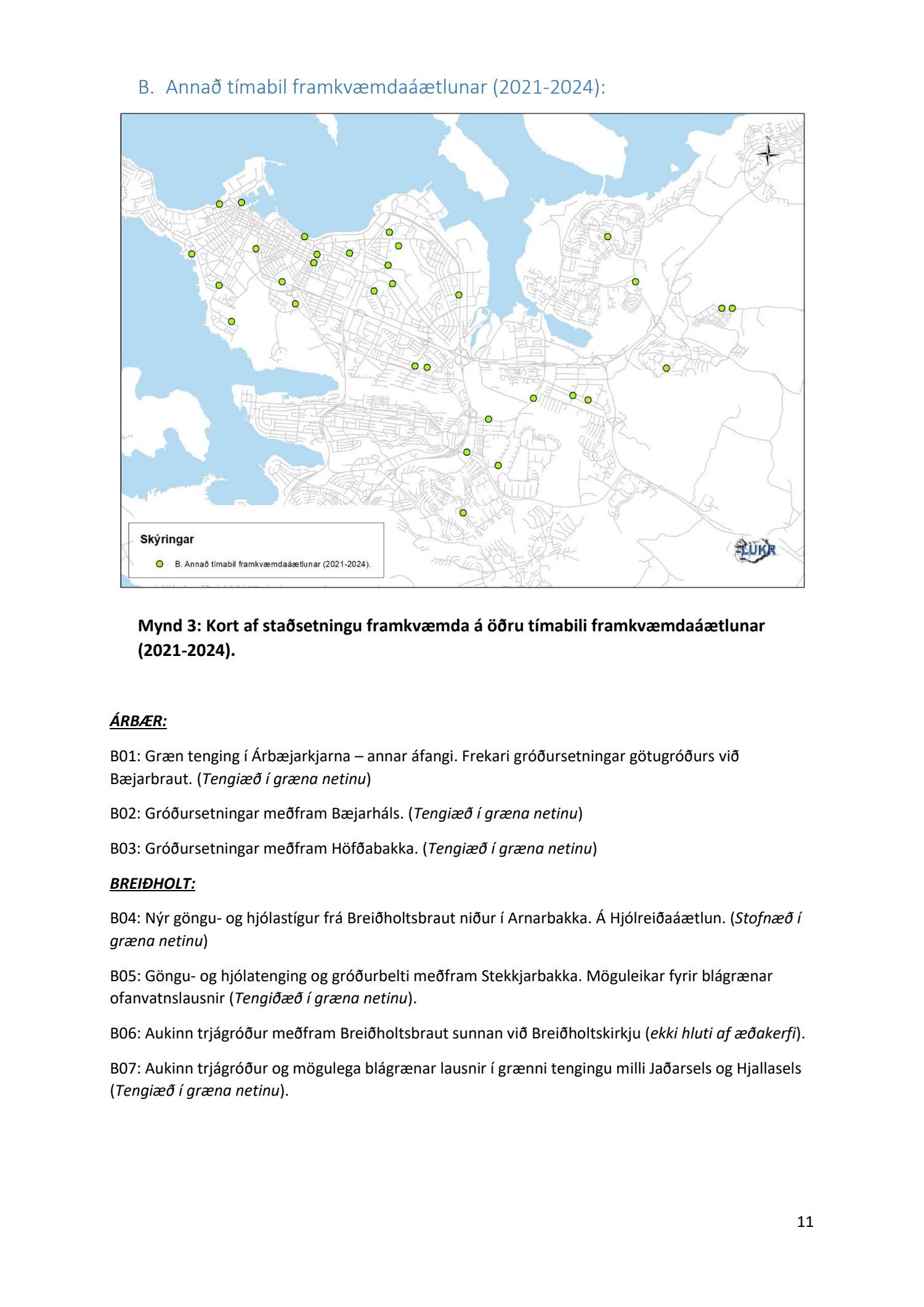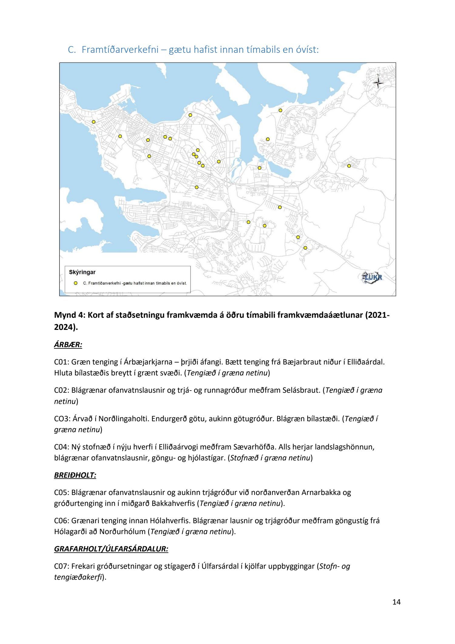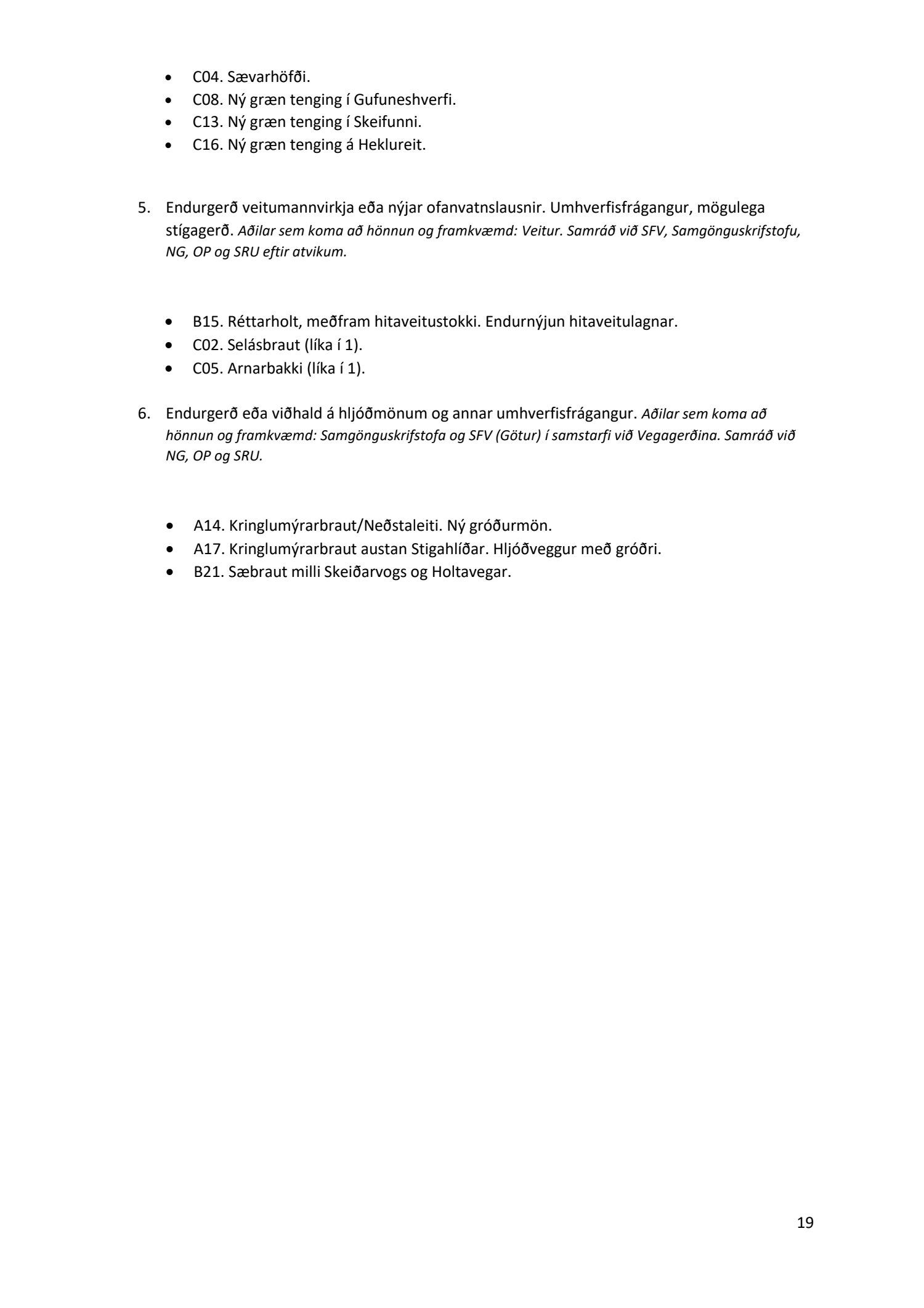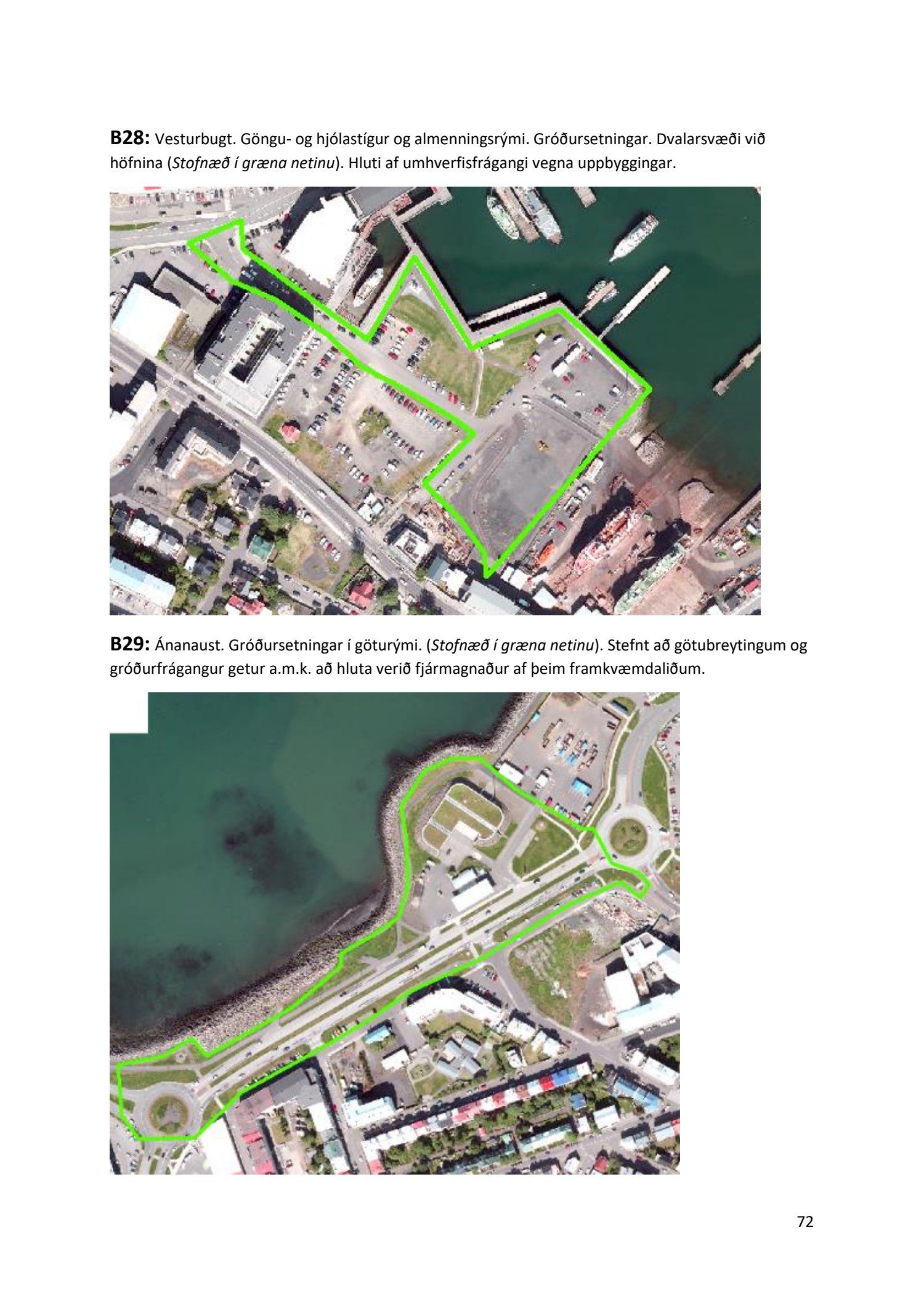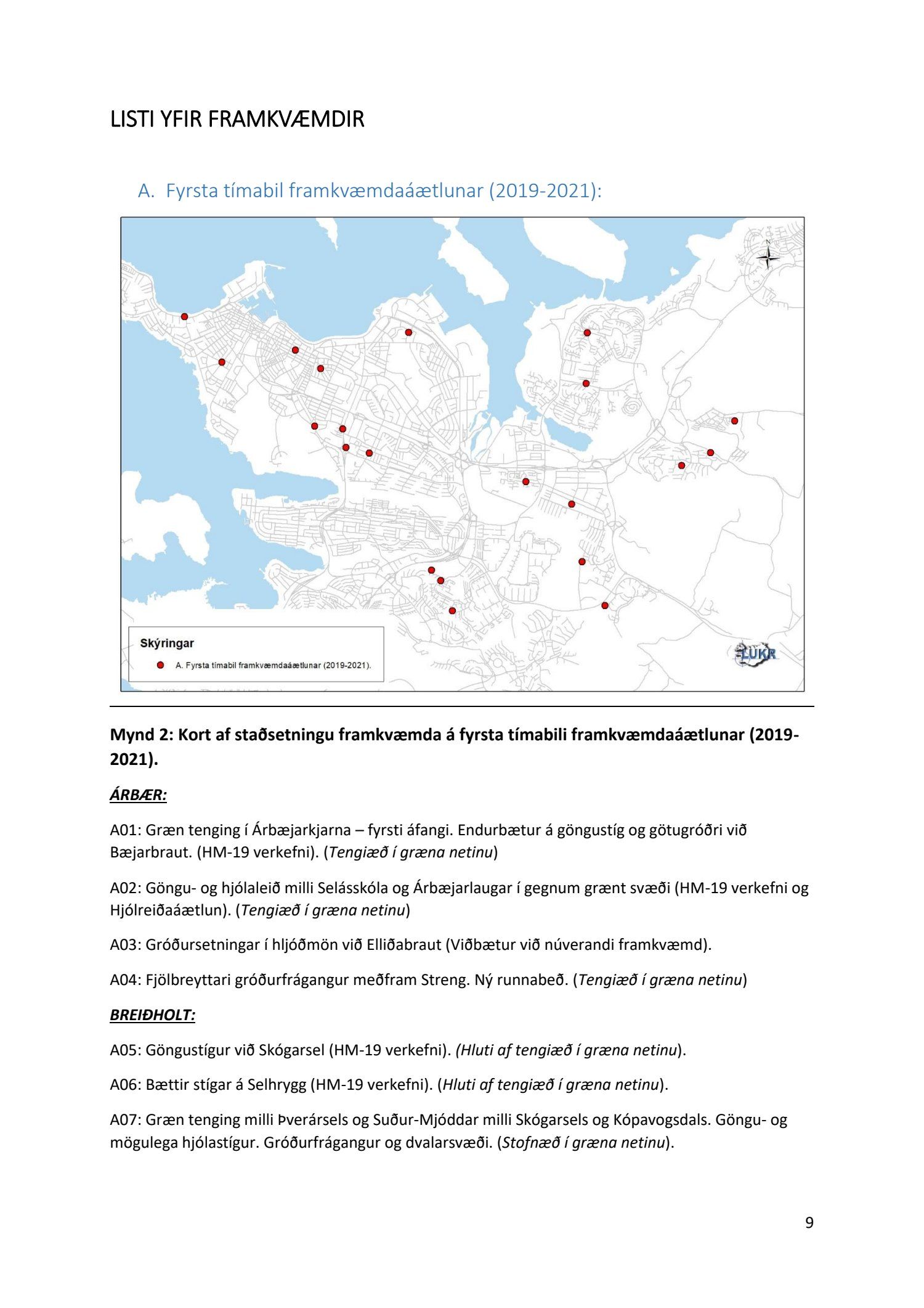 Lykilatriði í innleiðingu stefnu Aðalskipulags Reykjavíkur um hágæða Grænt net, er að farið sé í nauðsynlegar framkvæmdir til að styrkja netið með áherslu á að fjölga og bæta grænar tengingar. Það eru í sjálfu sér ágætis markmið ef ekki er á sama tíma byggt á hverjum einasta græna bletti sem fyrirfinnst í borginni og gengið freklega á náttúruperlur í borgarlandinu með byggingum eins og til stendur að reisa í Elliðaárdalnum. Þær framkvæmdir sem fyrirhugaðar eru þar, sýna svo ekki verður um villst, nauðsyn þess að friðlýsa Elliðaárdalinn. Þá hefur sú þéttingarstefna sem unnið hefur verið eftir á undanförnum árum, þar sem mesta þéttingin á sér stað miðsvæðis, komið niður á opnum grænum svæðum og einna verst vestan Snorrabrautar þar sem fá græn svæði eru eftir til útivistar, eins og Hljómskálagarðurinn og strandlengjan frá Skerjafirði að Ægisíðu. Það verður þó að teljast jákvætt að framkvæmdaáætlun Græna netsins mun fela í sér fjölgun á skilgreindum framkvæmdum á þeim opnu svæðum sem þó eru enn til staðar í borginni. Græna verkefnið felur í sér umhverfisfrágang á 17 nýjum göngu- og hjólastígum. Mikilvægt er að litið verði til umhverfisvænni lausna til að ryðja stígana á veturna, svo sem með upphitun svo ekki þurfi að ryðja, sanda og salta þá.