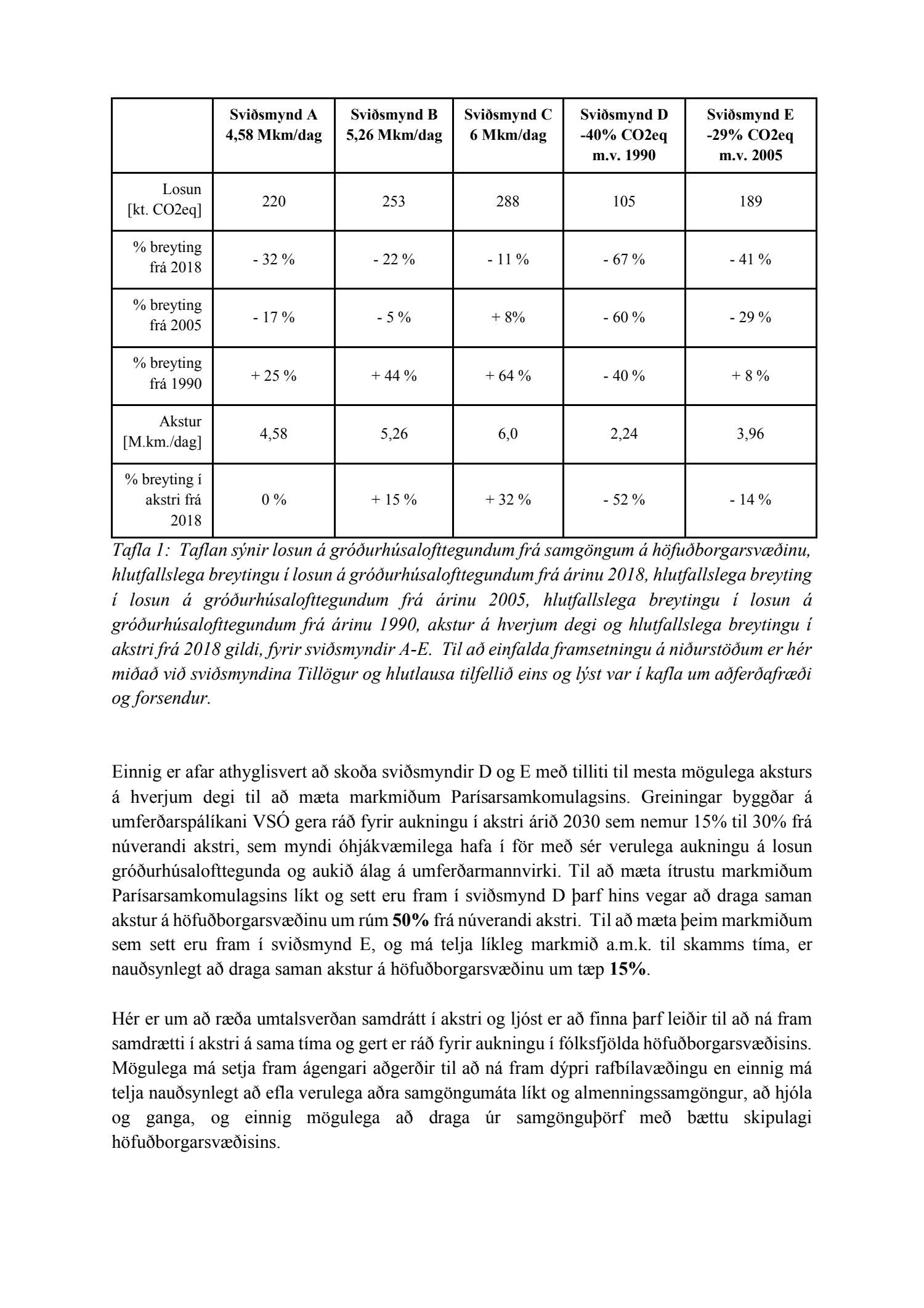 Fulltrúar Pírata, fulltrúar Samfylkingarinnar og fulltrúi Viðreisnar bóka: Mat á losun gróðurhúsalofttegunda frá fólksbifreiðum á höfuðborgarsvæðinu árið 2030 sýnir að nauðsynlegt er ráðast í metnaðarfullar aðgerðir til að standast skuldbindingar Parísarsamkomulagsins. Þar kemur í ljós að rafbílavæðing og aukin sparneytni bifreiða er langt frá því að vera nægjanleg til að mæta markmiðum samkomulagsins. Þörf er á öðrum aðgerðum sem draga úr akstri bifreiða á höfuðborgarsvæðinu til að ná settum markmiðum. Loftslagsmál eru mikilvægasta mál samtímans og það skiptir öllu máli að við látum ekki okkar eftir liggja, hvorki á líðandi stundu né á þeim tíma sem framundan er. Lagt er til að minnisblaðið verði nýtt sem grunnur að vinnu fyrir ný og metnaðarfyllri markmið um breyttar ferðavenjur í aðalskipulagi.