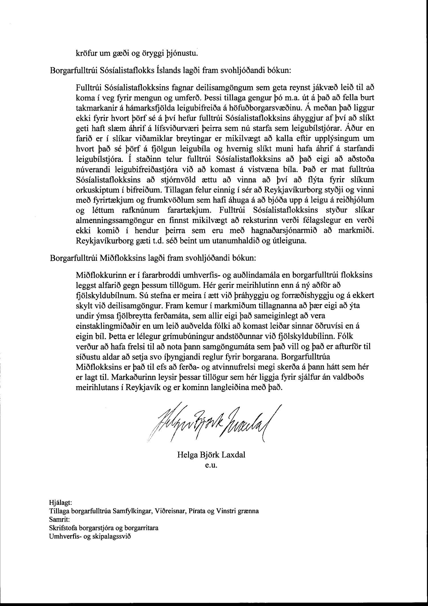 Tilllaga borgarfulltrúa Samfylkingar, Viðreisnar, Pírata og Vinstri gr, deilisamgöngur
