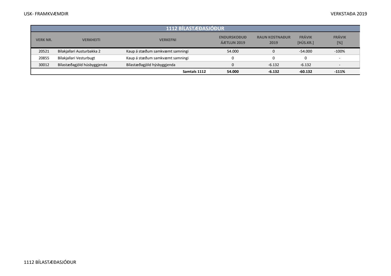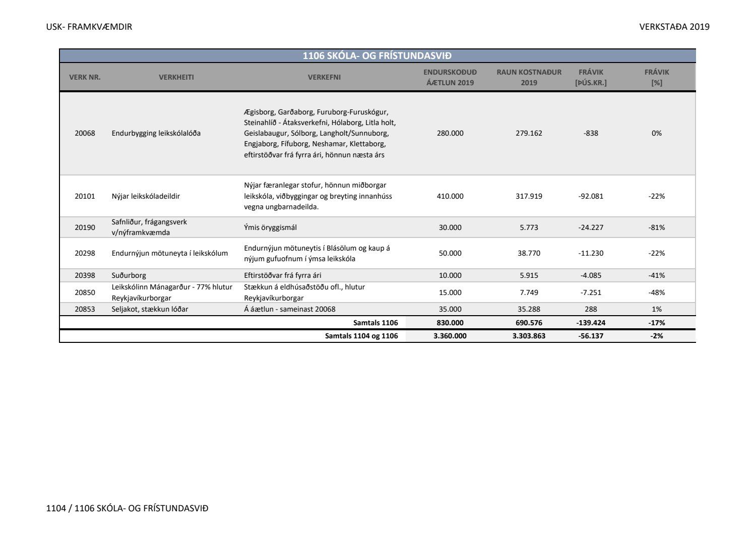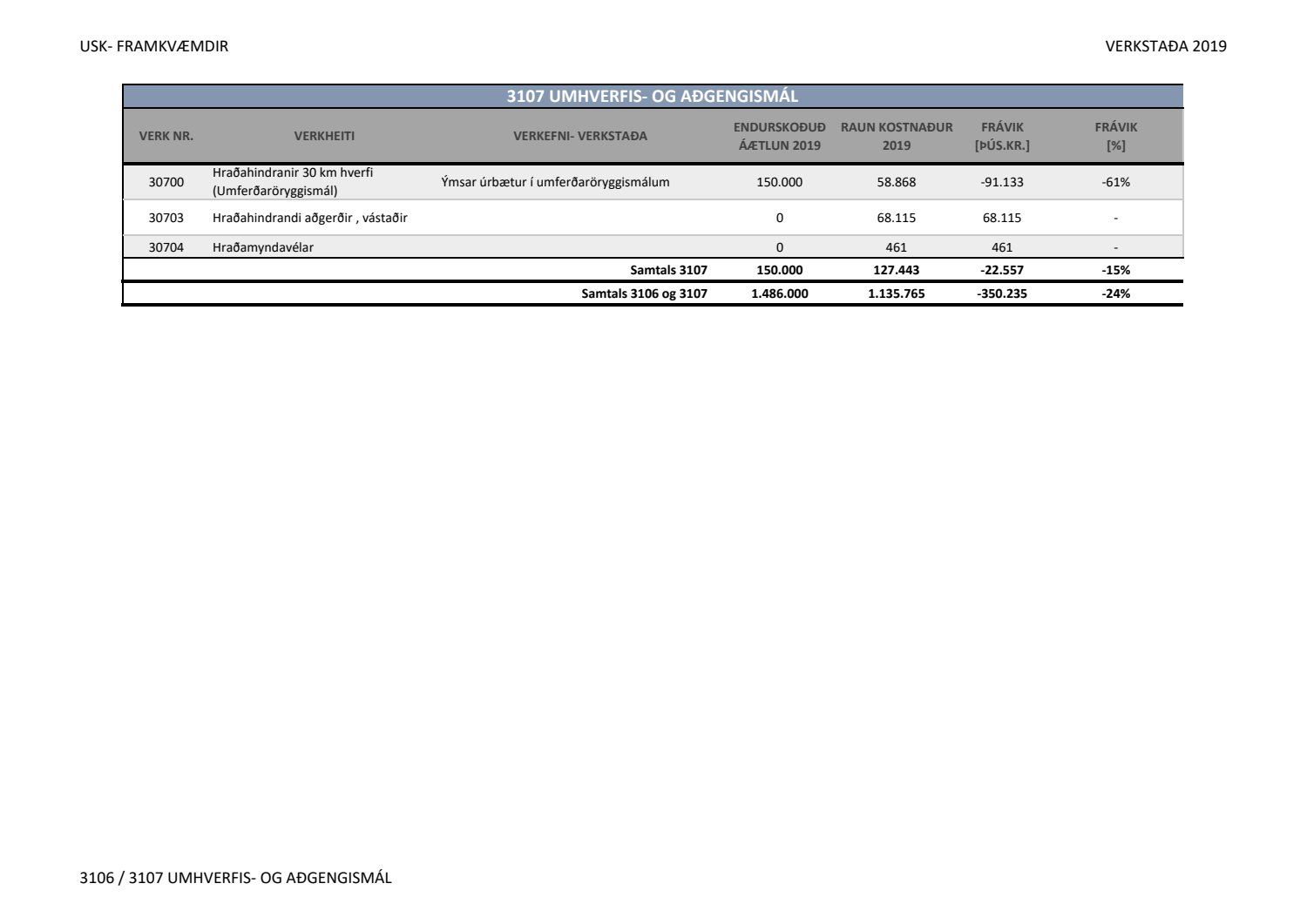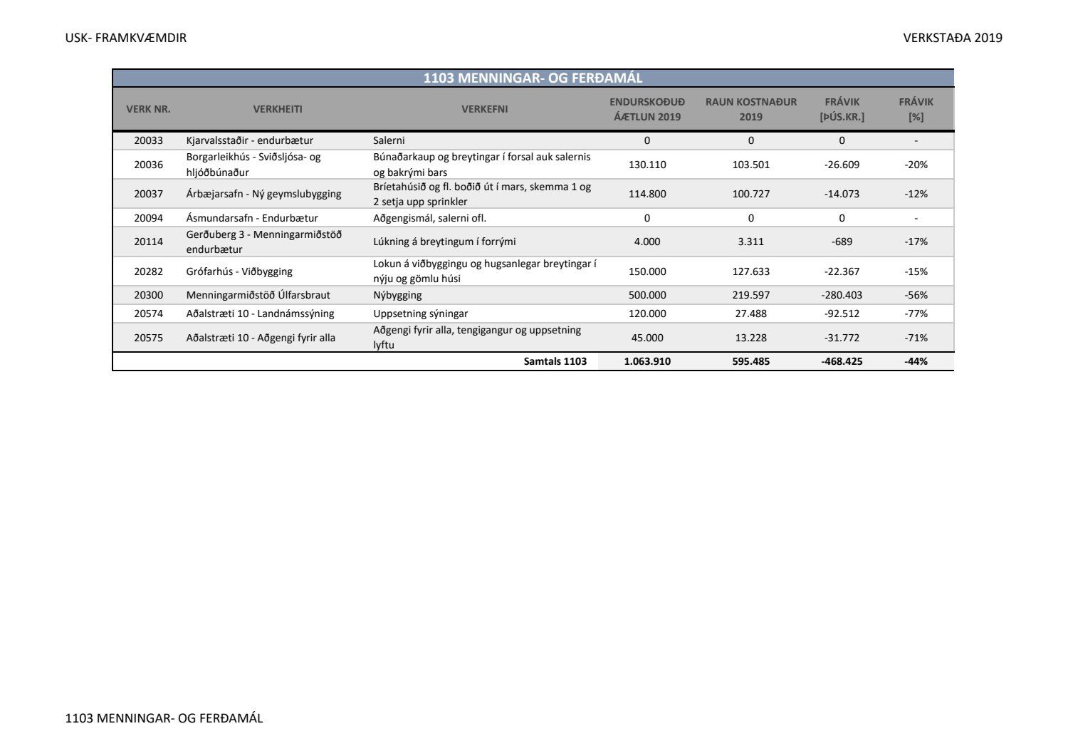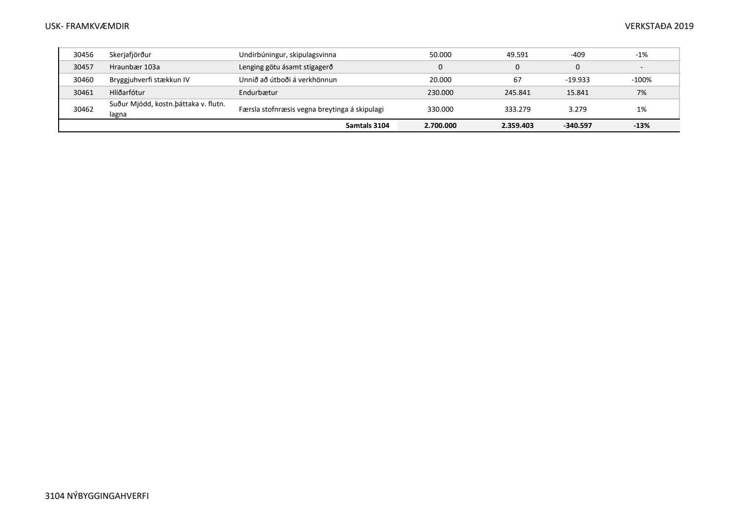 Lagðar fram greinargerðir Umhverfis- og skipulagssviðs í aðal- og eignasjóði. Einnig er lögð fram skýrsla um verkstöðu nýframkvæmda ódags.