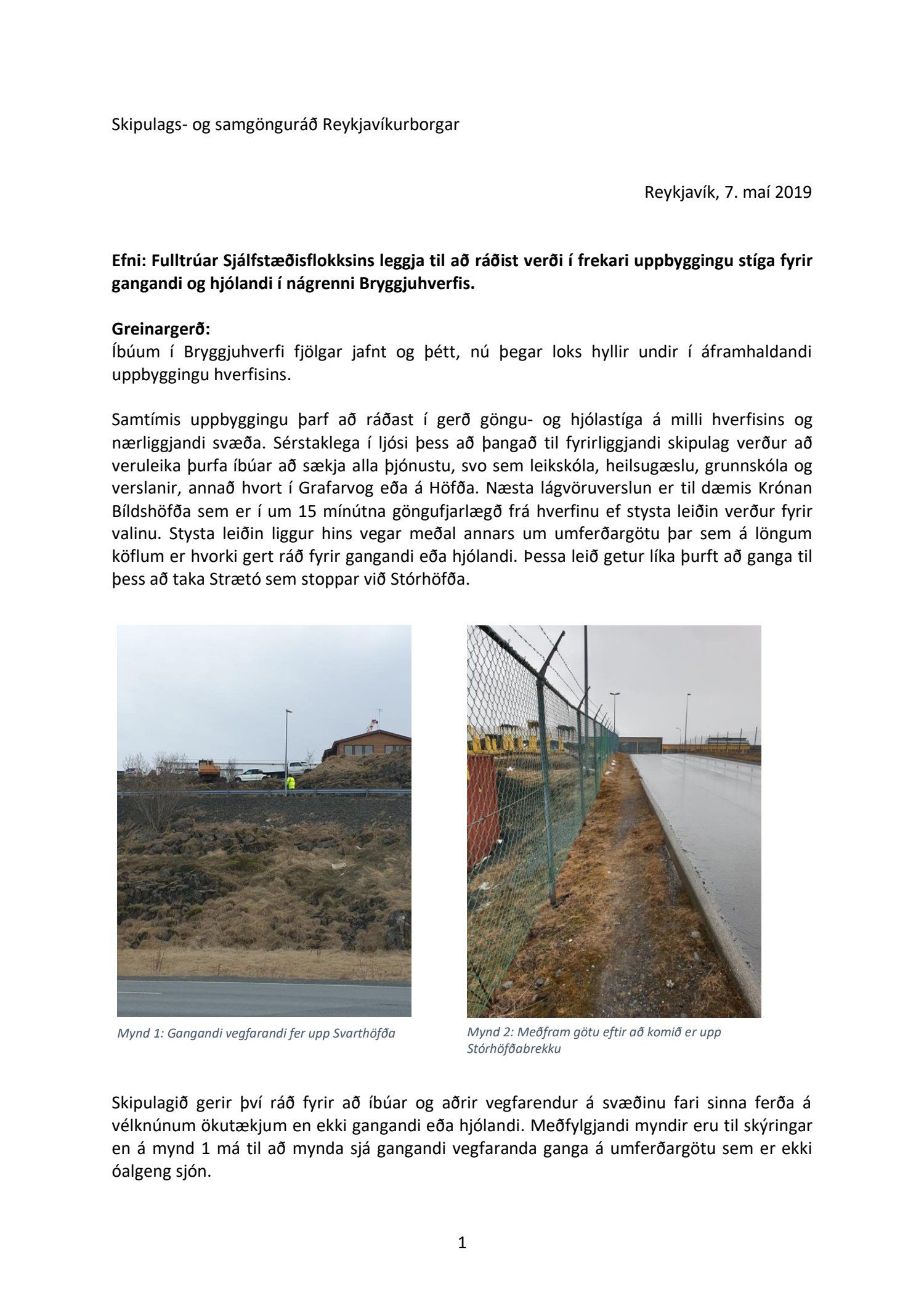 Greinagerð vegna tillögu um stíga í nágrenni við Bryggjuhverfi