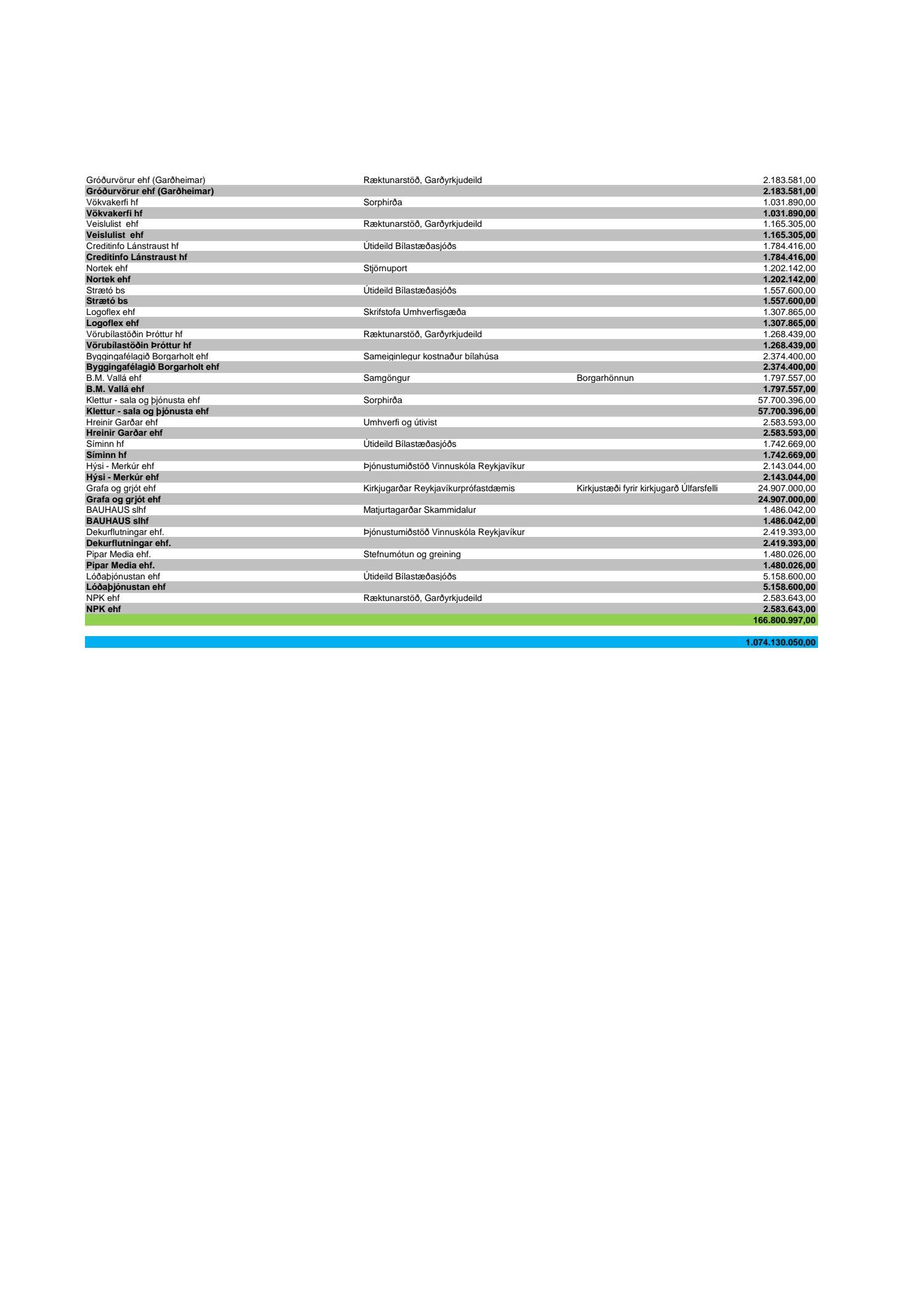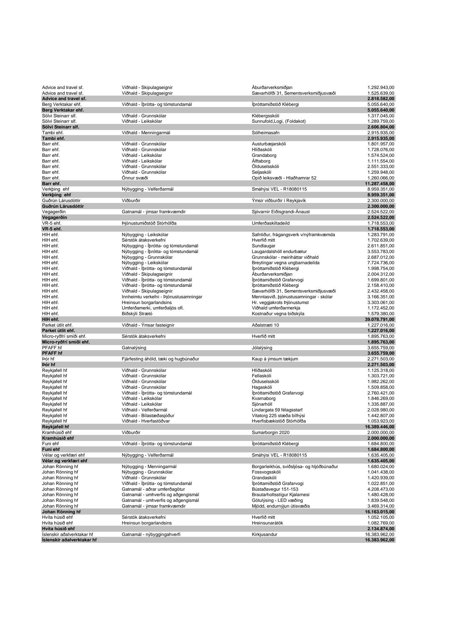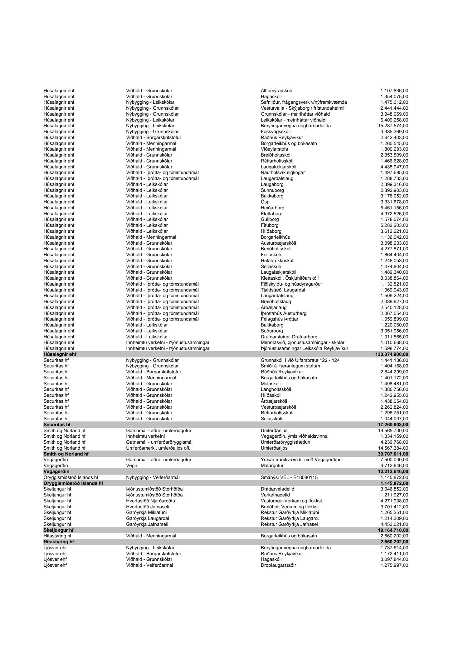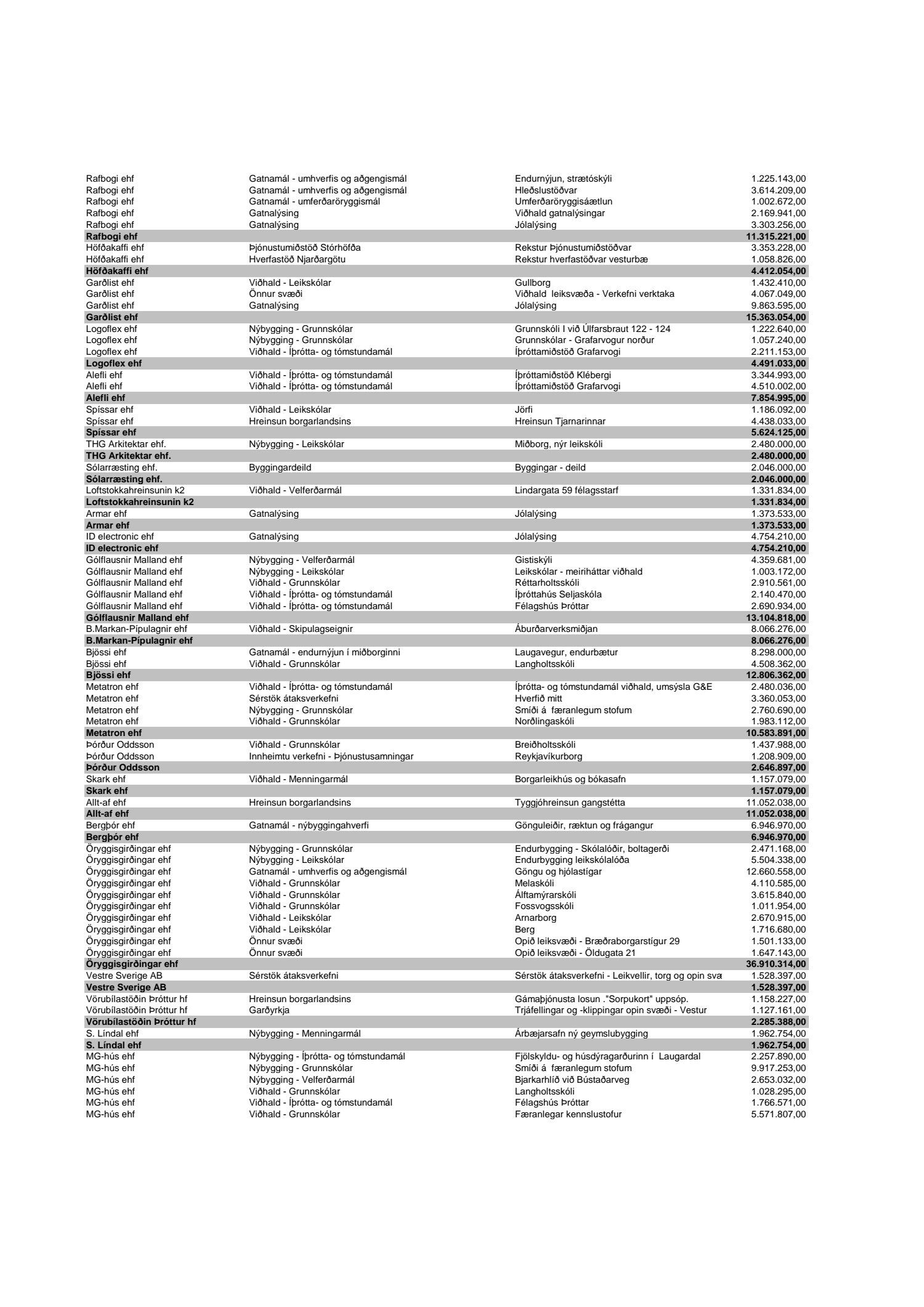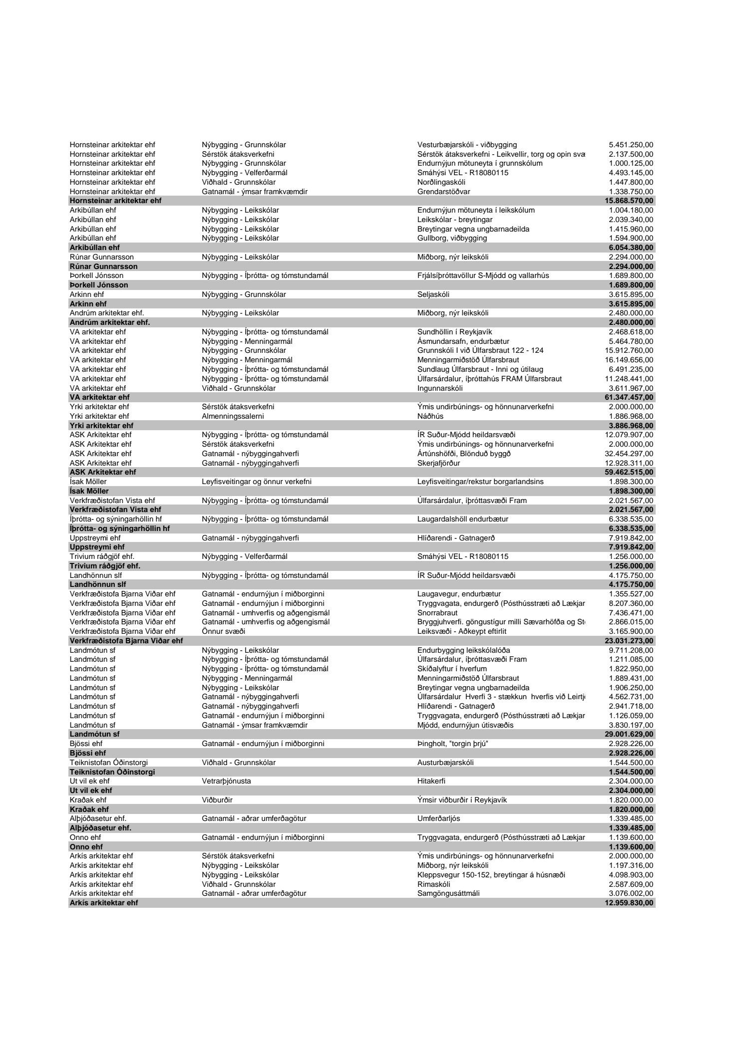 Erfitt er fyrir einstaka borgarfulltrúa að greina þennan lista um innkaup og átta sig á mikilvægi verkefna og hvort greiðslur séu í samræmi við verk og gæði og annað í þeim dúr. Samtals er um að ræða 16. 5 milljarð. Liðum eins og viðhaldsliðir, gatnagerð og þess háttar skýra sig e.t.v. sjálfir. Það vekur þó athygli hversu mikil vinna er keypt af ráðgjafa- og verkfræðistofum og hefur fulltrúi Flokks fólksins áður bókað um það. Á sviðinu starfa fjöldi sérfræðinga í umhverfis-, skipulags- og samgöngumálum en þrátt fyrir það virðist þurfa að kaupa ráðgjöf fyrir nánast hvert handtak, stórt eða smátt. Það er því ekki að undra að stundum upplifir borgarfulltrúinn eins og embættis- og starfsmenn séu ekki ráðnir sem sérfræðingar heldur frekar sem verkstjórar. En öll þessi vinna/ráðgjöf sem keypt er af utan að komandi sérfræðingum í stór sem smá verkefni vekur upp spurningar um hagkvæmni. Er sem dæmi enginn arkitekt á launaskrá hjá umhverfis- og skipulagsráði eða á skipulags- og samgönguráði? Annars segir þessi listi um innkaup kjörnum fulltrúa ekki mikið. Hvað er t.d. verið að greiða New Nordic Engineering ehf fyrir að upphæð 70.778.173.00?