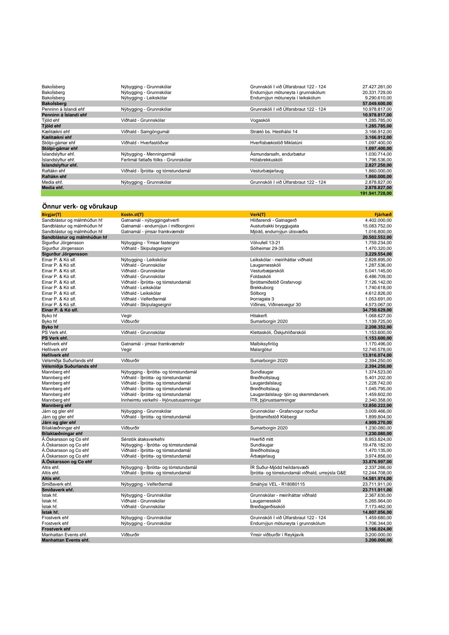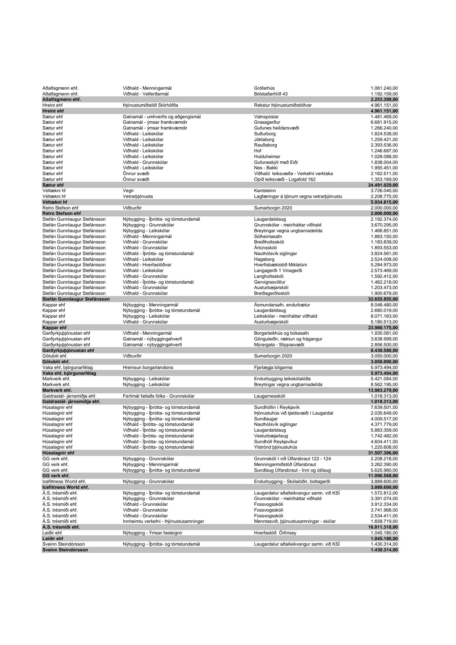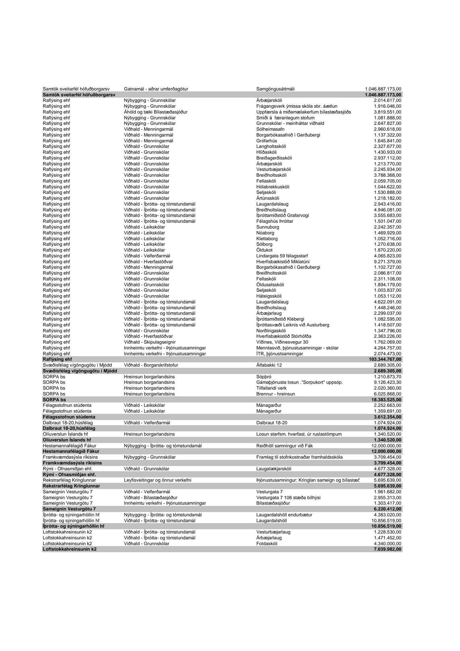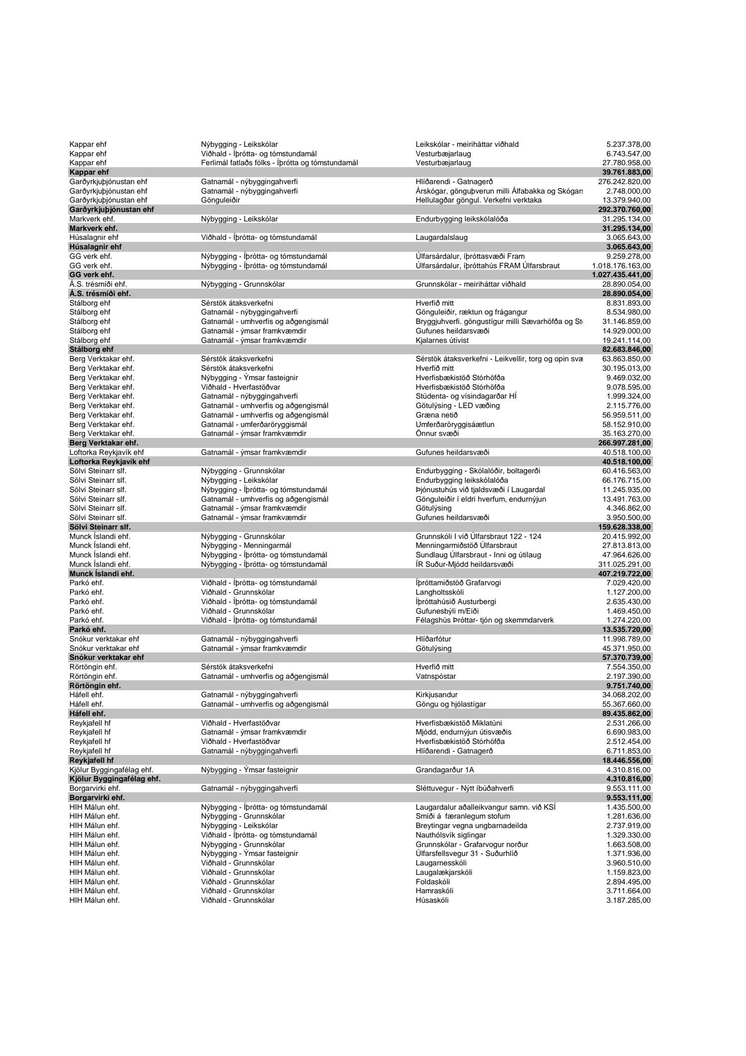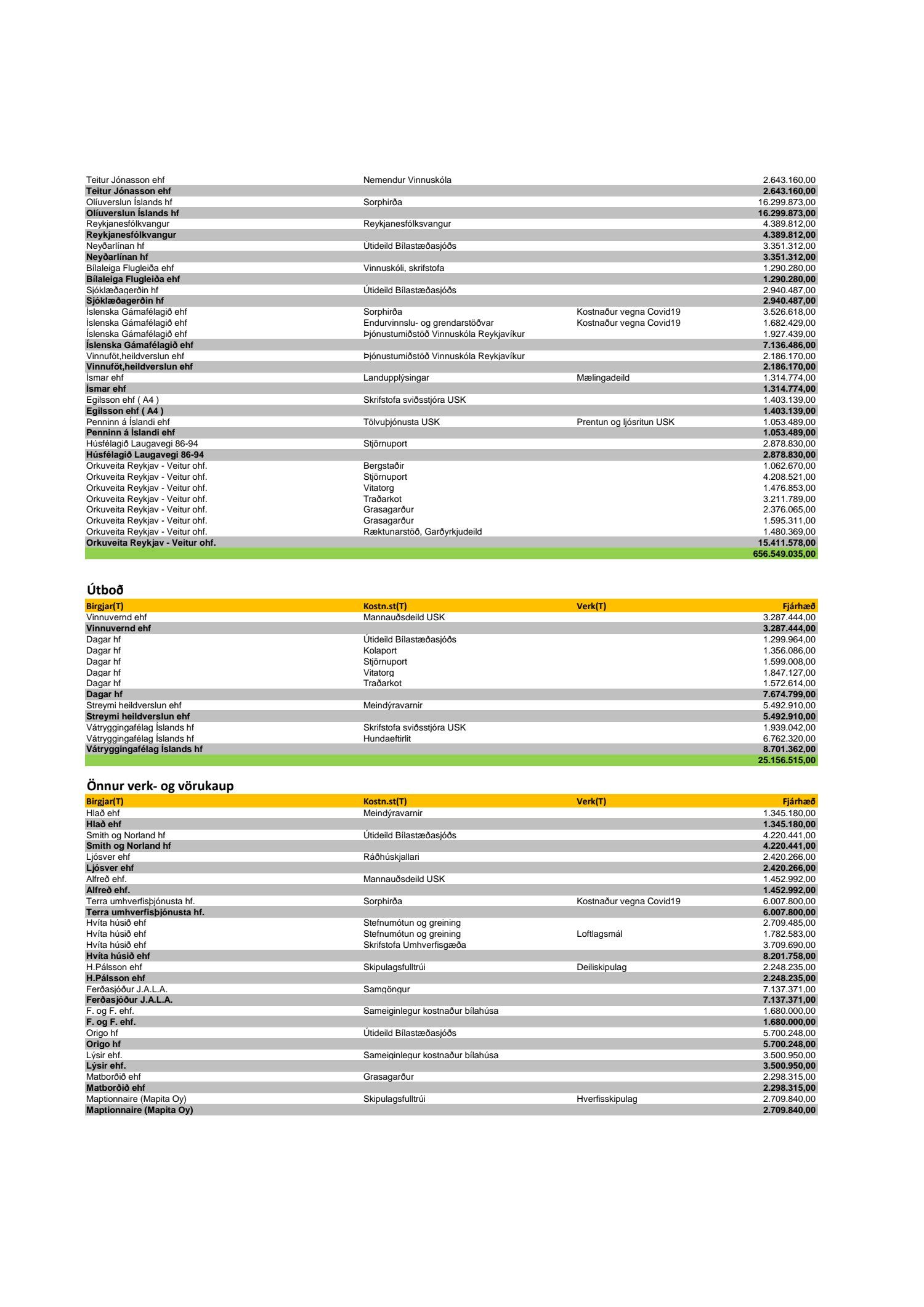 Erfitt er fyrir einstaka borgarfulltrúa að greina þennan lista um innkaup og átta sig á mikilvægi verkefna og hvort greiðslur séu í samræmi við verk og gæði og annað í þeim dúr. Samtals er um að ræða 16. 5 milljarð. Liðum eins og viðhaldsliðir, gatnagerð og þess háttar skýra sig e.t.v. sjálfir. Það vekur þó athygli hversu mikil vinna er keypt af ráðgjafa- og verkfræðistofum og hefur fulltrúi Flokks fólksins áður bókað um það. Á sviðinu starfa fjöldi sérfræðinga í umhverfis-, skipulags- og samgöngumálum en þrátt fyrir það virðist þurfa að kaupa ráðgjöf fyrir nánast hvert handtak, stórt eða smátt. Það er því ekki að undra að stundum upplifir borgarfulltrúinn eins og embættis- og starfsmenn séu ekki ráðnir sem sérfræðingar heldur frekar sem verkstjórar. En öll þessi vinna/ráðgjöf sem keypt er af utan að komandi sérfræðingum í stór sem smá verkefni vekur upp spurningar um hagkvæmni. Er sem dæmi enginn arkitekt á launaskrá hjá umhverfis- og skipulagsráði eða á skipulags- og samgönguráði? Annars segir þessi listi um innkaup kjörnum fulltrúa ekki mikið. Hvað er t.d. verið að greiða New Nordic Engineering ehf fyrir að upphæð 70.778.173.00?
