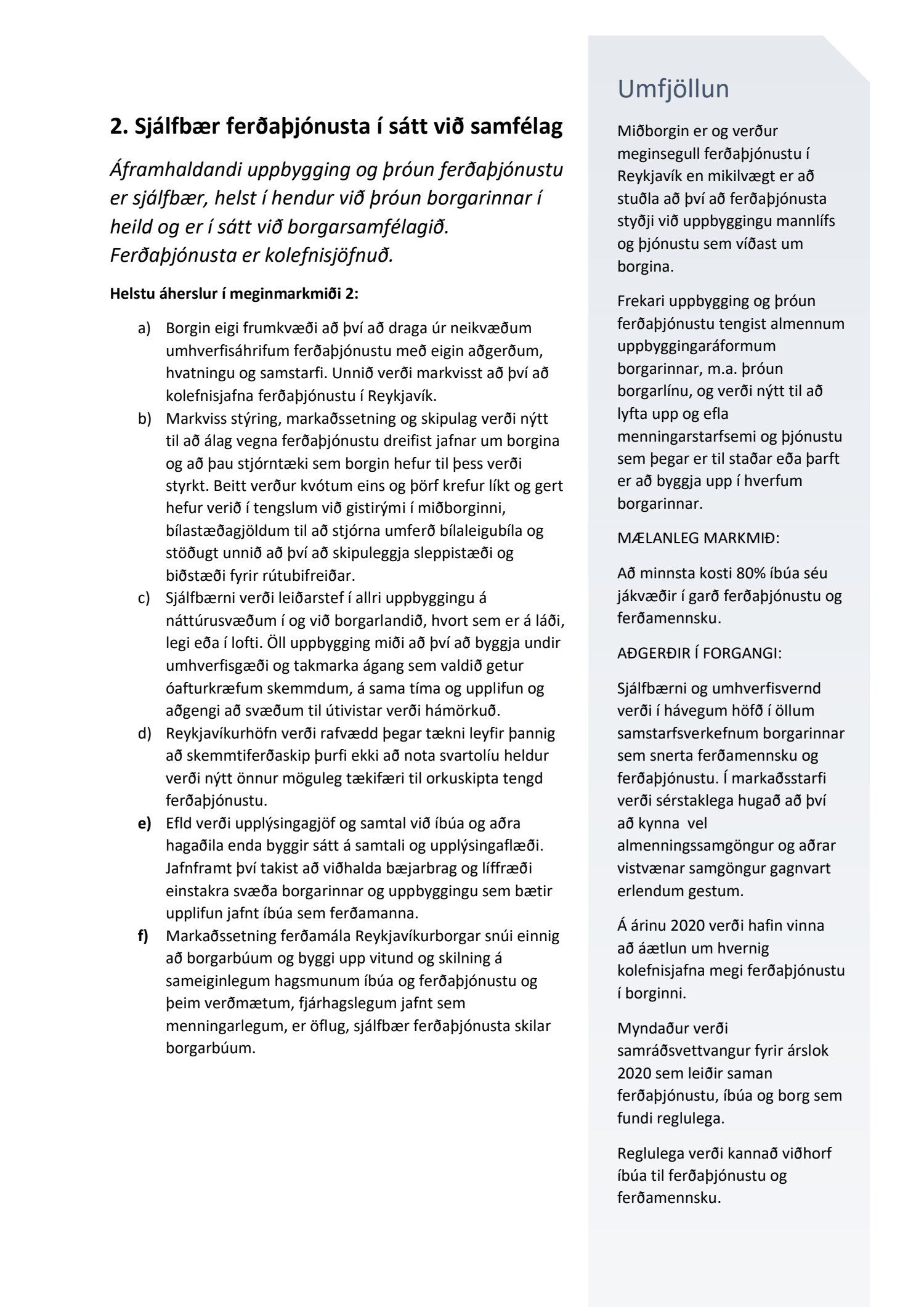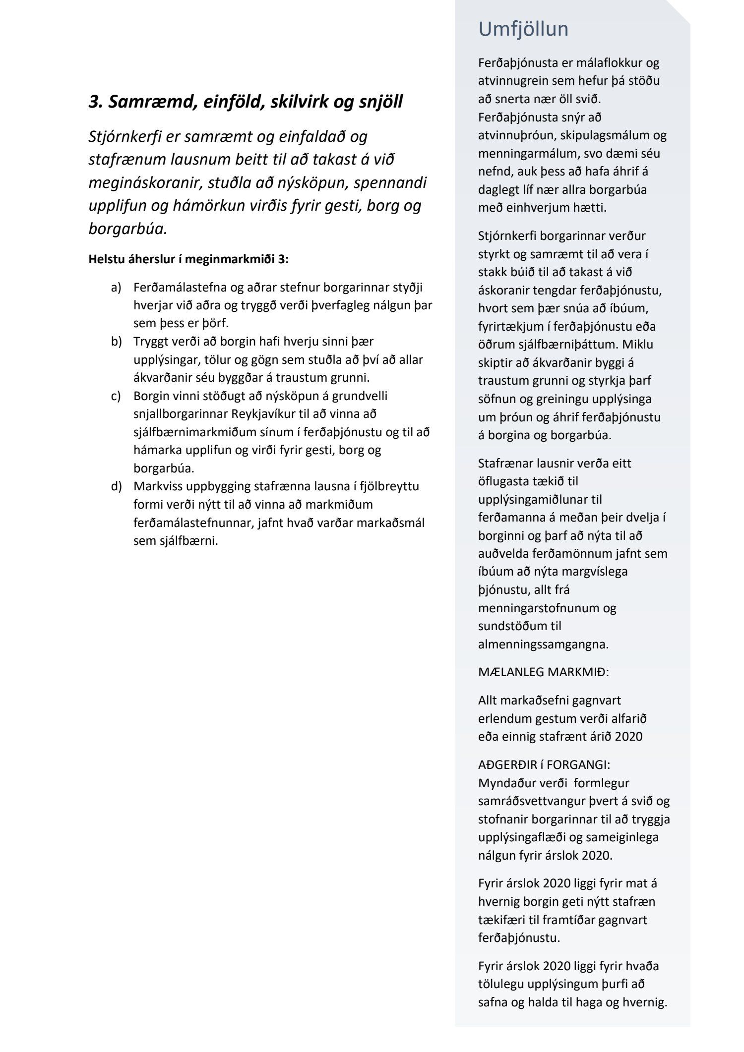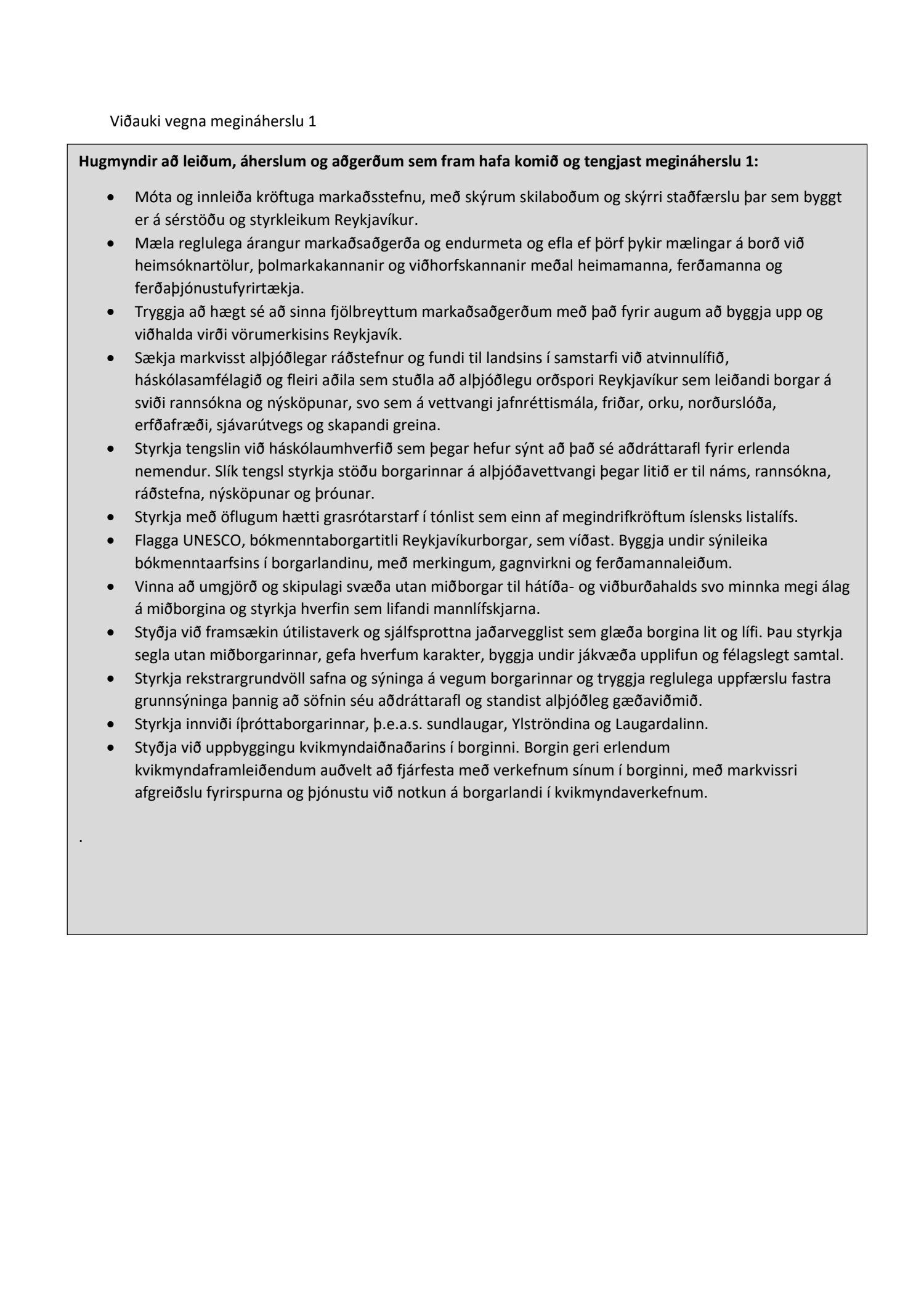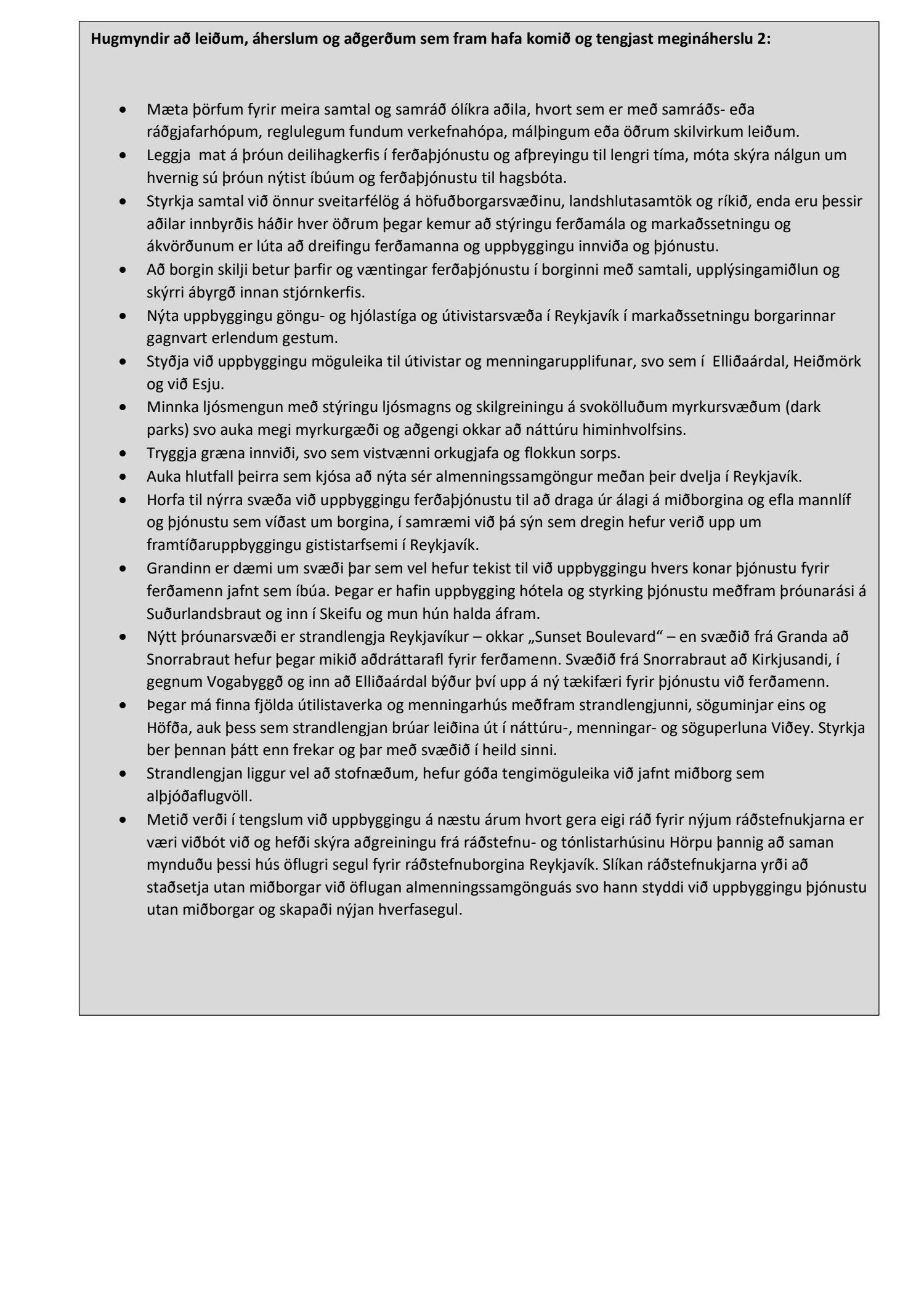 Áfangastaðurinn Reykjavík, erindi til umsagnar