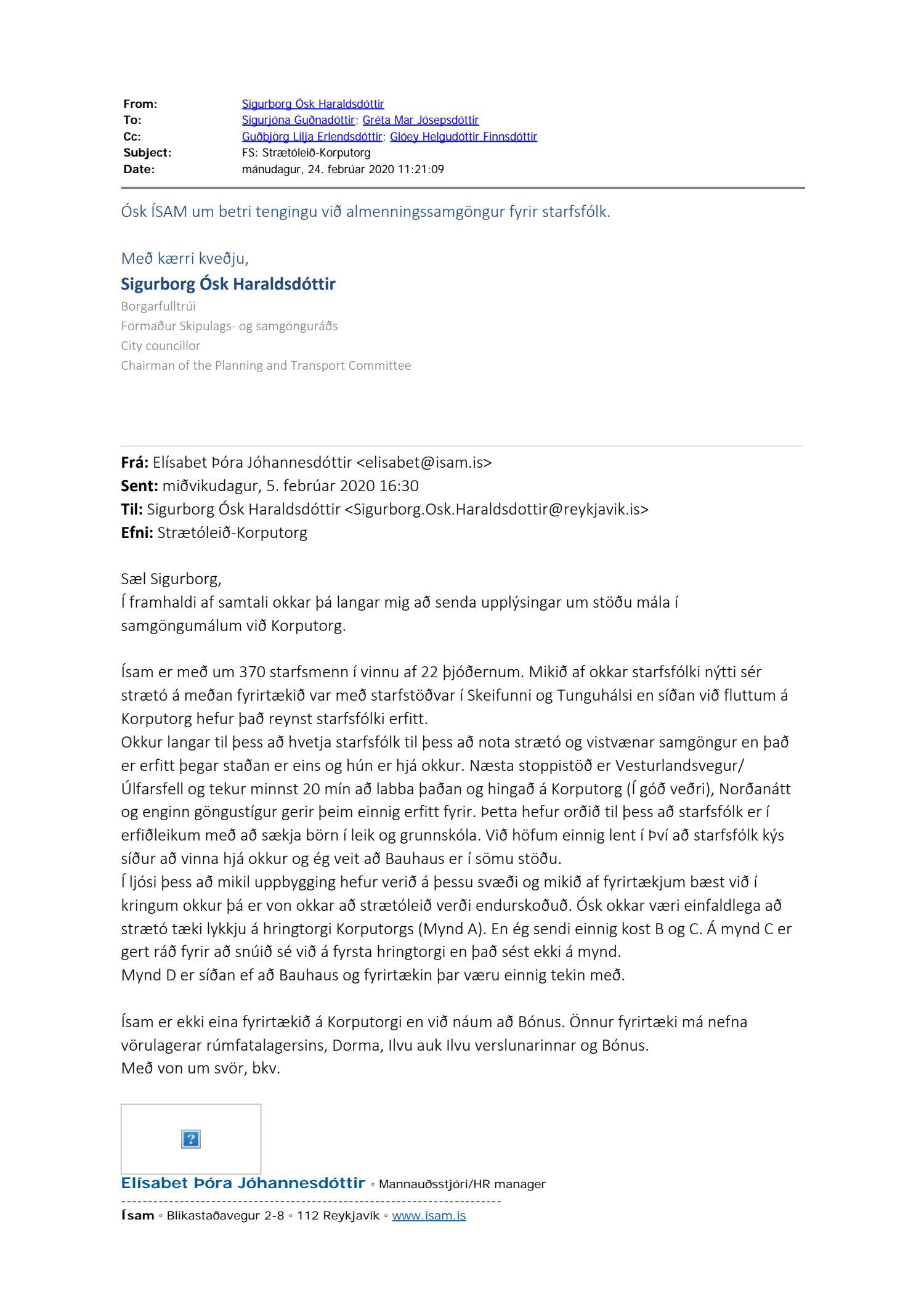 Lagt er fram erindi Ísam dags. 5. febrúar 2020 þar sem óskað er eftir breytingu á strætóleið við Korputorg.