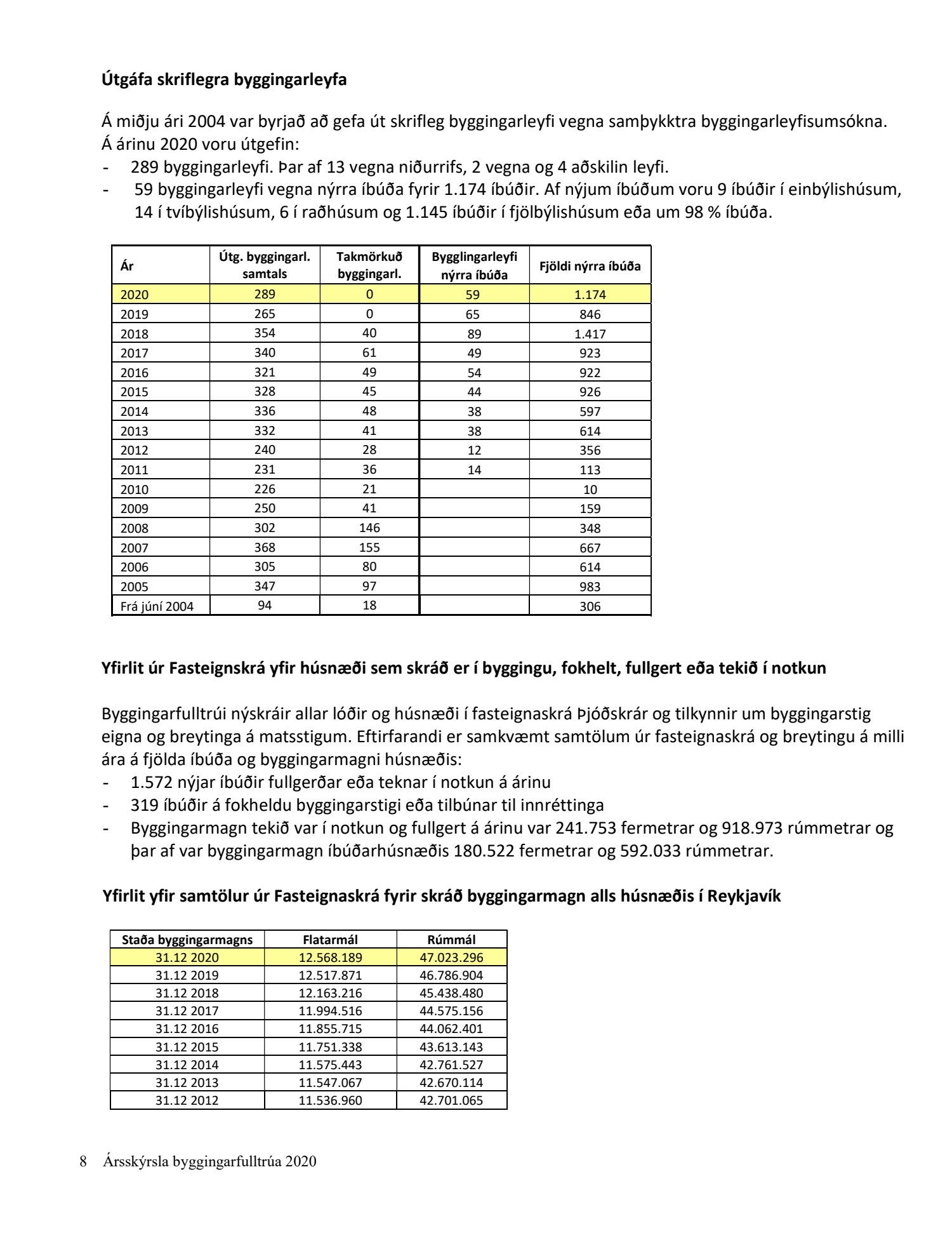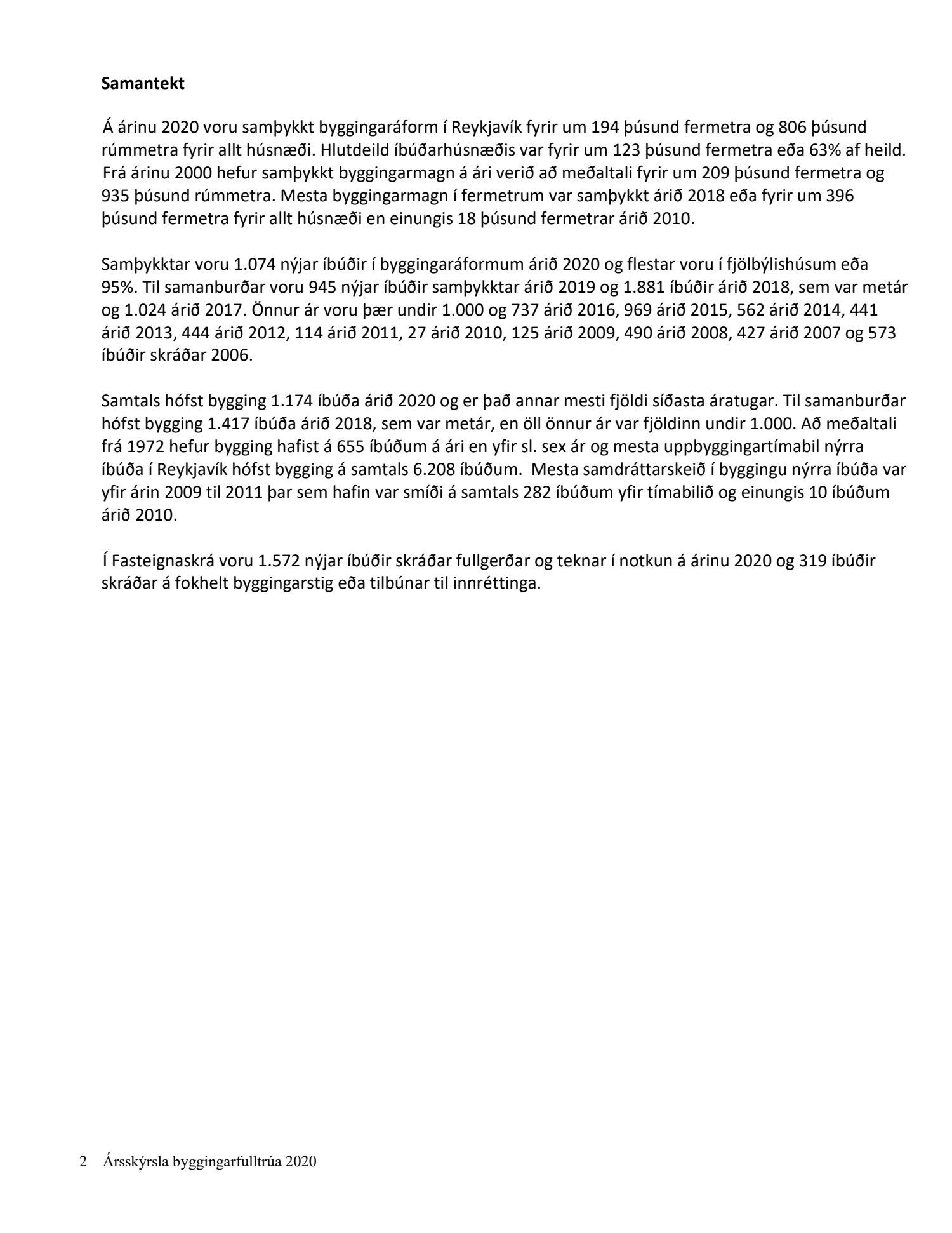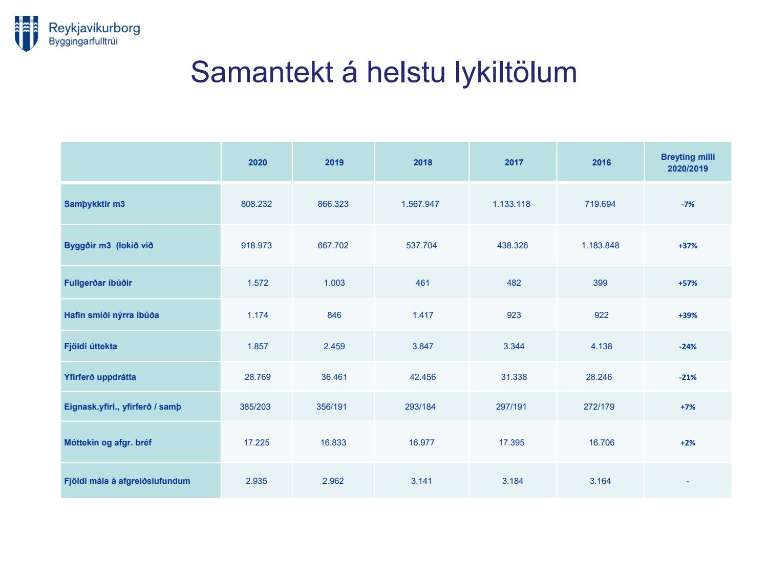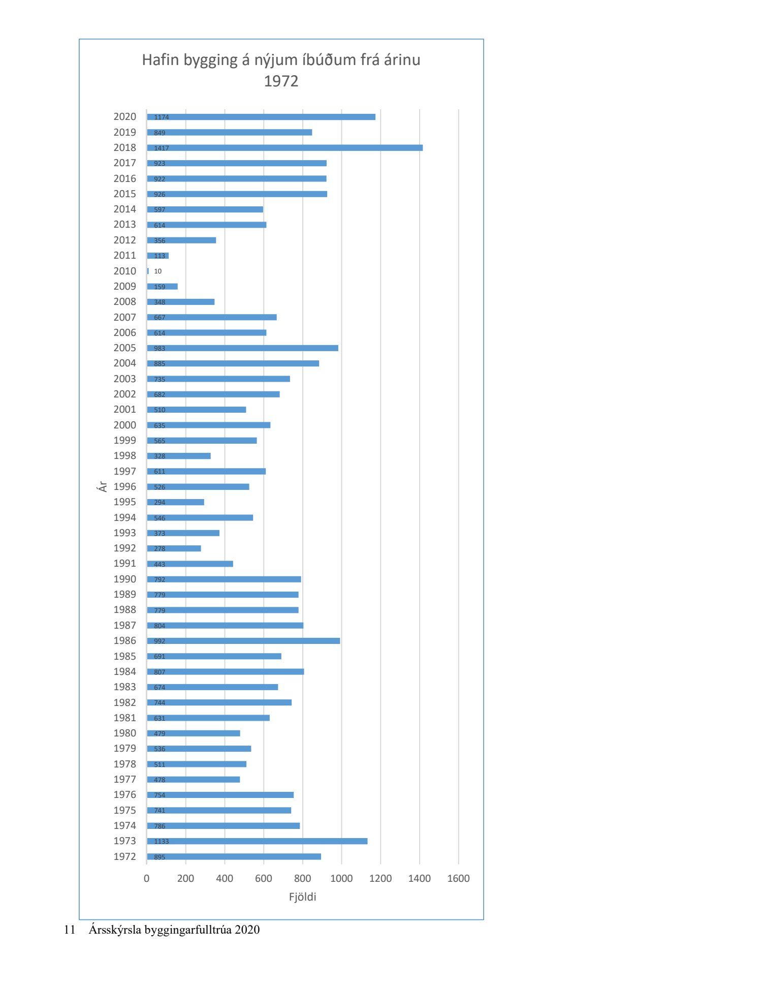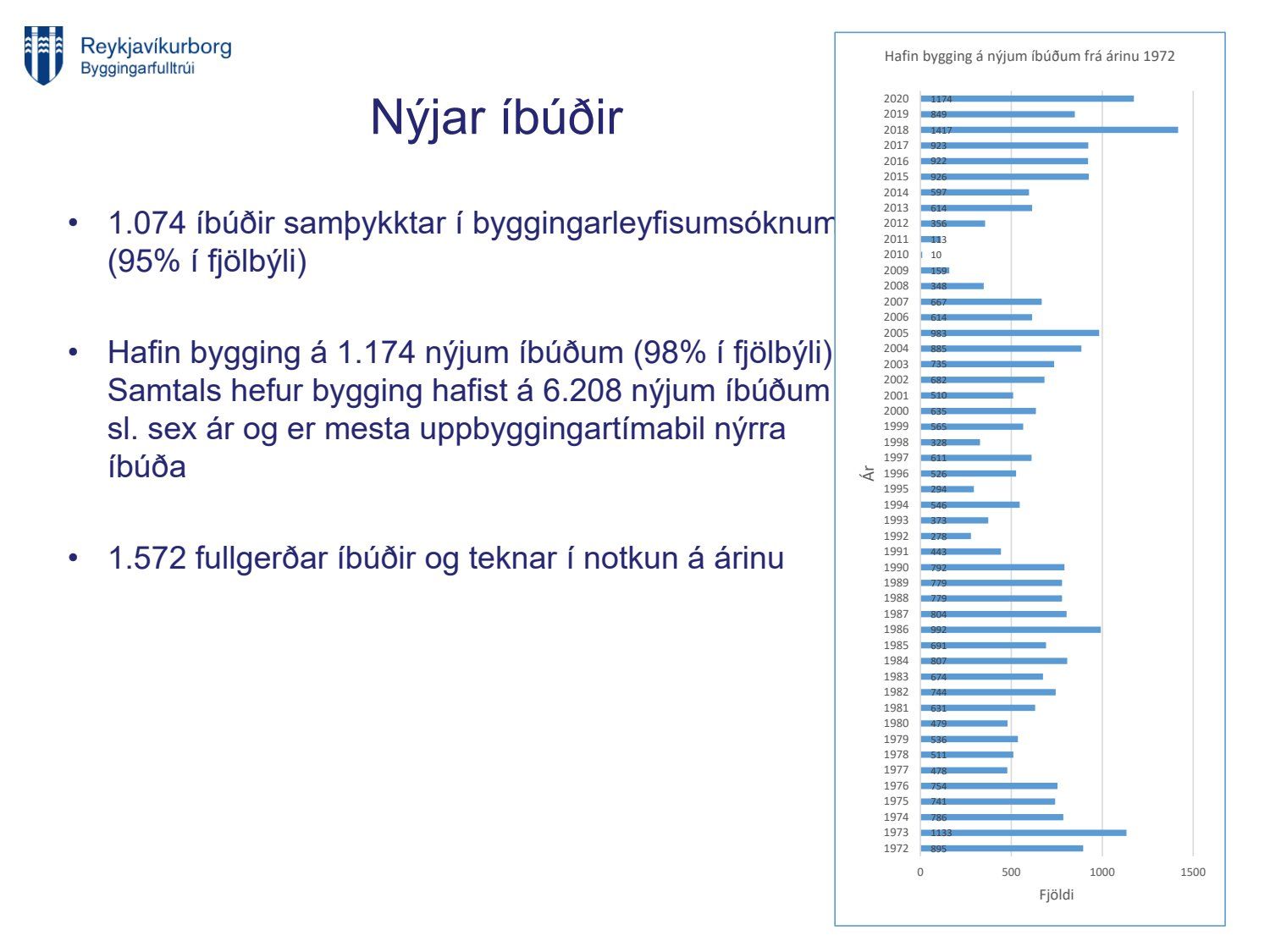 Aldrei í sögu Reykjavíkur hafa jafnmargar íbúðir verið byggðar. Undanfarin 6 ár hafa 6.208 nýjar íbúðir verið í byggingu í borginni. Árið 2020 voru 1.574 íbúðir fullgerðar og teknar í notkun en á árinu hófst bygging á 1.174 íbúðum.