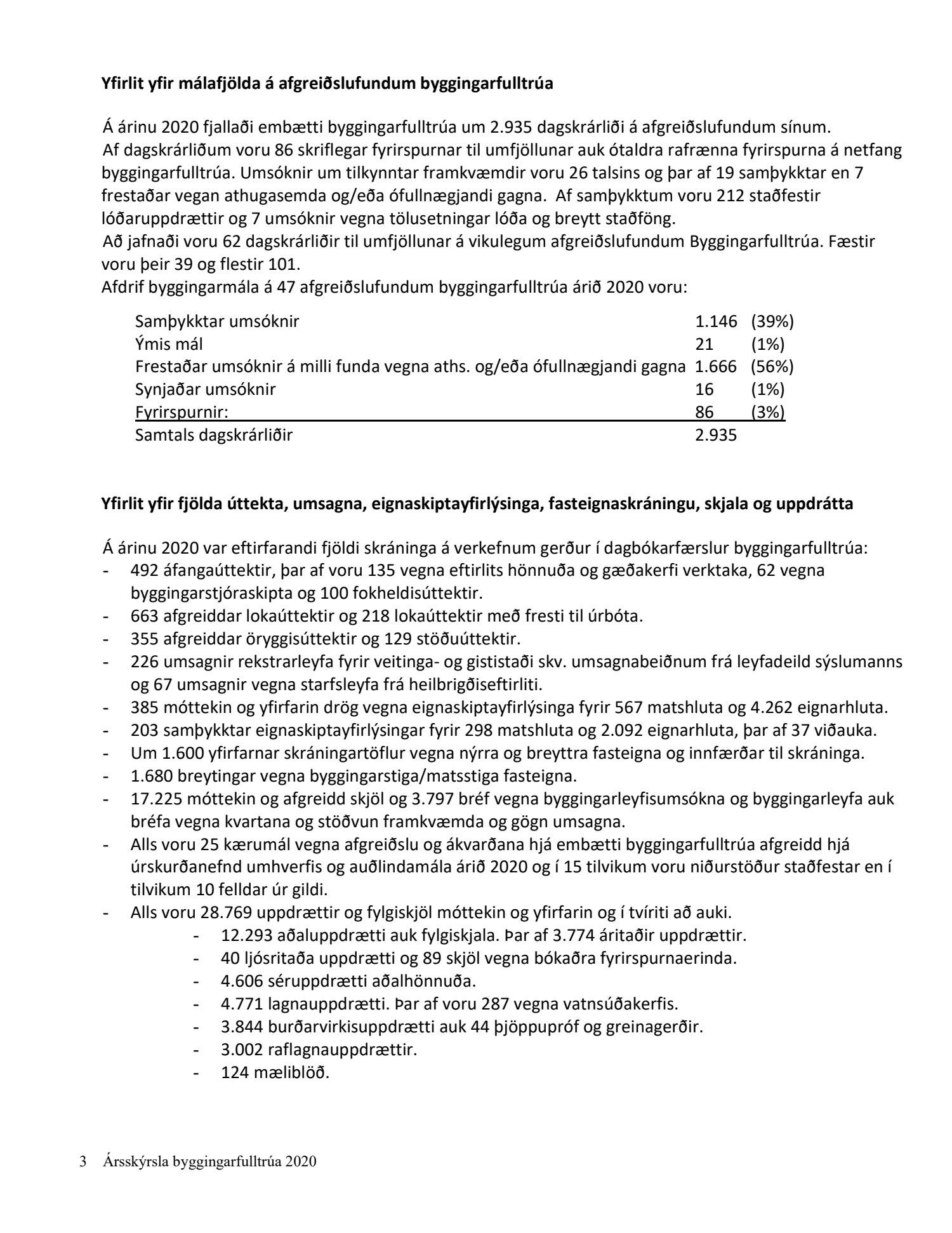 Lögð fram ársskýrsla byggingarfulltrúa fyrir árið 2020, dags. í janúar 2021.