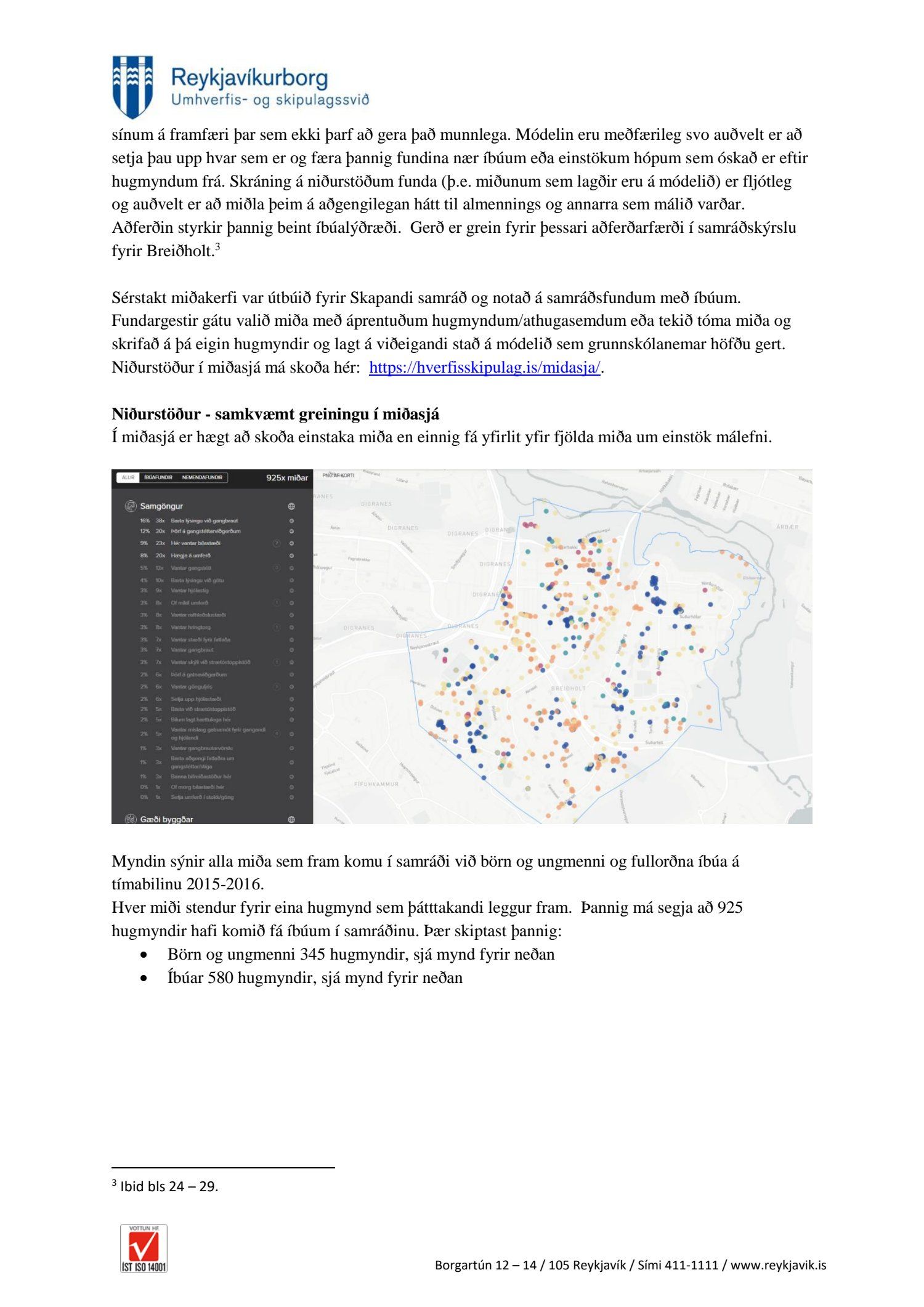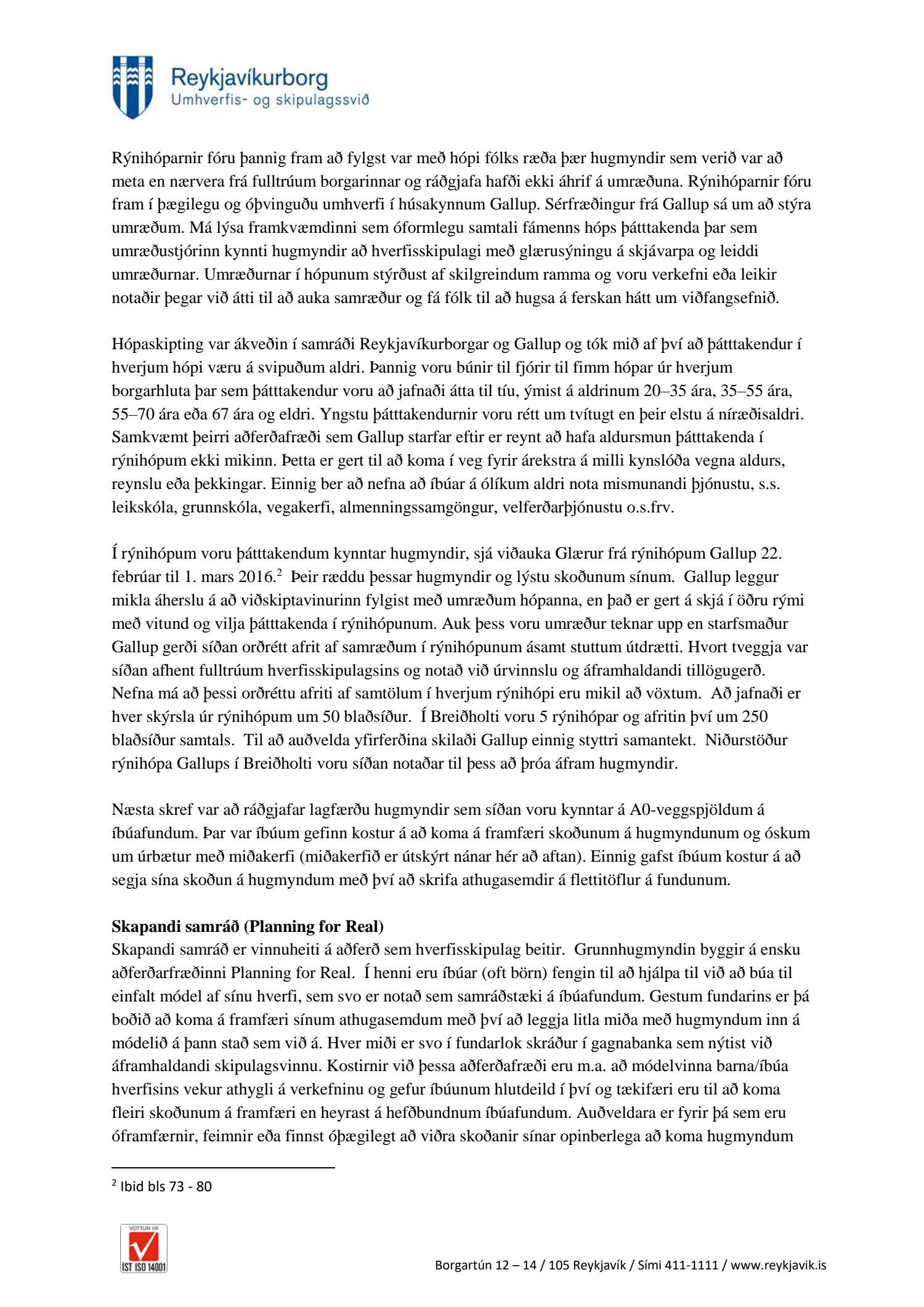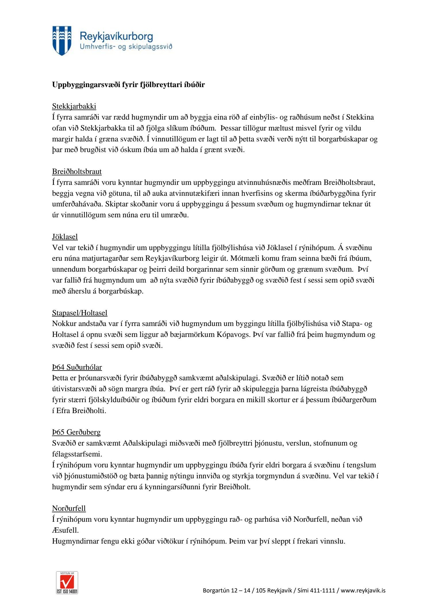 Fulltrúi Flokks fólksins óskaði eftir að fá það sundurliðað hvaða hugmyndir sem birtar eru í vinnutillögum nýs hverfisskipulags Breiðholts komu frá íbúum sjálfum og hvaða tillögur komu frá borgar- og skipulagsyfirvöldum eða öðrum? Var það t.d. ósk íbúa Breiðholts að svo mikil þétting byggðar yrði? Í svari segir að vinnutillögur byggi á samráði sem fór fram á árunum 2015-2017. Ítarlega er gerð grein fyrir þessu samráði í skýrslunni Borgarhluti 6, Breiðholt. Það sætir furðu hvað allt þetta „samráð“, boð um samráð hafi farið fram hjá mörgum í Breiðholti. Ótal margir hafa stigið fram og segjast ekkert kannast við að hafa fengið upplýsingar um fundi eða beðnir að bregðast við hugmyndum hvað þá senda inn hugmyndir. Það búa yfir 20 þúsund manns í Breiðholti. Hér er ekki um ræða lítið hverfi. Fólk man sem dæmi ekki eftir að hafa verið sendur neinn póstur um allt þetta samráð. Rýnihópar? Hvað margir af þeim 20 þúsund sem búa í Breiðholti höfðu aðgang að þeim? Segir í svari að mæting hafi verið ágæt eða frá 8 til 11 í hverjum hópi eða um 50 manns. Hverjir voru þessir fulltrúar borgarinnar og ráðgjafar sem setja áttu sig í spor íbúa. Ef hugmynd er óvinsæl hjá mörgum er sagt að hún hafi komið frá íbúa?