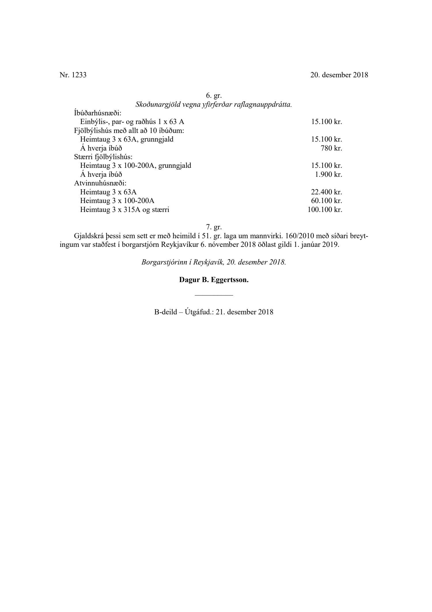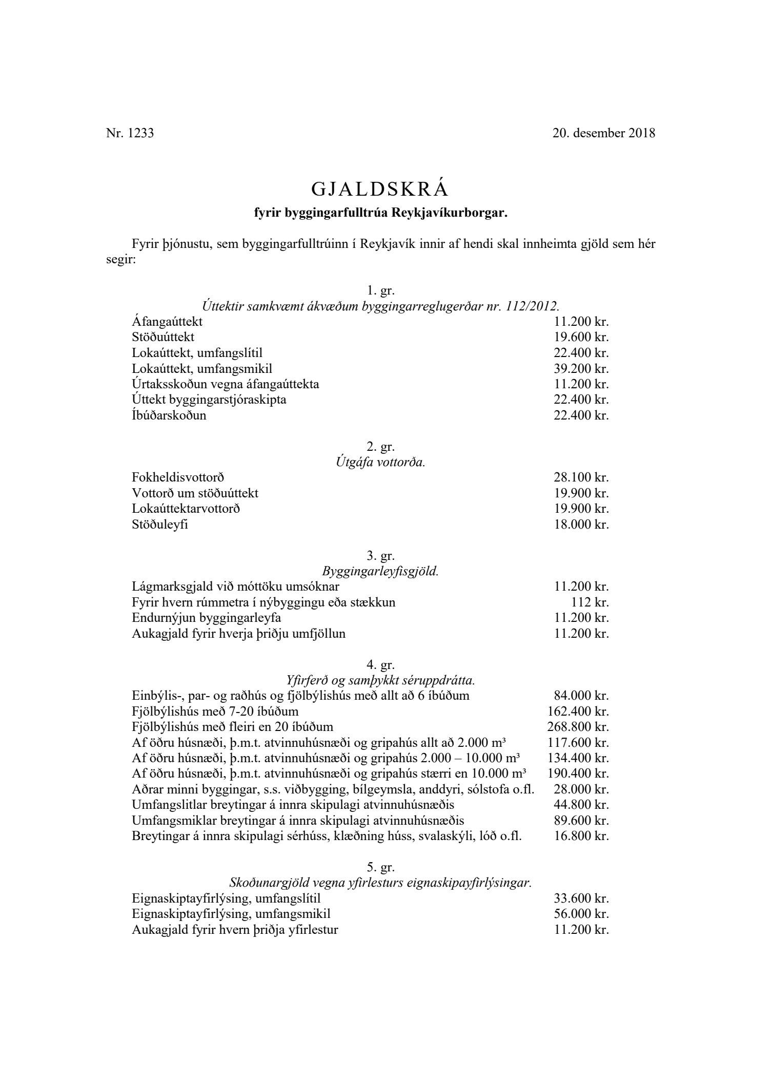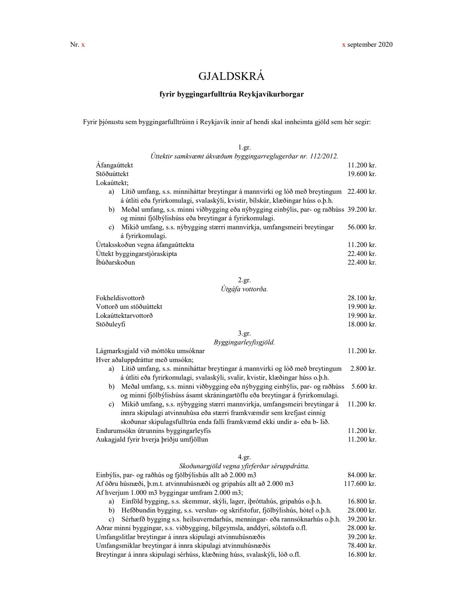 Núverandi gjaldskrá byggingarfulltrúa