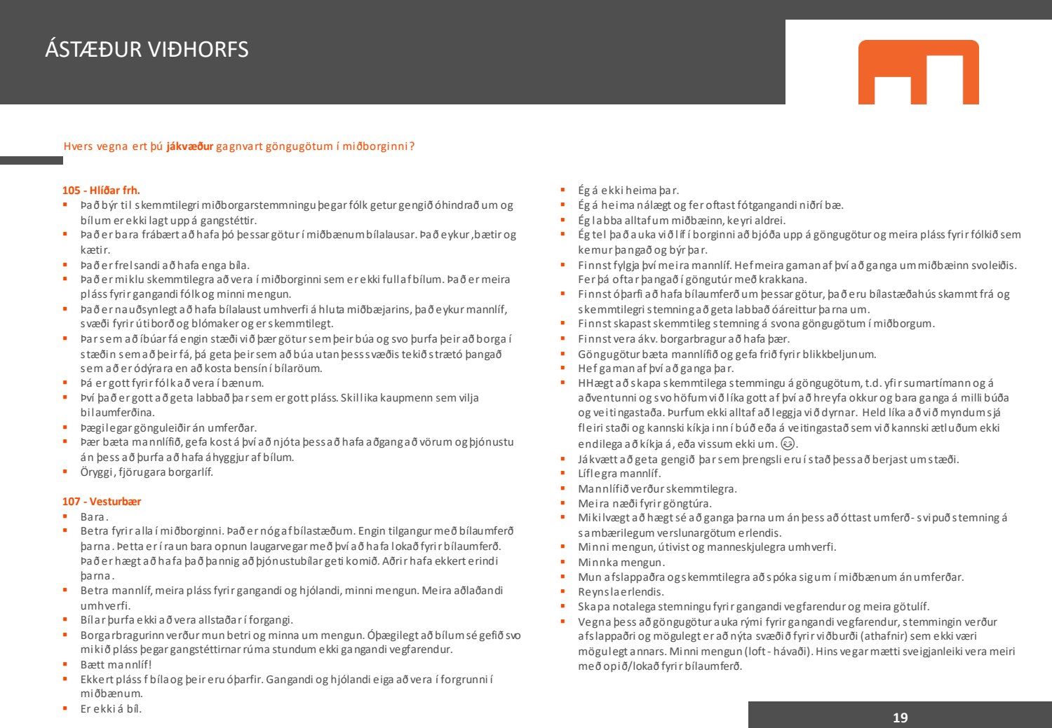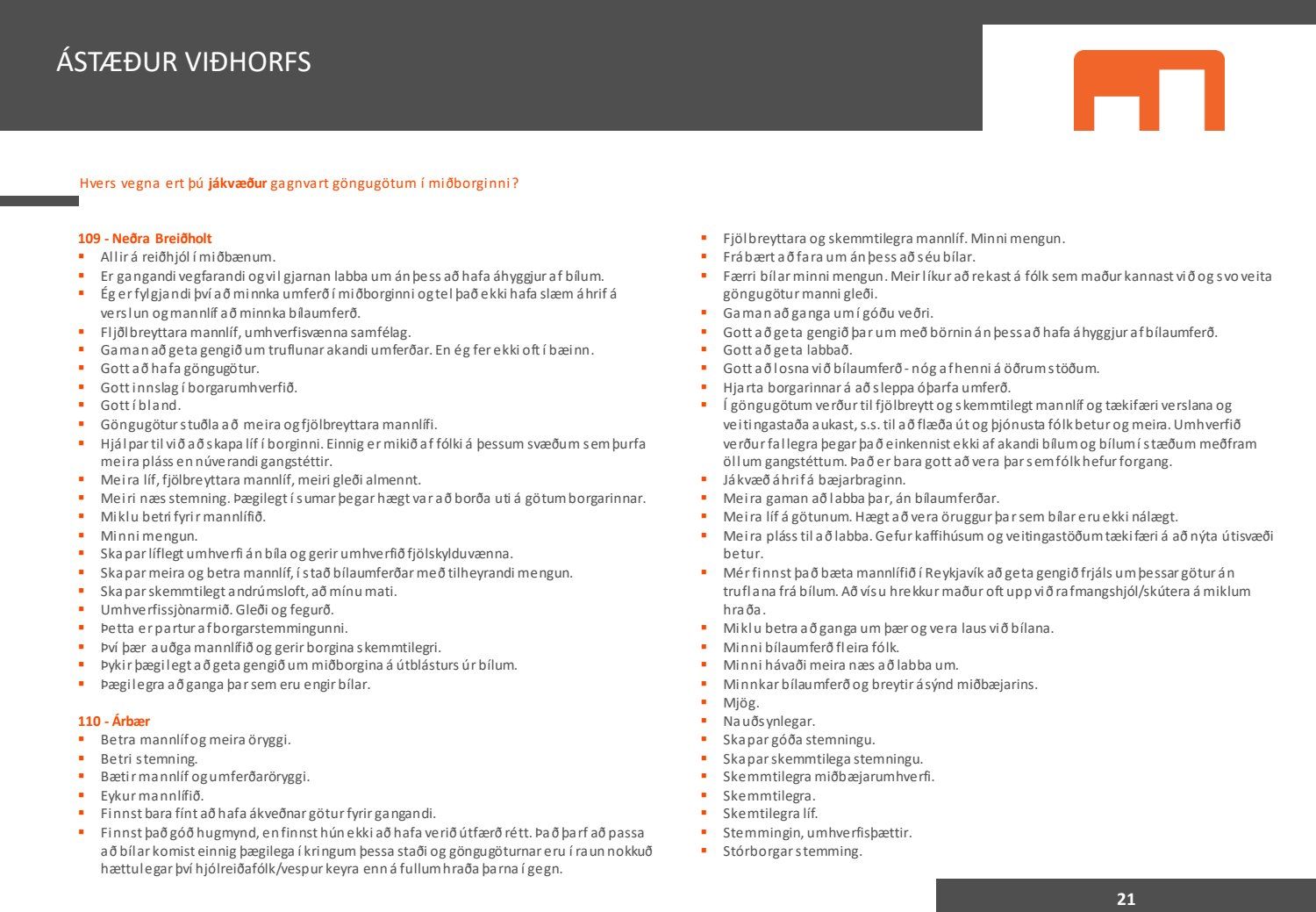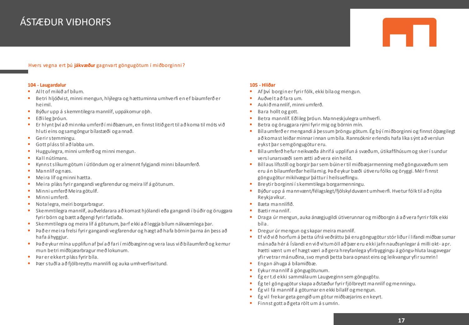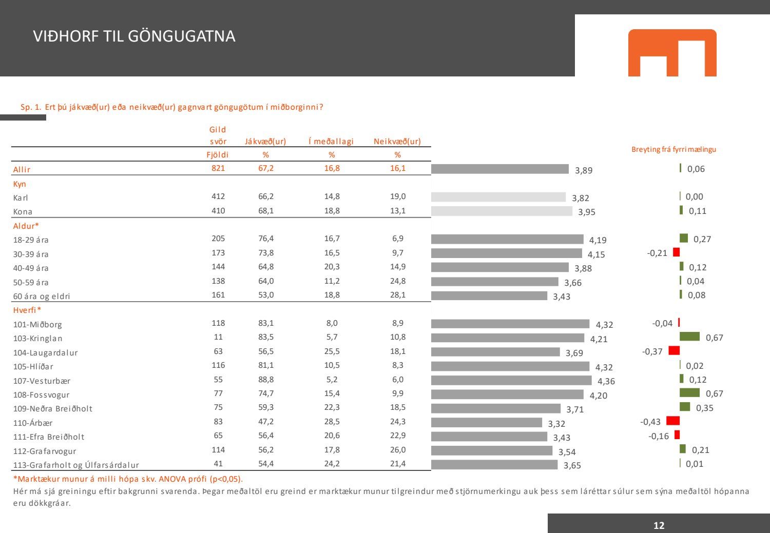 Viðhorfið sem birtist í könnuninni endurspeglar greinilega ekki viðhorf fólks sem er miður því maður vill gjarnan geta stuðst við kannanir að einhverju leyti. Kynningin gefur þá mynd að allir séu í raun húrrandi glaðir yfir ástandinu í bænum. Ef fulltrúi Flokks fólksins væri spurður hvað honum þætti almennt um göngugötur væri svarið að þær væru frábærar þar sem þær ættu við og þjónuðu sínum tilgangi. Ef horft er til göngugatna í miðbænum sem leiddu til lokunar umferðar hafa margir stigið fram og lýst óánægju sinni. Ekki síst hagaðilar sem hættu að fá til sín kúnna í sama mæli og áður. Fólk sem kom á svæðið er hætt að koma. Það vita það allir sem vilja hvernig komið er fyrir Laugavegi. Nú nýlega steig eigandi Máls og menningar fram og sagði að reksturinn hefði verið orðinn erfiður fyrir COVID. Sölutölurnar ljúga ekki og fylgja sölutölurnar lokunum gatna. Fólk sem ekki býr í nágrenninu kemur eðlilega minna þegar engar verslanir eru lengur á staðnum og aðgengi erfitt. Fulltrúi Flokks fólksins verður bara að vera heiðarlegur í þessu sambandi og segja að þessi könnun, niðurstöður hennar eru í ljósi alls þessa ekki trúverðugar eða í það minnsta gefur kynningin ranga mynd.