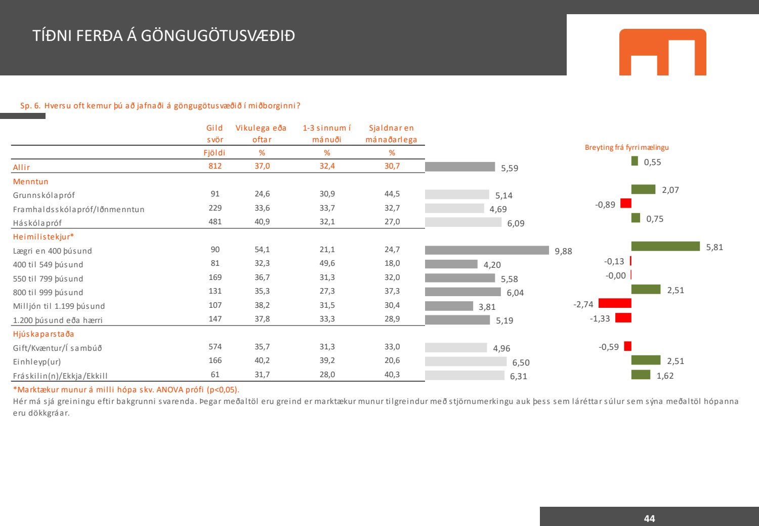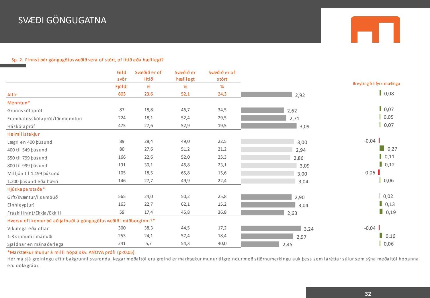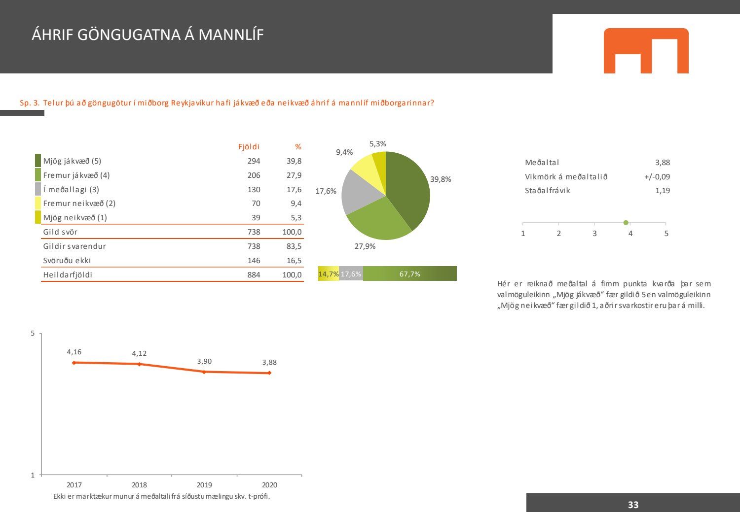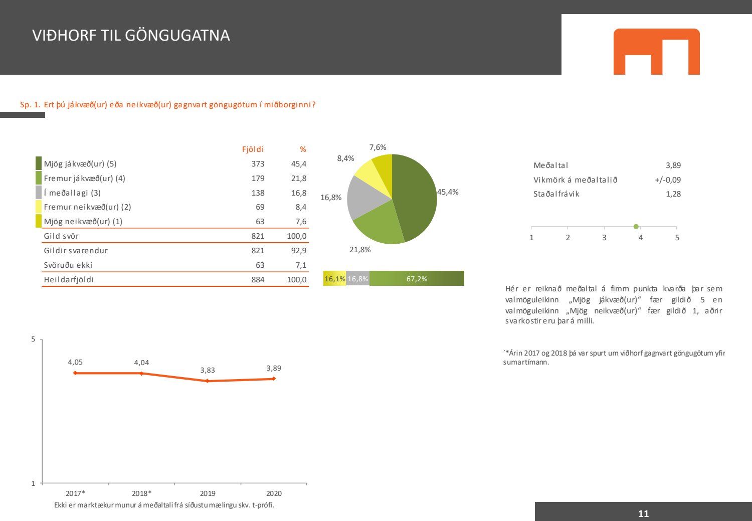 Viðhorfið sem birtist í könnuninni endurspeglar greinilega ekki viðhorf fólks sem er miður því maður vill gjarnan geta stuðst við kannanir að einhverju leyti. Kynningin gefur þá mynd að allir séu í raun húrrandi glaðir yfir ástandinu í bænum. Ef fulltrúi Flokks fólksins væri spurður hvað honum þætti almennt um göngugötur væri svarið að þær væru frábærar þar sem þær ættu við og þjónuðu sínum tilgangi. Ef horft er til göngugatna í miðbænum sem leiddu til lokunar umferðar hafa margir stigið fram og lýst óánægju sinni. Ekki síst hagaðilar sem hættu að fá til sín kúnna í sama mæli og áður. Fólk sem kom á svæðið er hætt að koma. Það vita það allir sem vilja hvernig komið er fyrir Laugavegi. Nú nýlega steig eigandi Máls og menningar fram og sagði að reksturinn hefði verið orðinn erfiður fyrir COVID. Sölutölurnar ljúga ekki og fylgja sölutölurnar lokunum gatna. Fólk sem ekki býr í nágrenninu kemur eðlilega minna þegar engar verslanir eru lengur á staðnum og aðgengi erfitt. Fulltrúi Flokks fólksins verður bara að vera heiðarlegur í þessu sambandi og segja að þessi könnun, niðurstöður hennar eru í ljósi alls þessa ekki trúverðugar eða í það minnsta gefur kynningin ranga mynd.