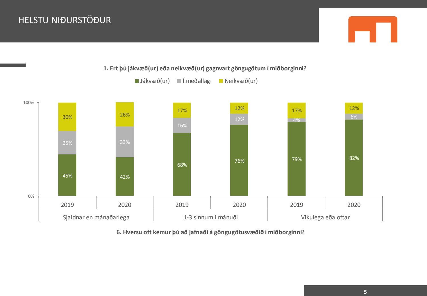 Meirihluti borgarbúa eru ánægðir með göngugötur. Nú eru 67% jákvæð í garð göngugatna en einungis 16% neikvæð. Jákvæðir eru mun fleiri en neikvæðir í öllum hverfum, og í öllum aldurs-, menntunar- og tekjuhópum. Ferðum á göngugötusvæði hefur sömuleiðis fjölgað stöðugt á árunum 2017-2020. Reykvíkingar vilja göngugötur - og meirihluti borgarstjórnar vill gera þær að veruleika.