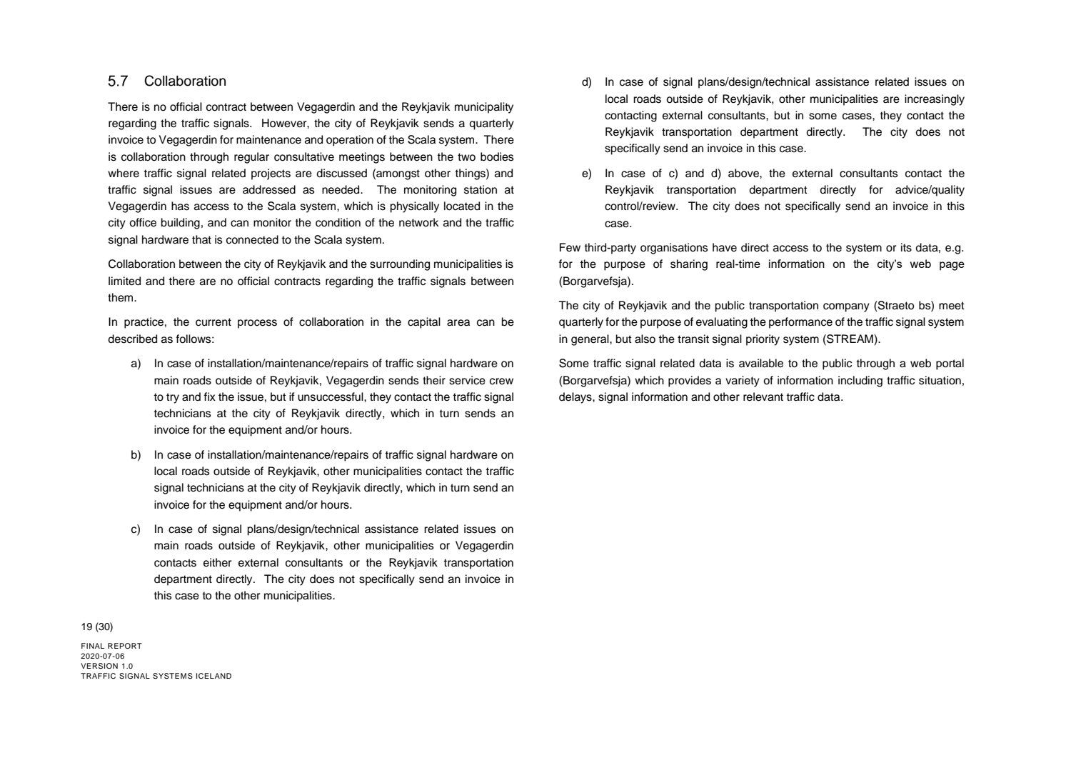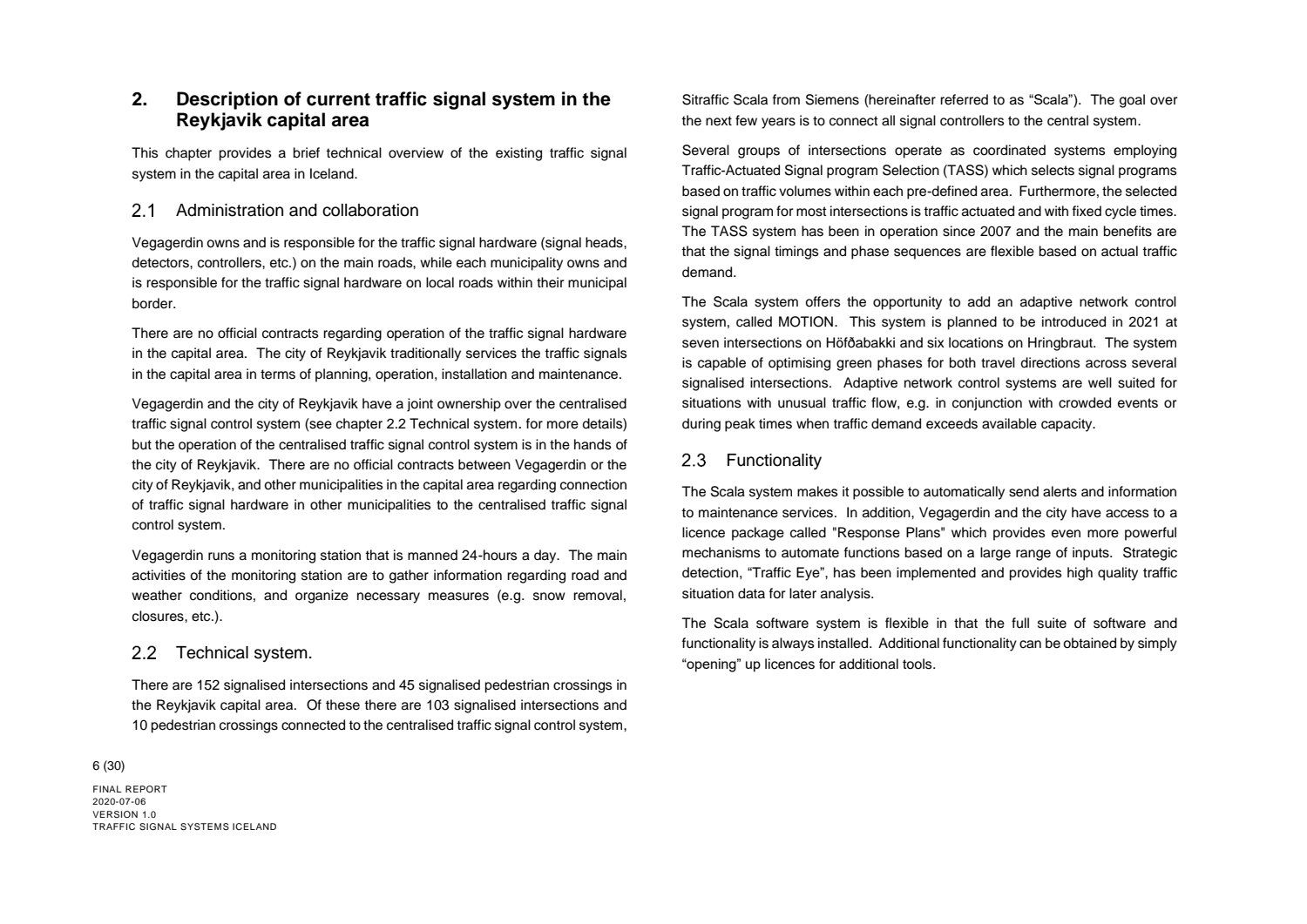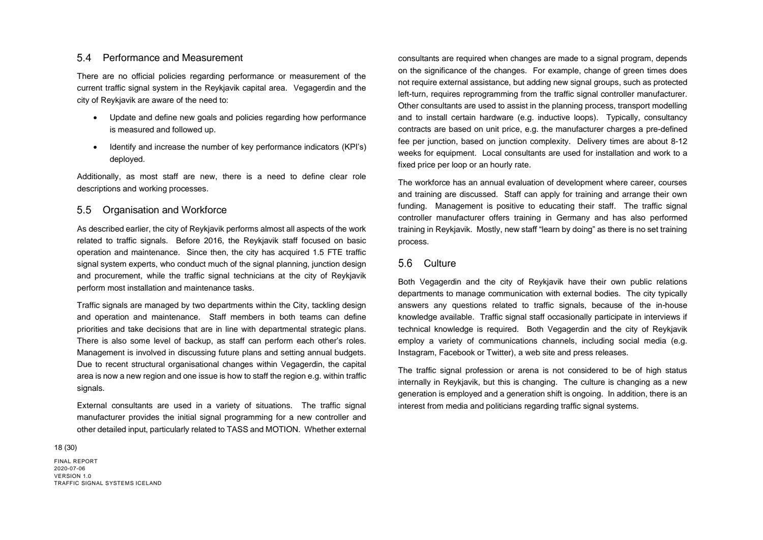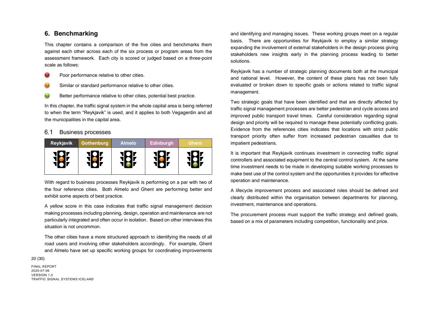 Niðurstaða greiningar Sweco er að fjárfesta þurfi meira í fólki og ferlum, frekar en búnaði. Búnaðurinn stendur framarlega samanborið við aðrar borgir en koma þyrfti á mælanlegum mælikvörðum t.d. varðandi öryggi og biðtíma gangandi og hjólandi, nýta betur sóknarfæri núverandi búnaðar og auka samráð milli ólíkra aðila í ferlinu. Með stofnun formlegs samráðsvettvangs fagaðila er lagður grundvöllur að innleiðingu þessara ráðlegginga úr skýrslu Sweco.