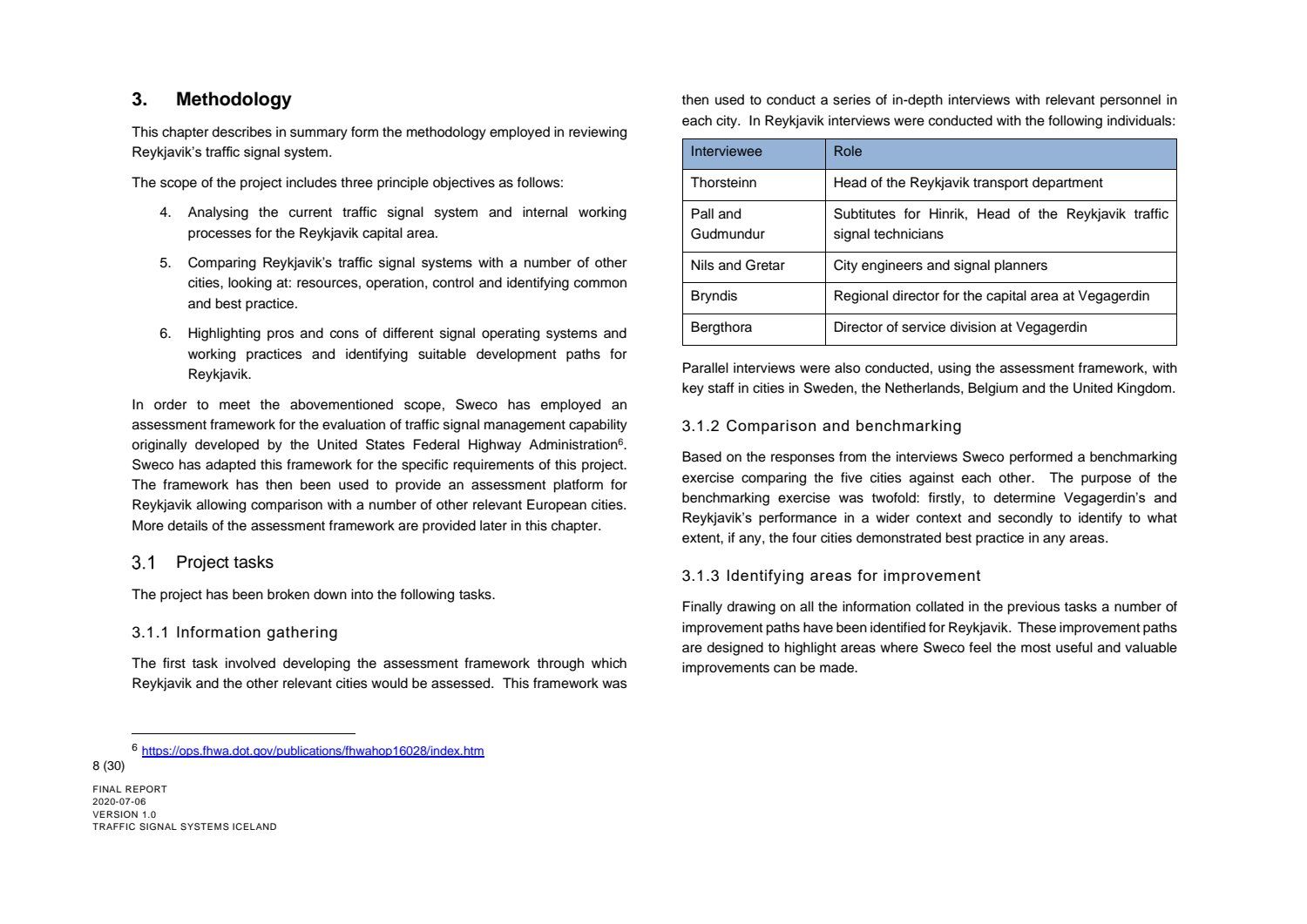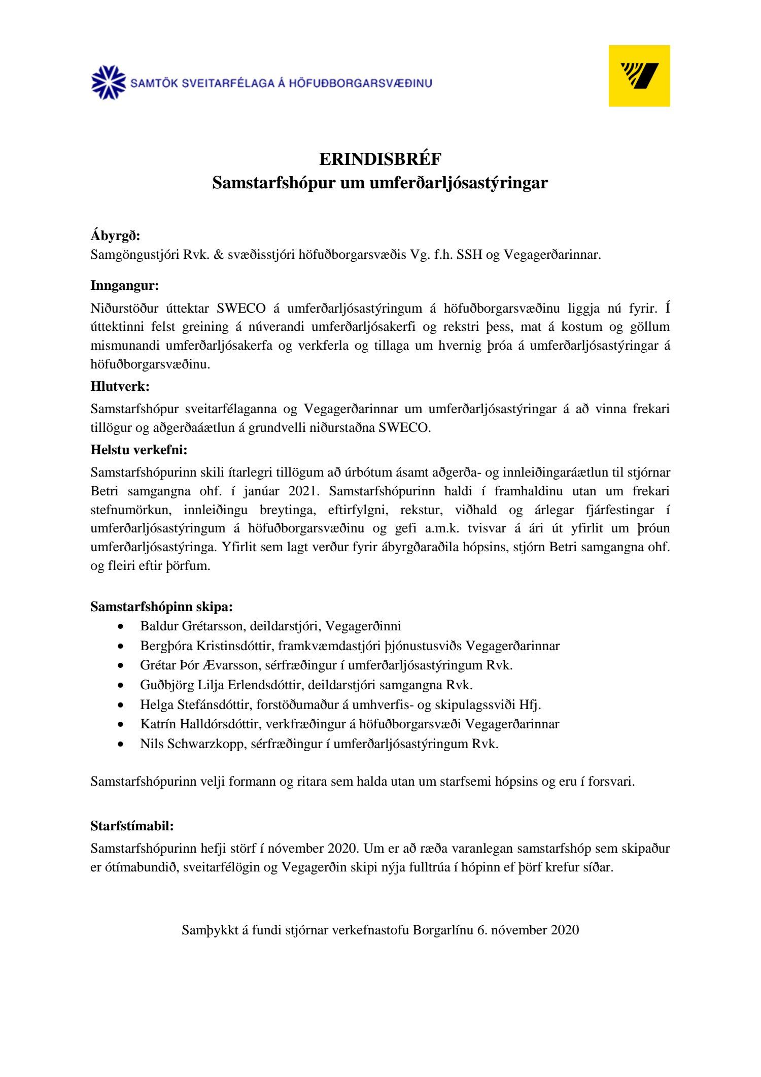 Lögð fram til kynningar skýrsla með niðurstöðum úttektar SWECO á umferðarljósastýringum á höfuðborgarsvæðinu, dags. 7. júní 2020, ásamt kynningarglærum og erindisbréfi samstarfshóps SSH og Vegagerðarinnar.