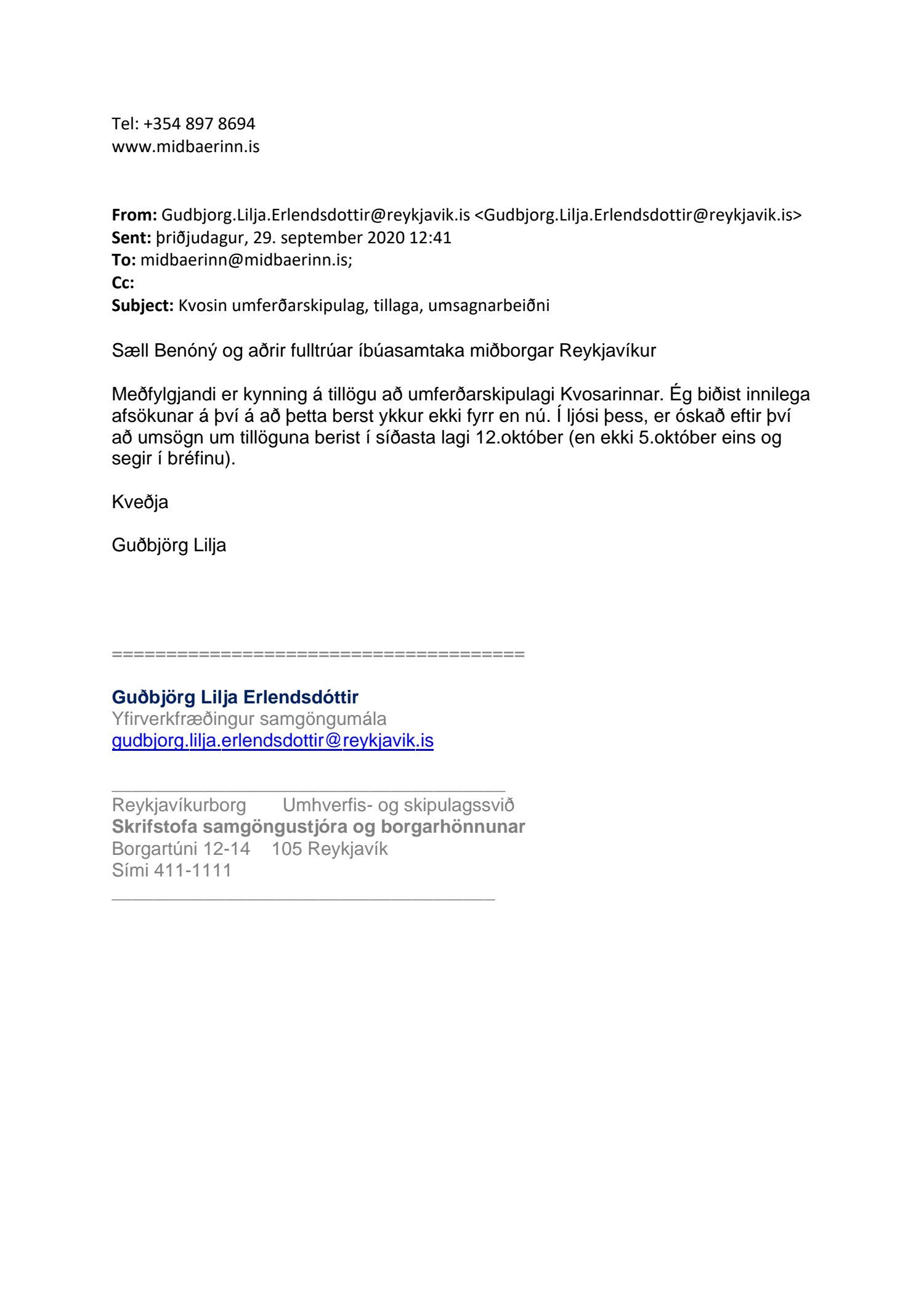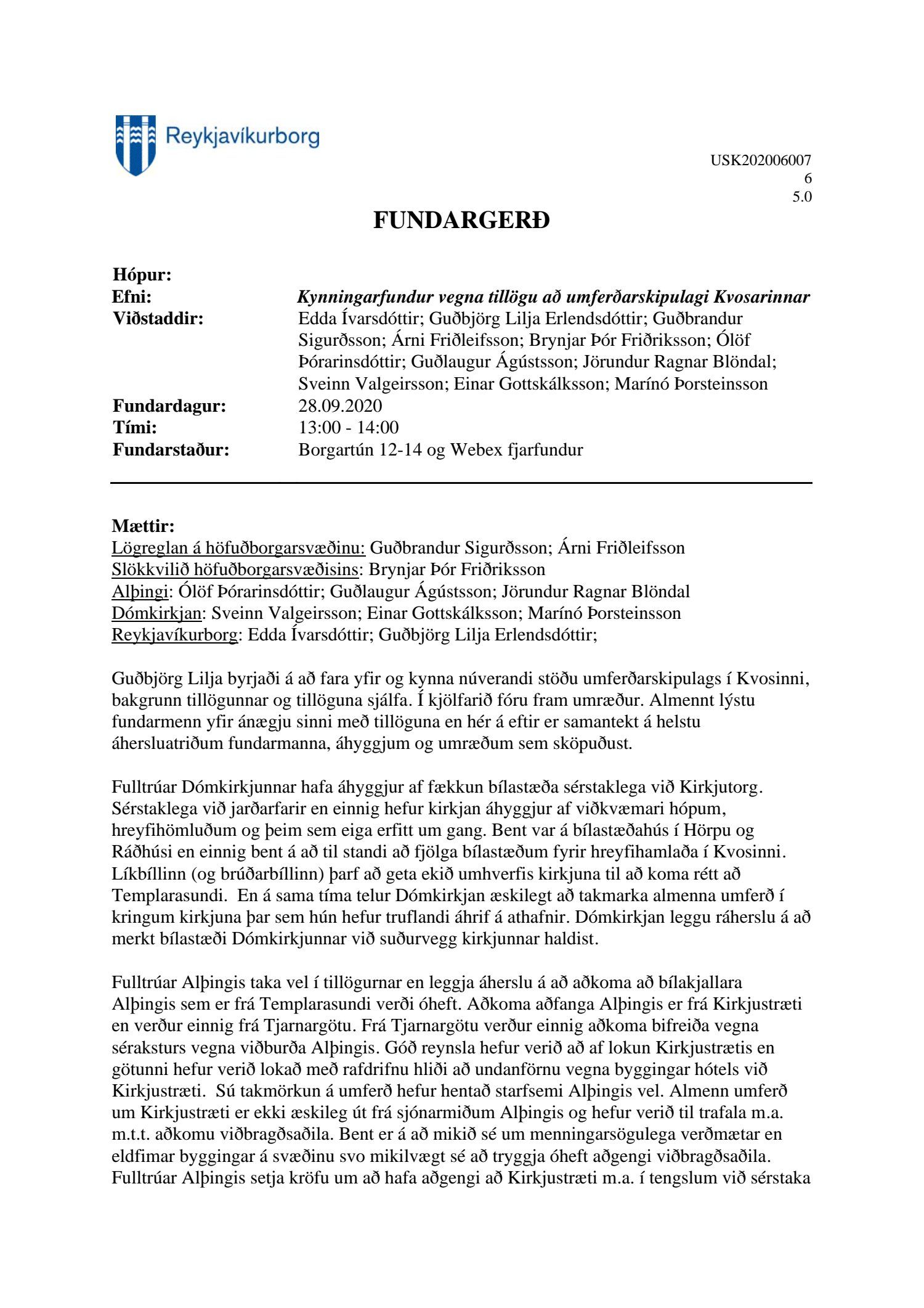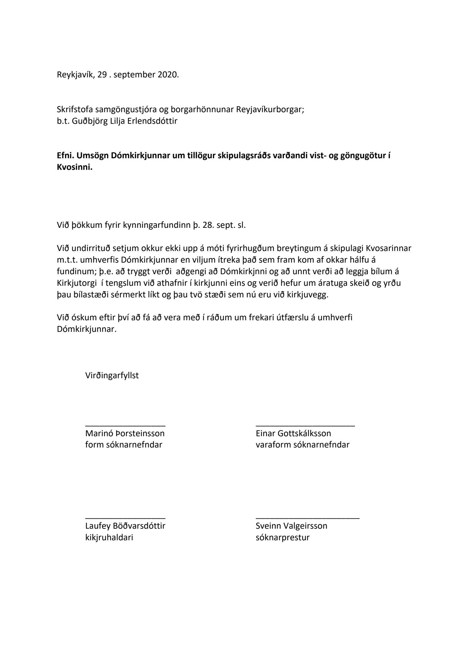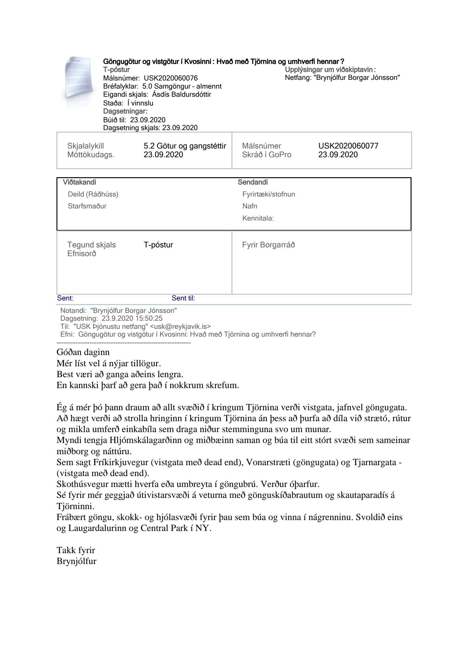 Hér er verið að stækka göngugötusvæðið í Kvosinni í samræmi við ákvörðun borgarstjórnar frá september 2018. Nálægar götur eru gerðar að vistgötum. Umhverfið verðu mannvænna og við fögnum því. Jafnframt telur meirihluti skipulags- og samgönguráðs að rétt sé að fara fram á það við löggjafann að umferðarlög verði skýrð á þann hátt að sveitarfélög fái aukin sveigjanleika varðandi akstur íbúa og að heimildir P-korta-hafa geti tekið mið af svæðisbundnum aðstæðum hverju sinni.