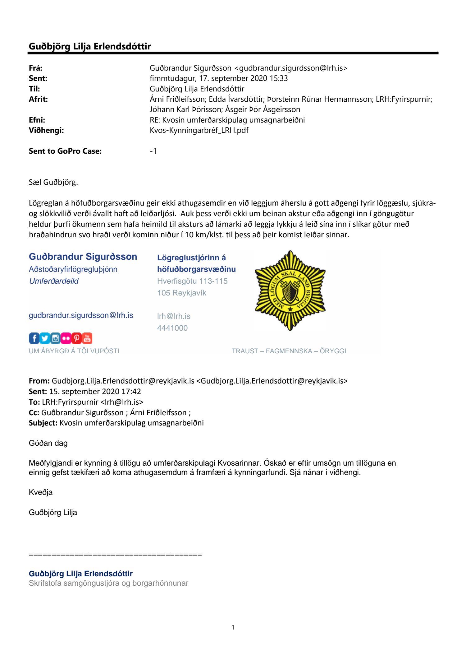 Guðbjörg Lilja Erlendsdóttir yfirverkfræðingur og Edda Ívarsdóttir deildarstjóri taka sæti á fundinum undir þessum lið með fjarfundarbúnaði.