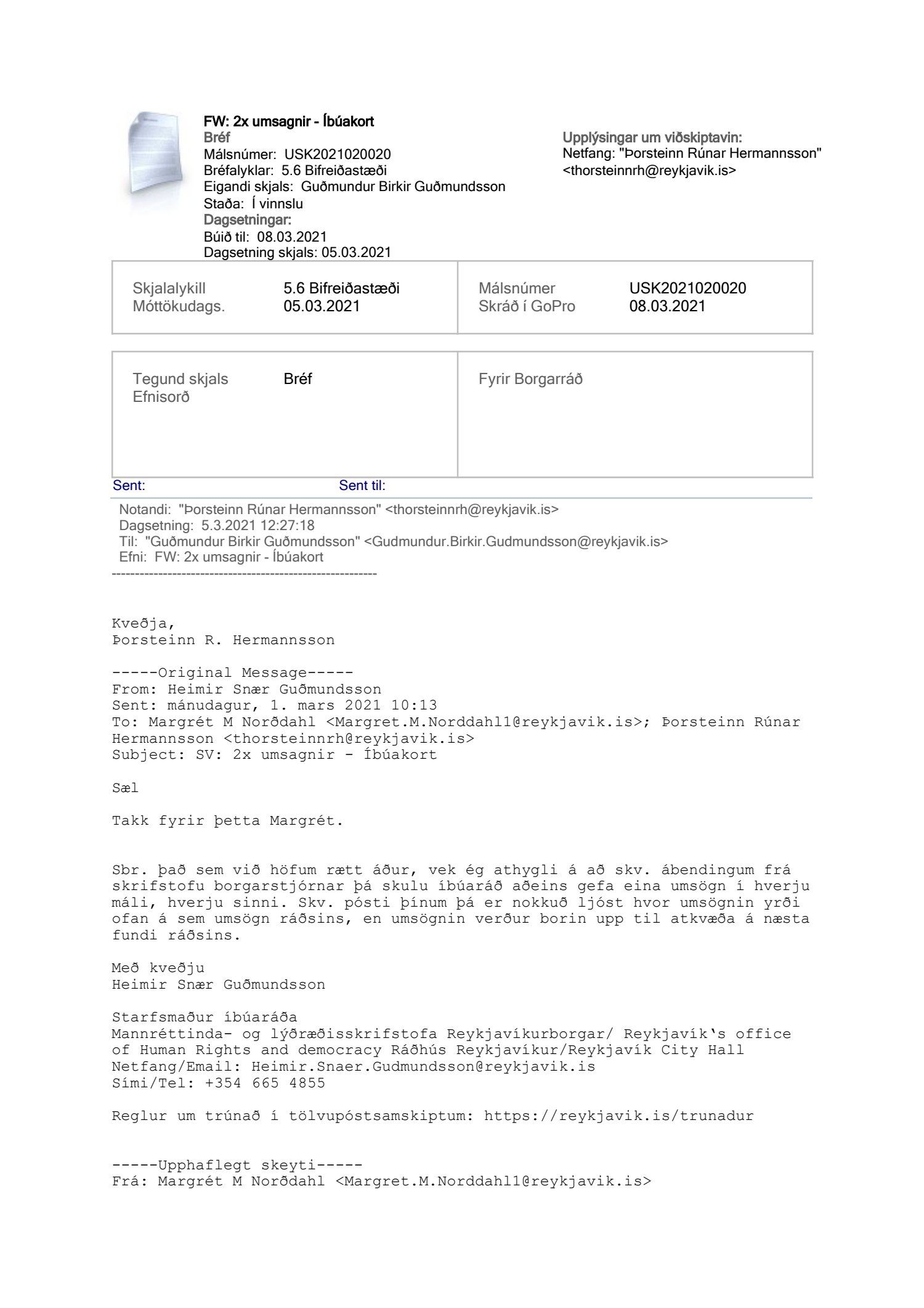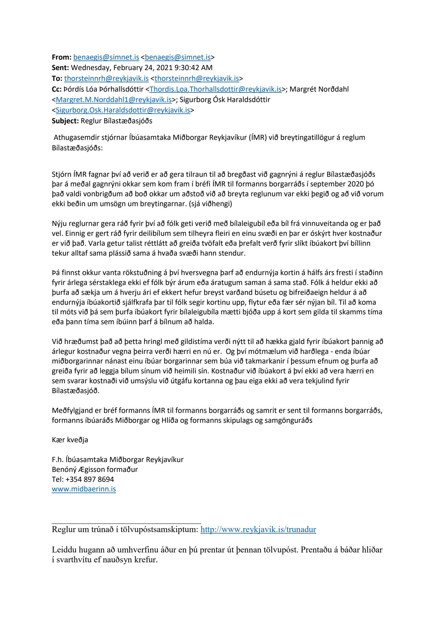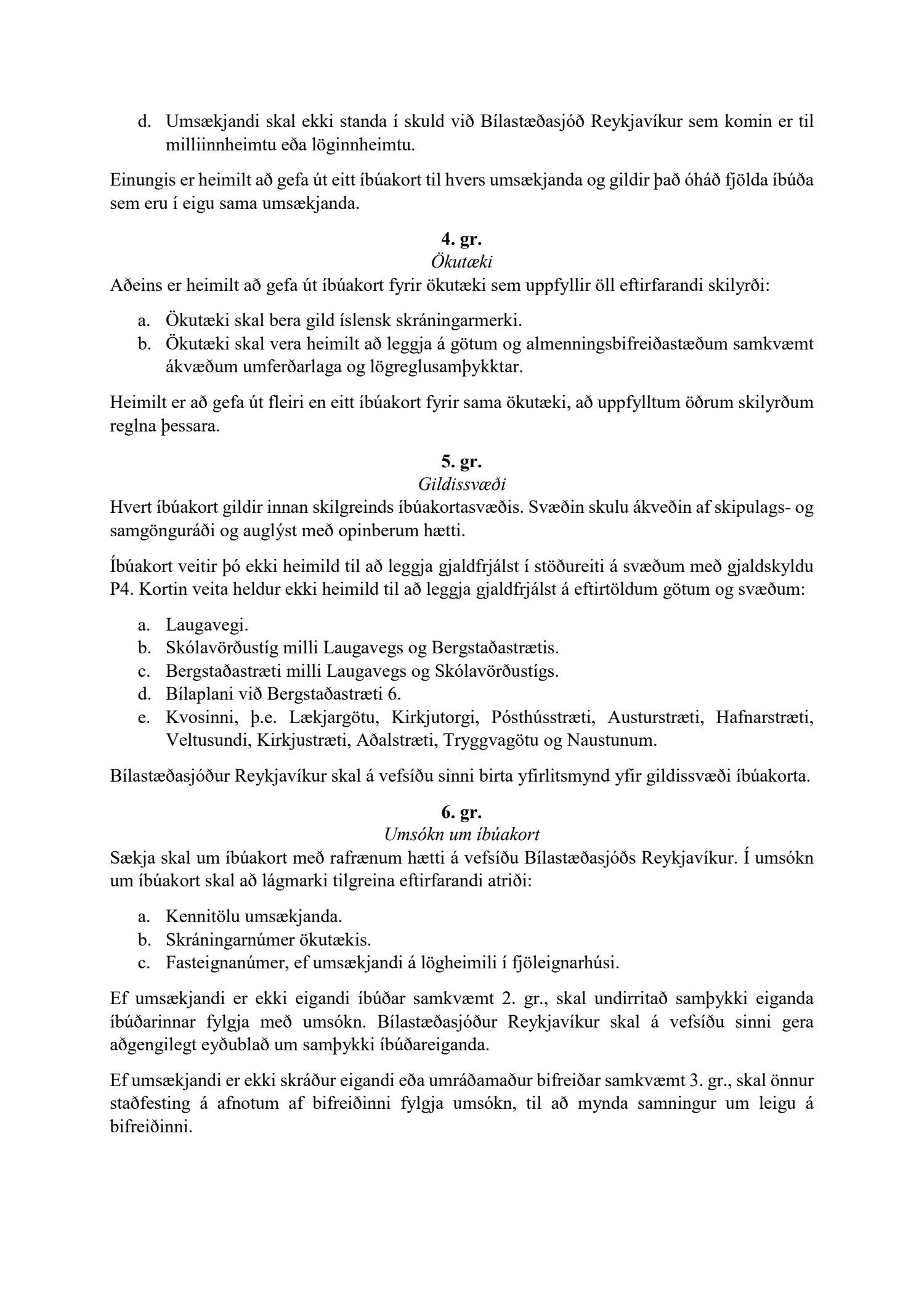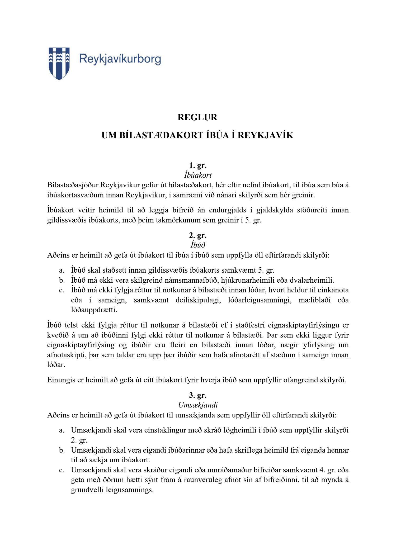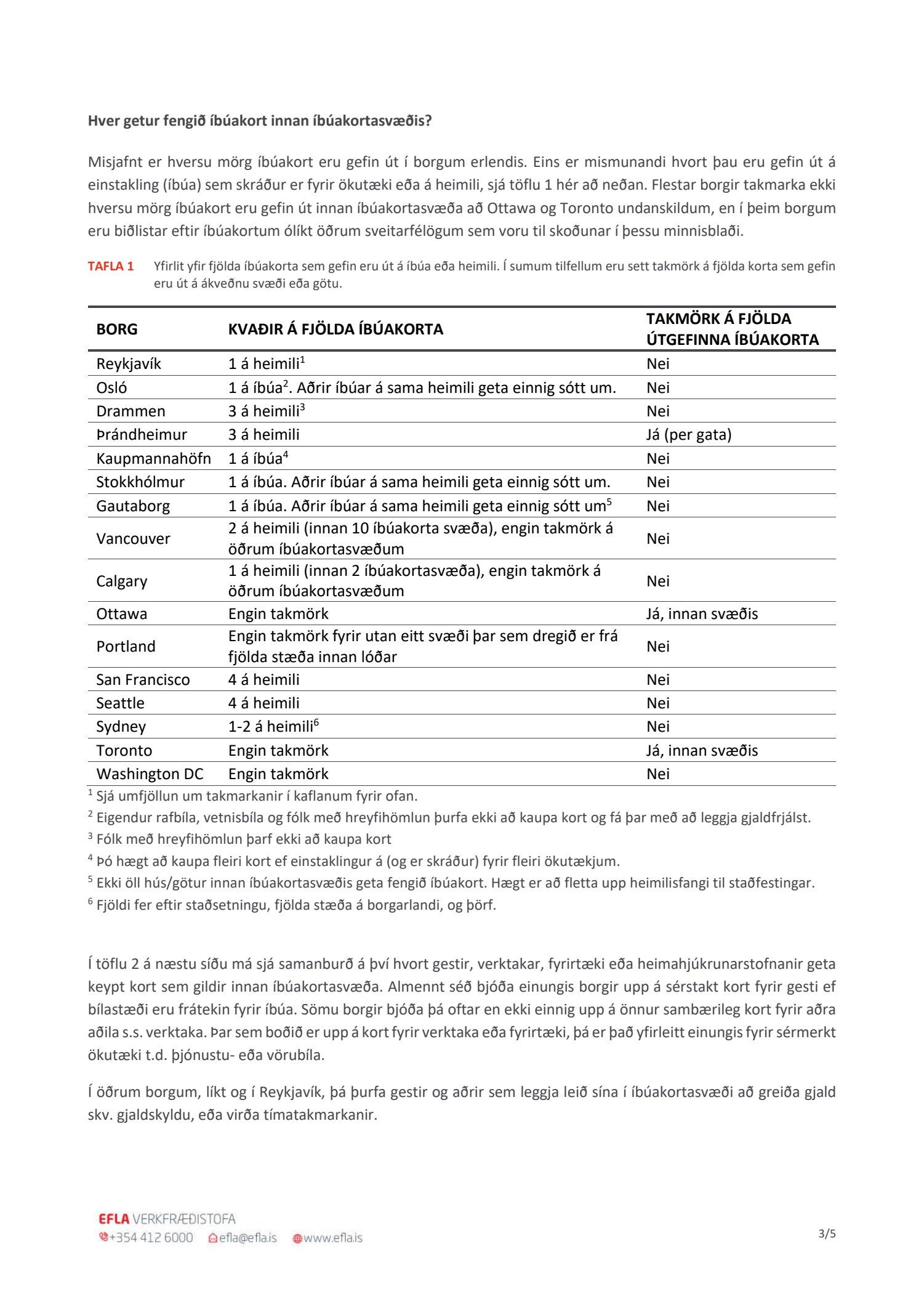 Lögð fram tillaga skrifstofu samgöngustjóra og borgarhönnunar, dags. 5. mars 2021, um uppfærðar reglur um bílastæðakort íbúa í Reykjavík. Einnig eru lögð fram drög að endurskoðuðum reglum um bílastæðakort íbúa í Reykjavík og minnisblað Eflu, samantekt um útfærslu íbúakorta erlendis, dags. 6. mars 2019.